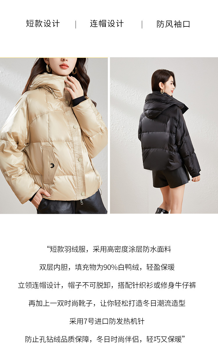 【高货kbnq】全新升级【铂金会员717/天猫969/差价252】(53853)洛诗琳2024冬季时尚连帽宽松洋气小个子短款保暖羽绒服