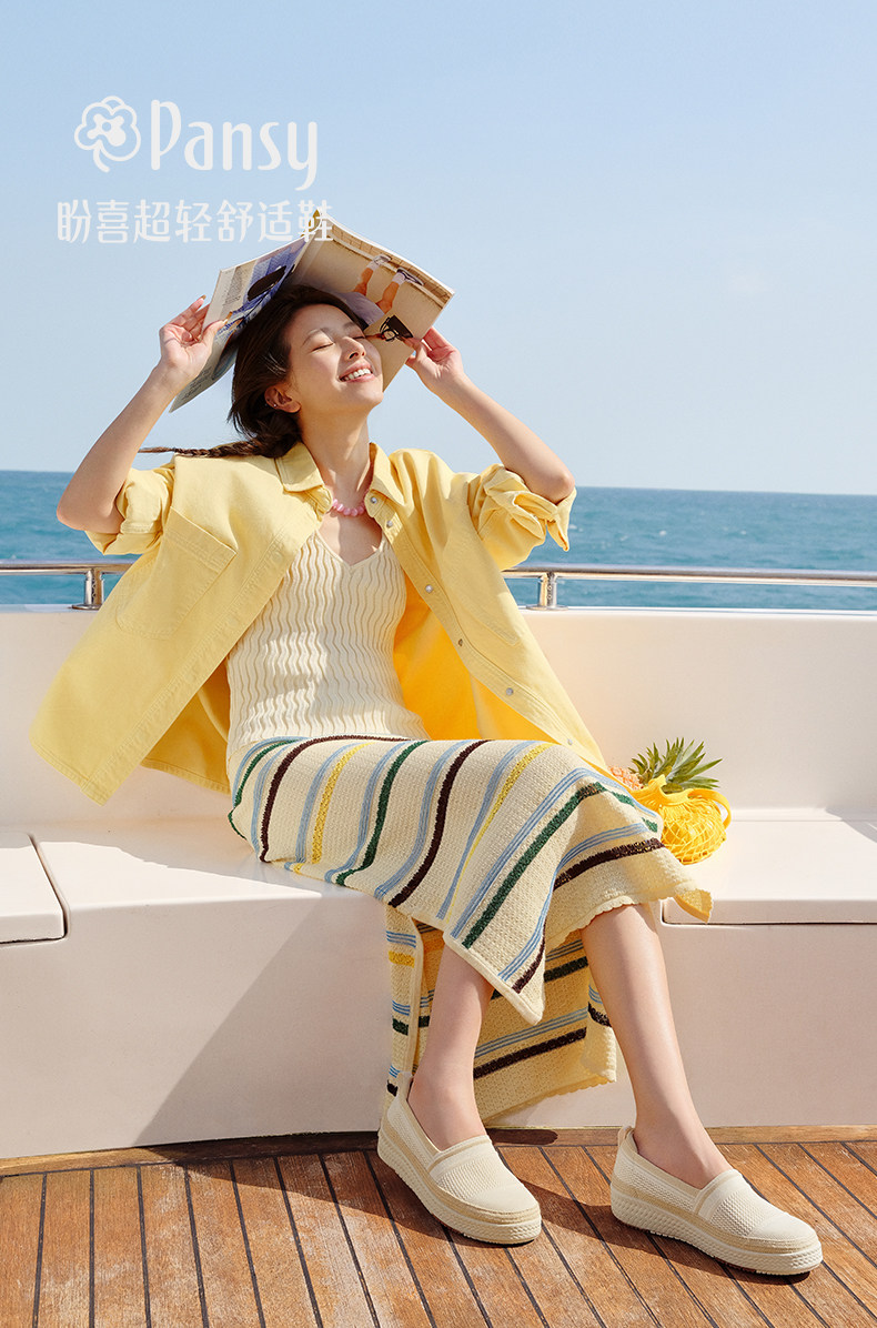 Pansy盼喜大网眼透气飞织渔夫鞋女一脚蹬休闲鞋2026年春季新款 HD4360