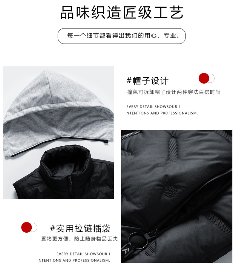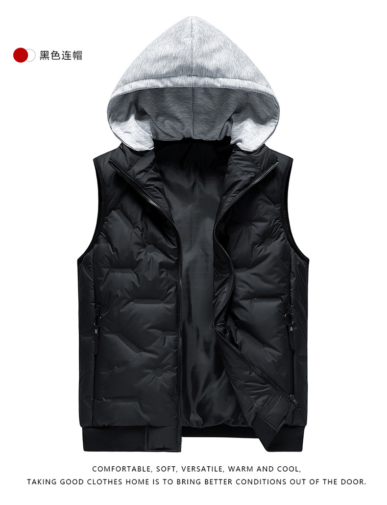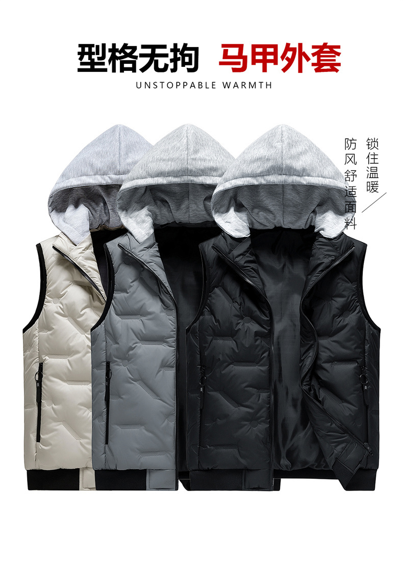 【新款DHD】大依优型大码男装连帽棉马甲简约休闲宽松外套男坎肩背心上衣男士