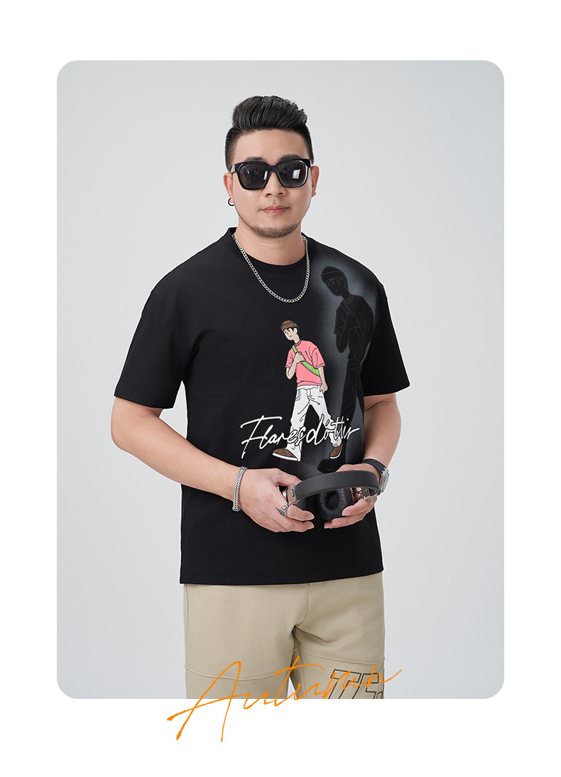 【DMH】大依优型大码男装圆领短袖T恤休闲宽松加肥加大潮流胖子上衣