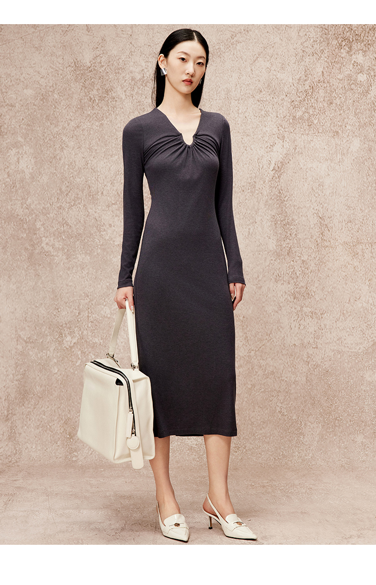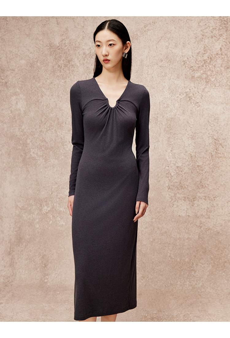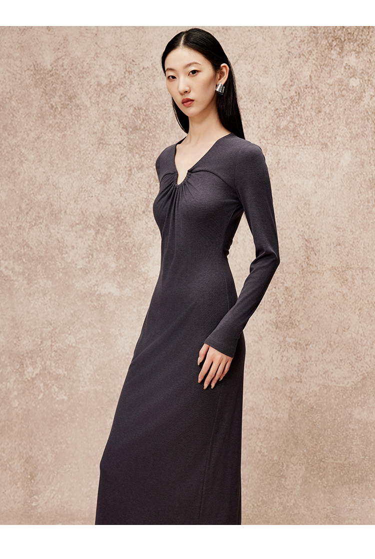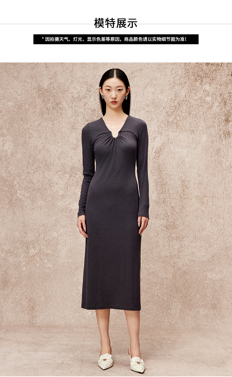 VIMAGE纬漫纪气质女神风弹力垂坠显瘦长款修身连衣裙秋季新款V2207819