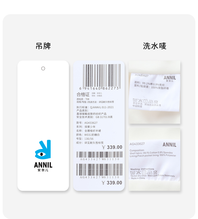 女童灯芯绒工装半裙裙子安奈儿童装实体店同款AG433627