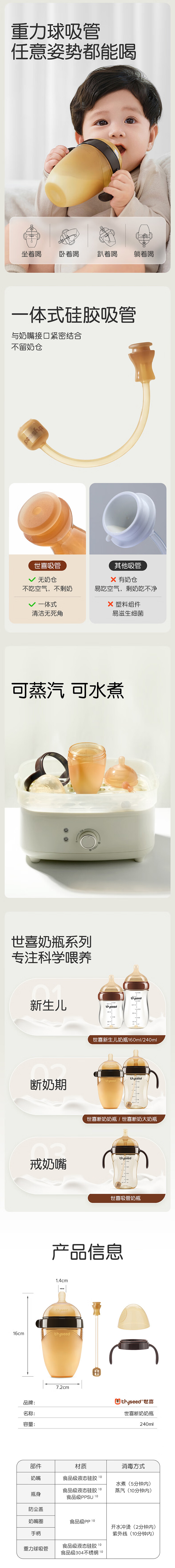 thyseed世喜断奶奶瓶(7-10个月)240ml(带手柄)