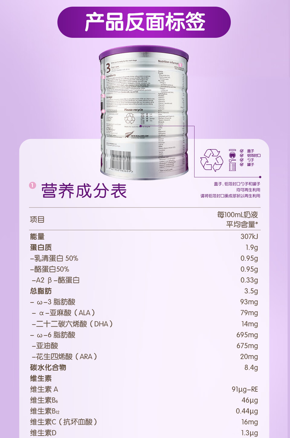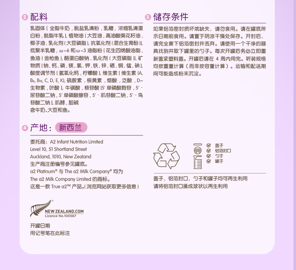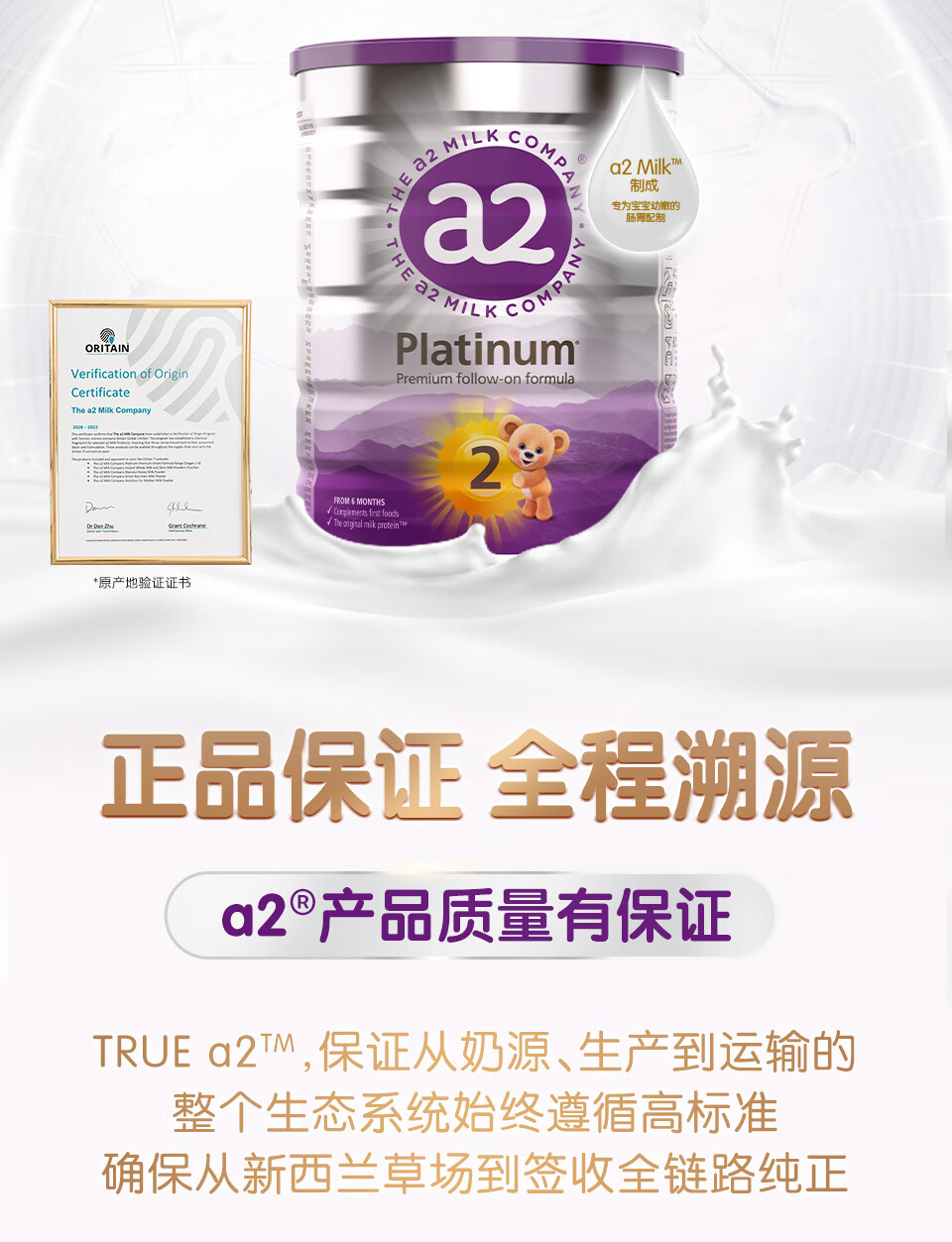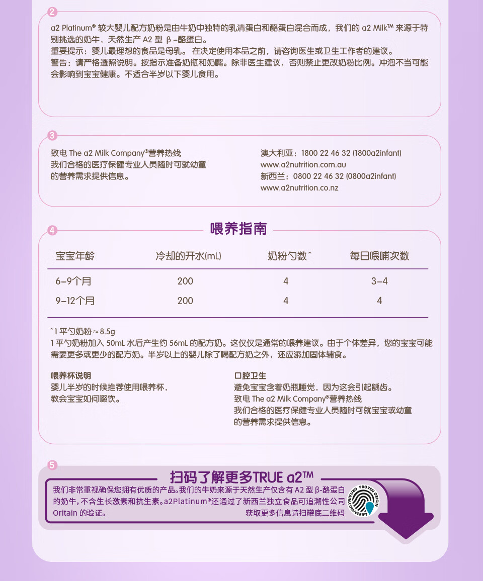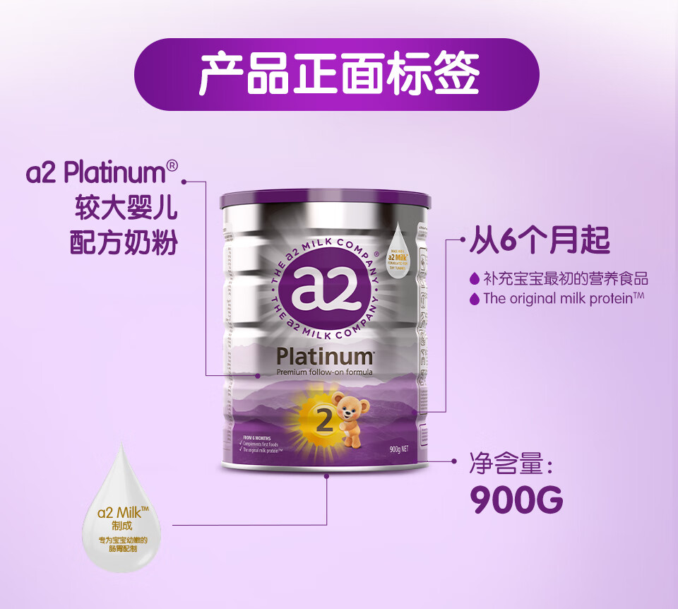 澳洲 A2白金婴儿配方奶粉2段 900g 跨境购