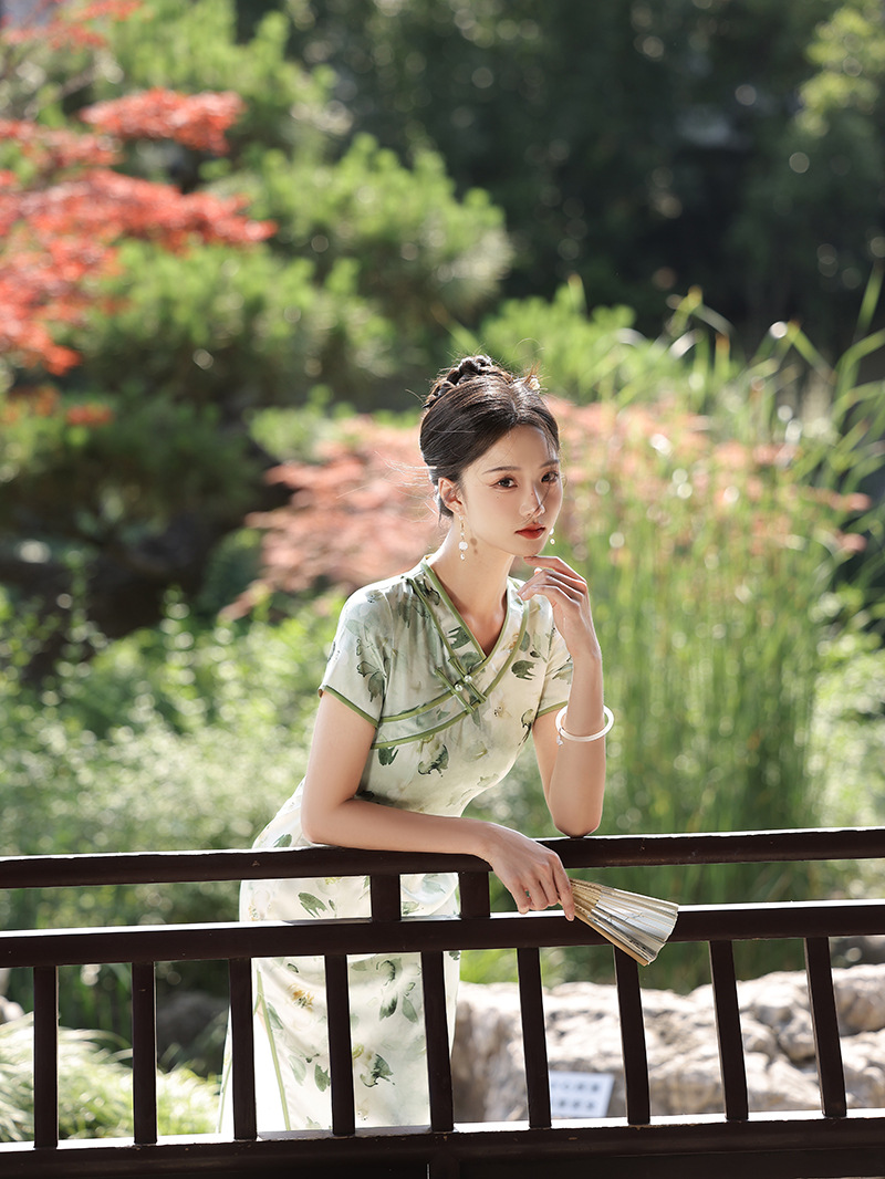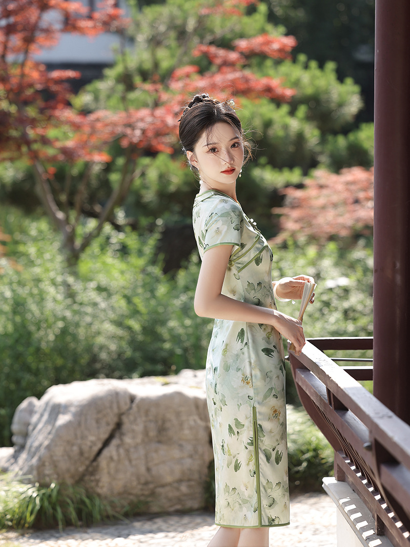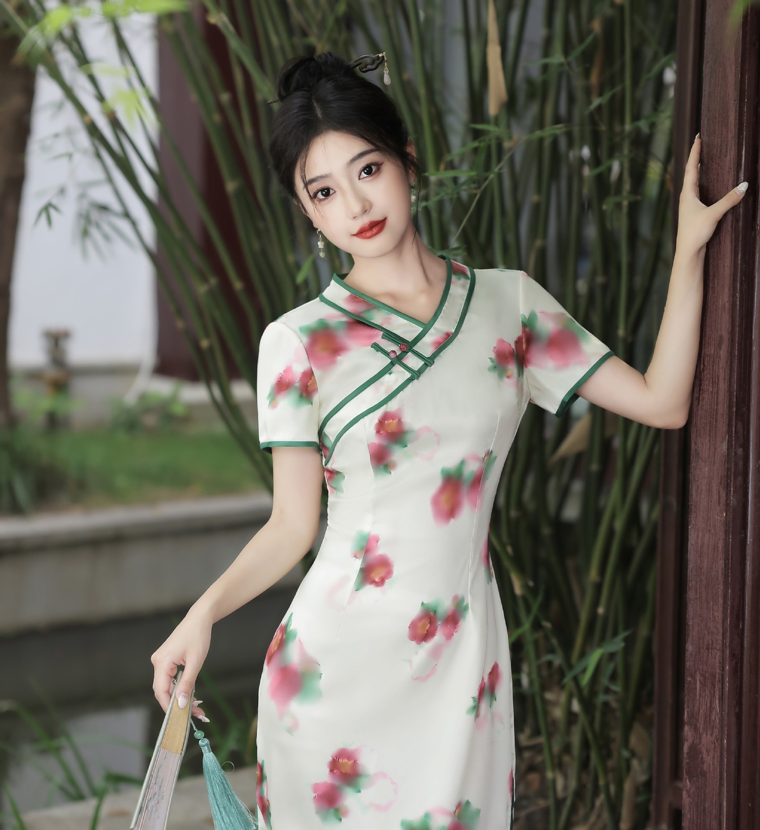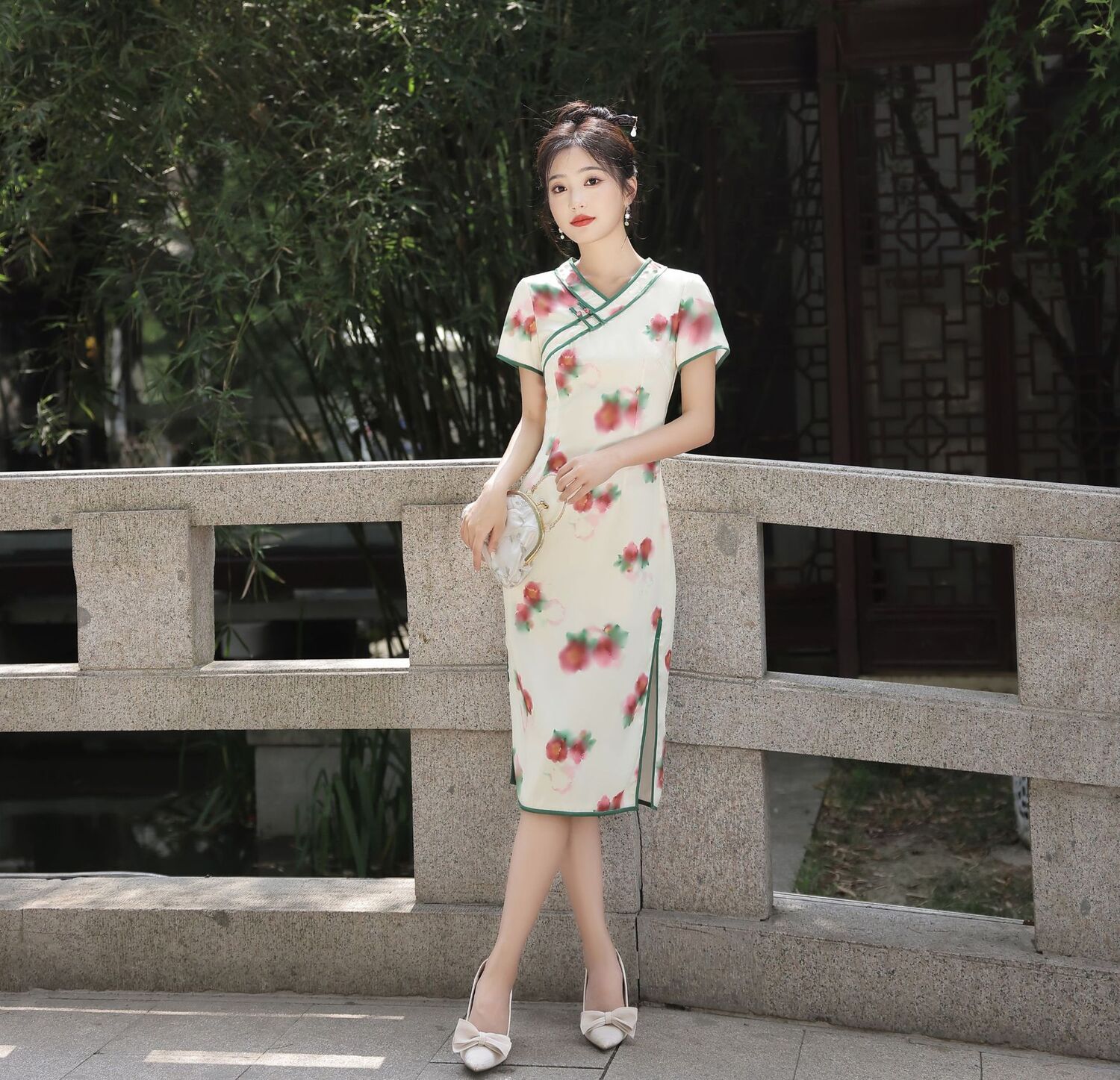 夏新款复古低领中长款轻薄透气改良旗袍XL23223