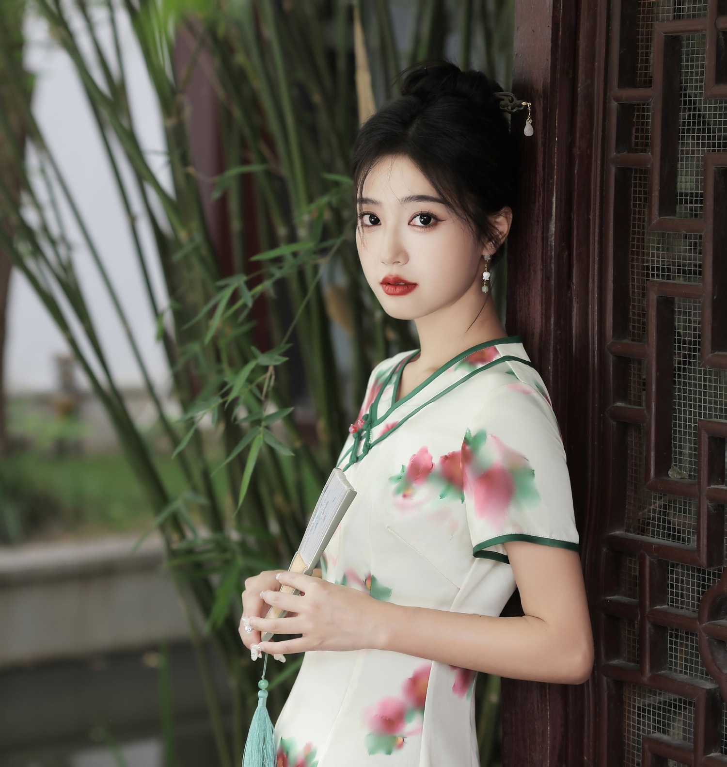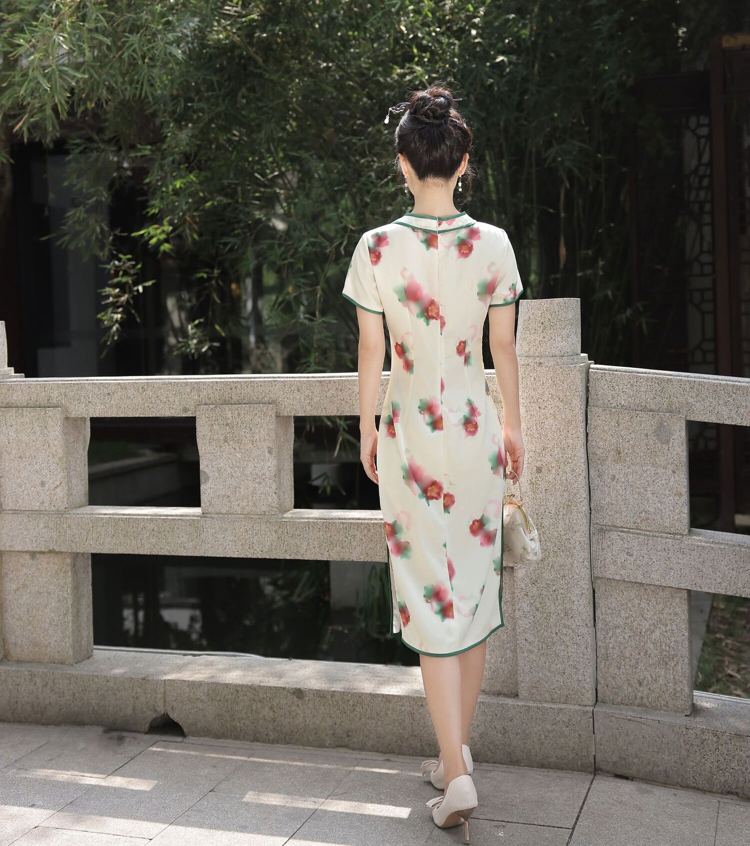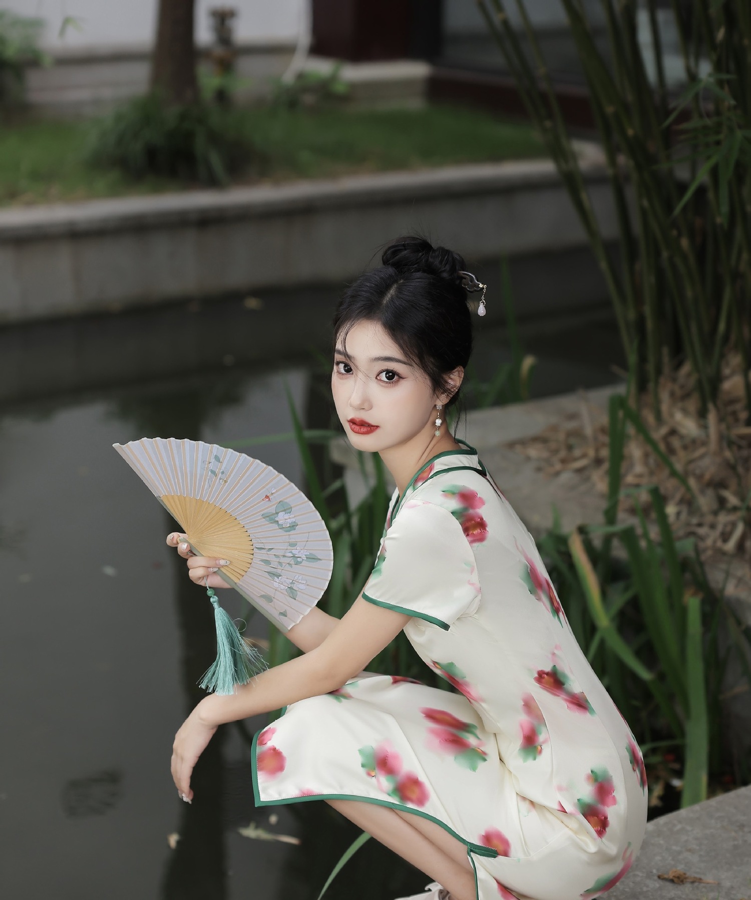 夏新款复古低领中长款轻薄透气改良旗袍XL23223