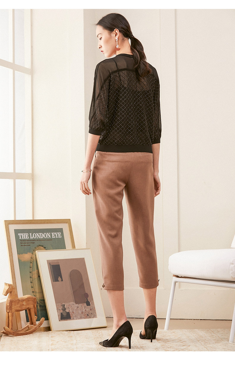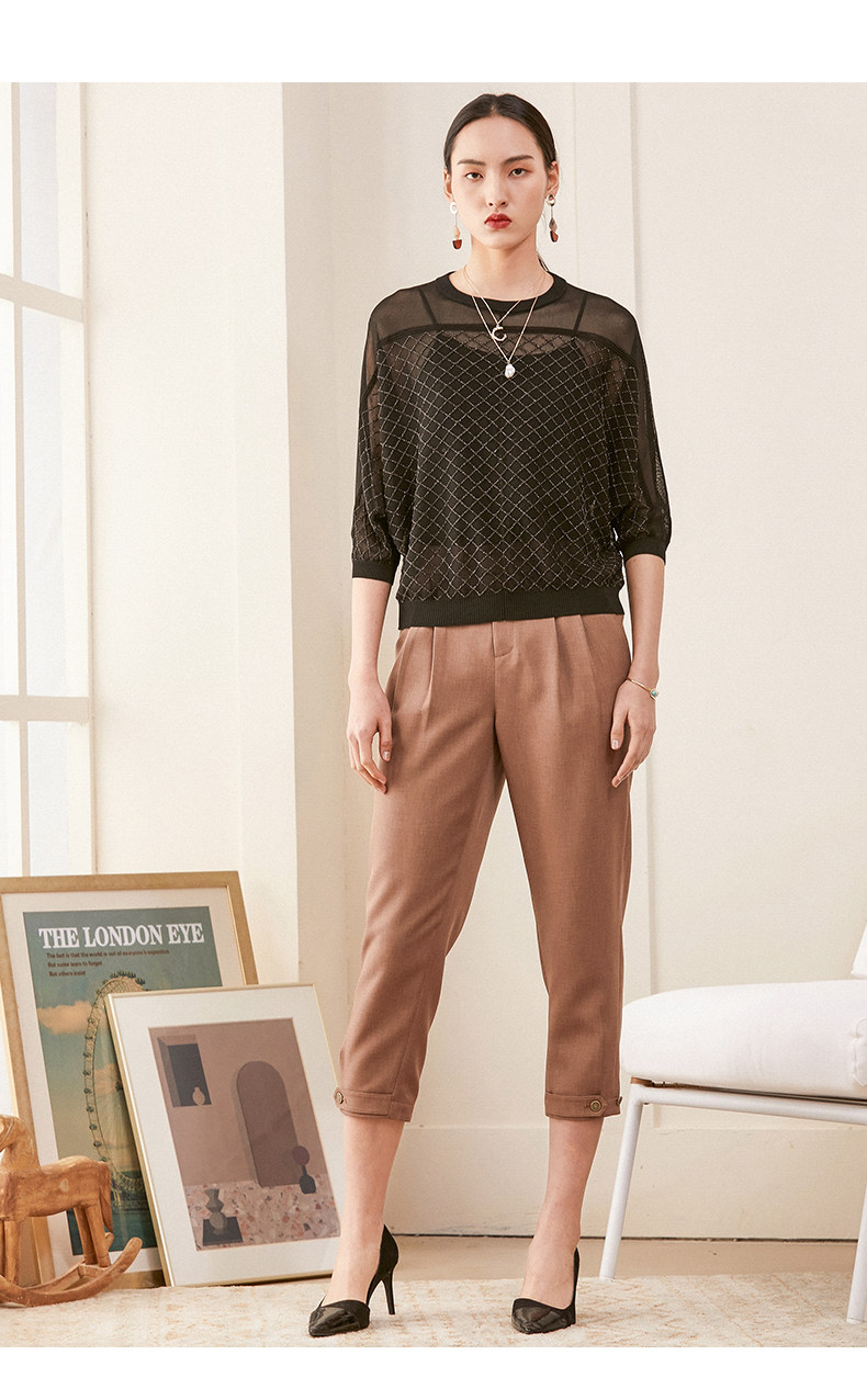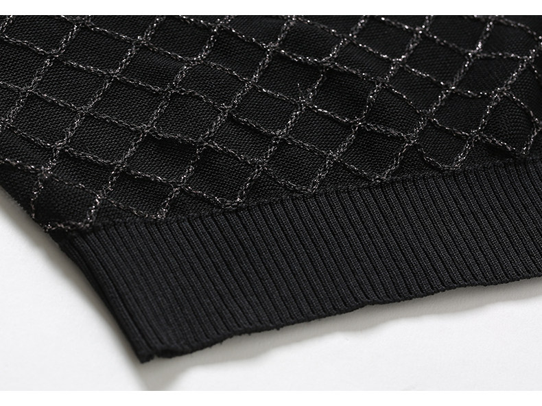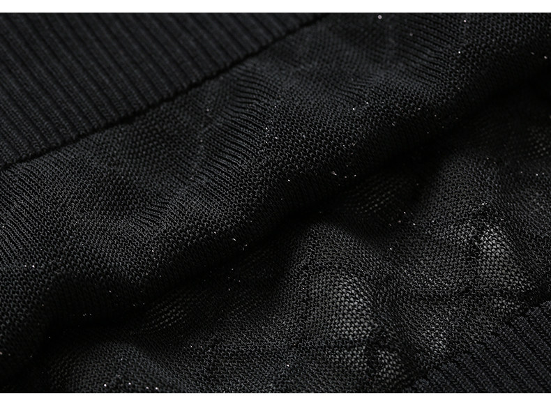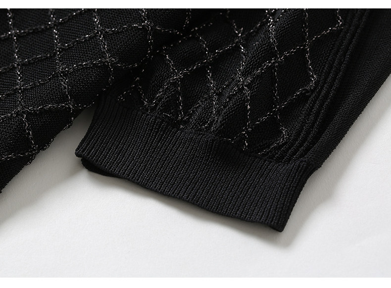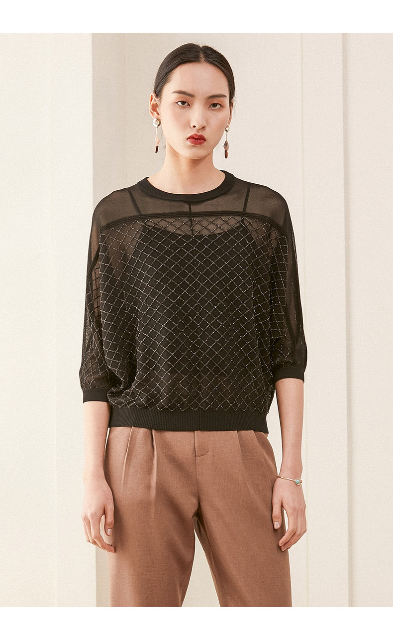 乔万尼夏季长袖薄款套头上衣宽松休闲黑色针织衫ES1M011