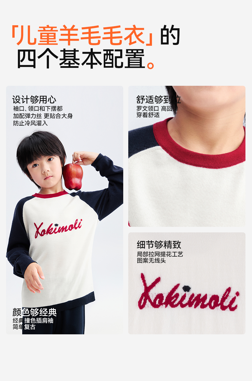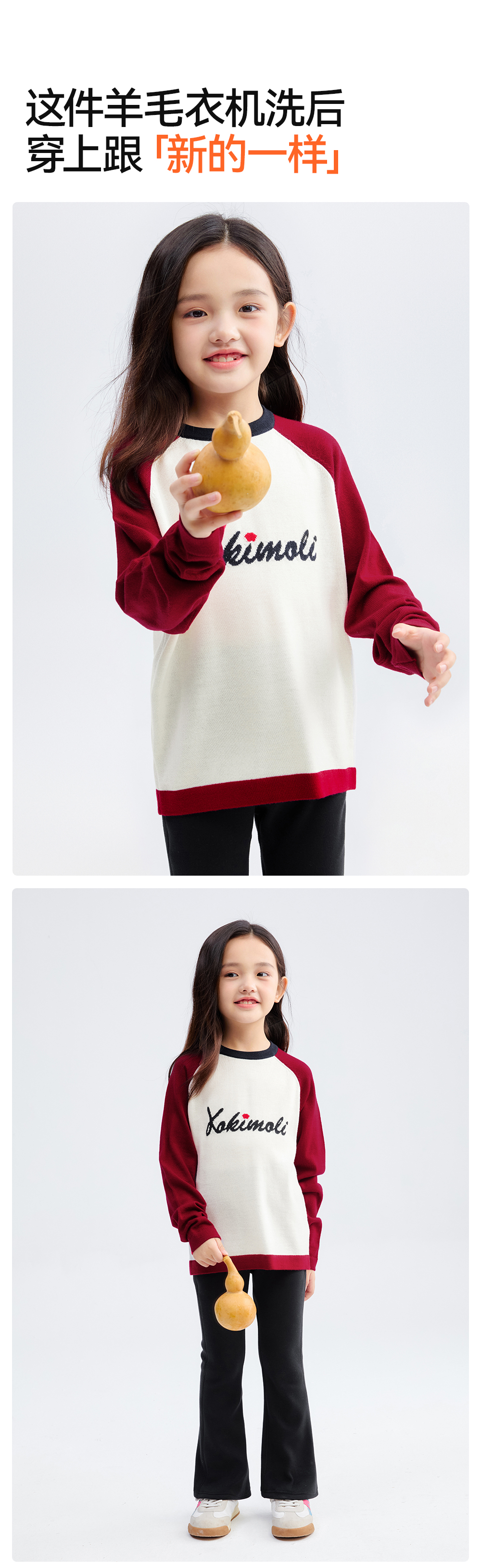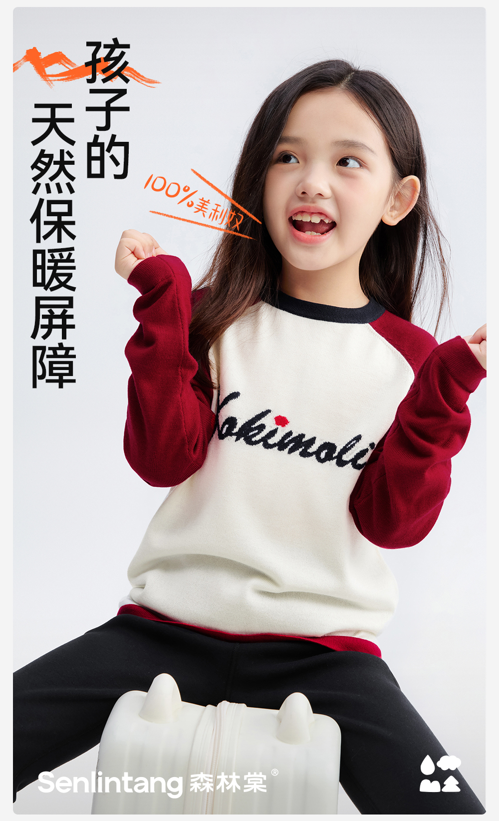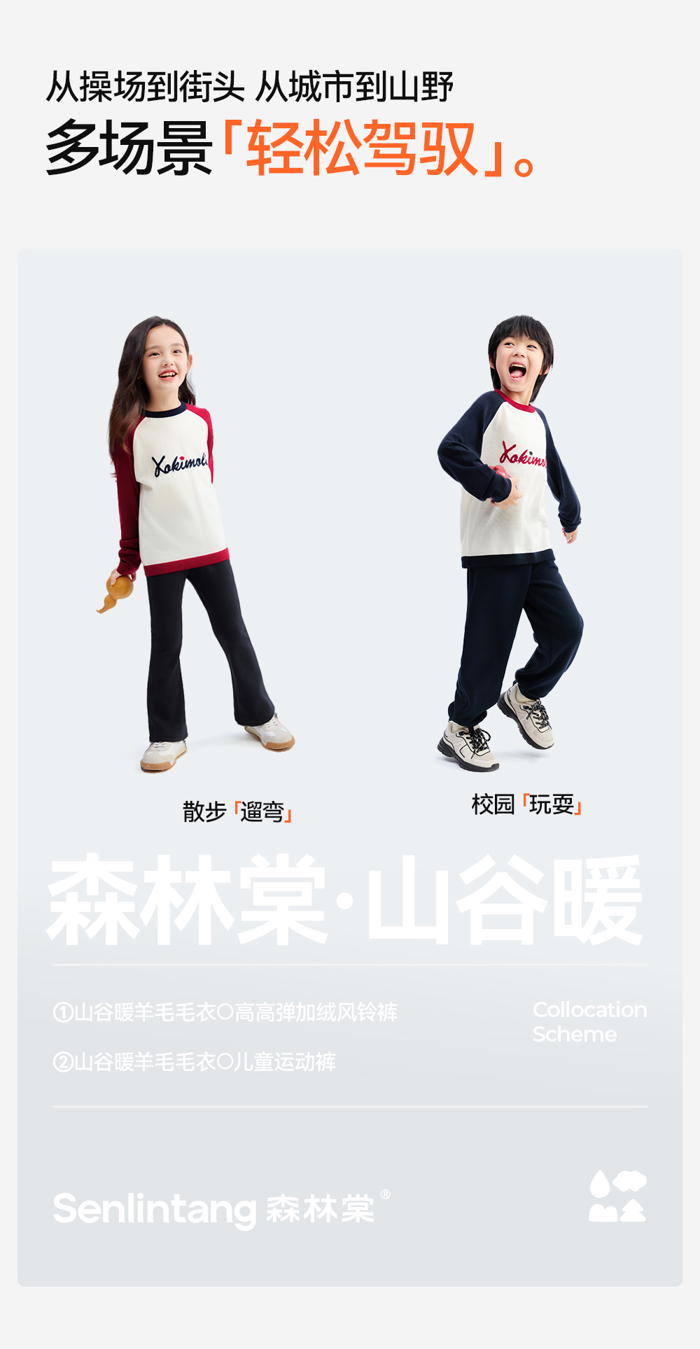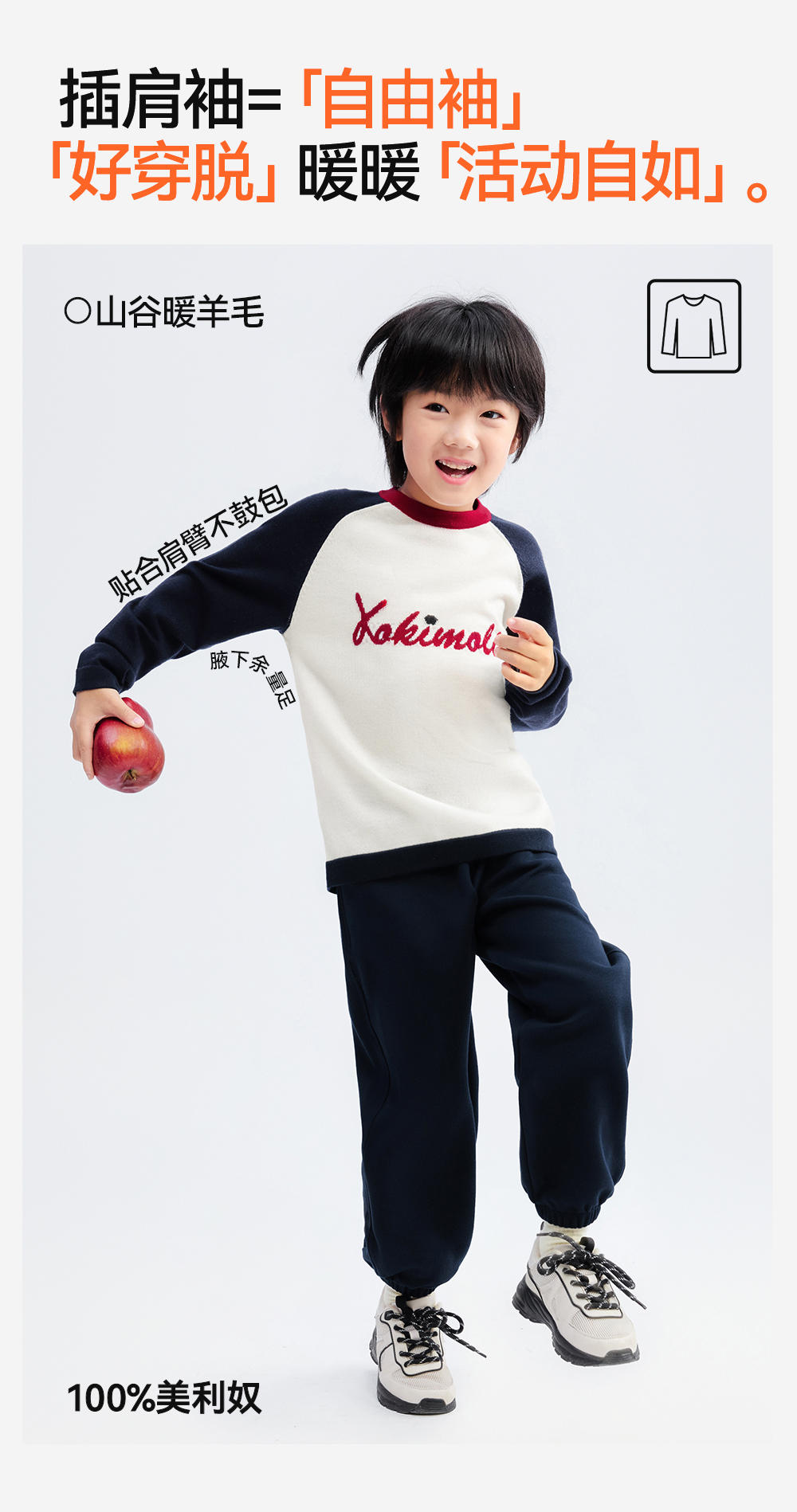 【插肩袖羊毛毛衣】森林棠25秋冬新款美利奴复古经典撞色针织儿童毛衣60553109