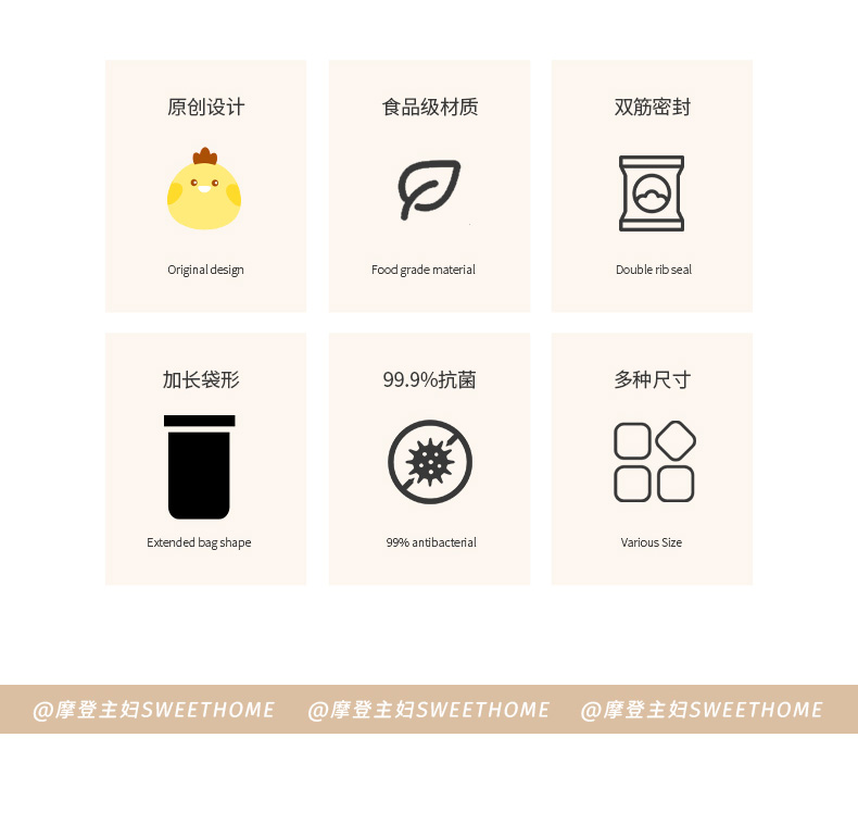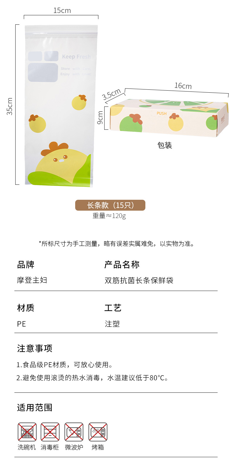 摩登主妇长条食品保鲜袋密封袋食品级家用带封口早餐袋塑封分装袋