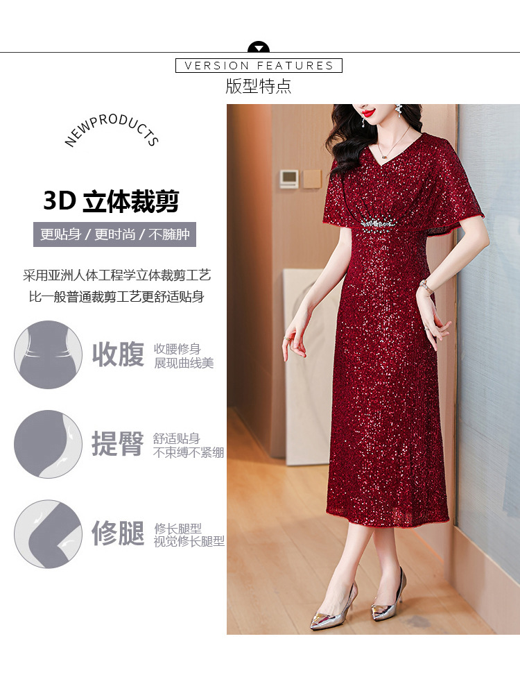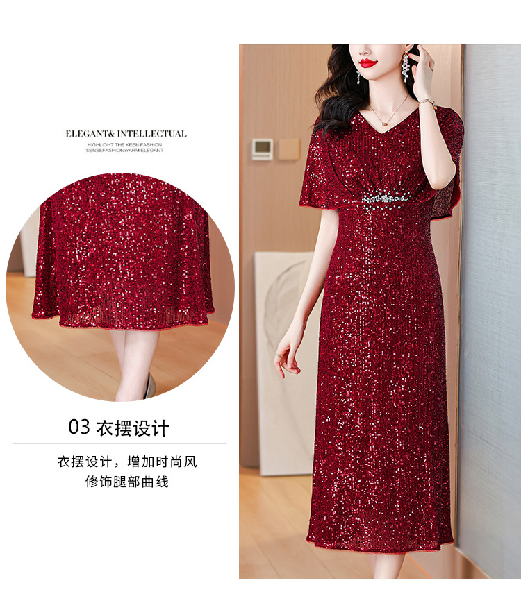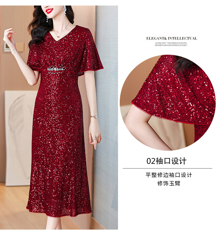 AHM nrm7906亮片年轻款酒红色连衣裙 商品图3