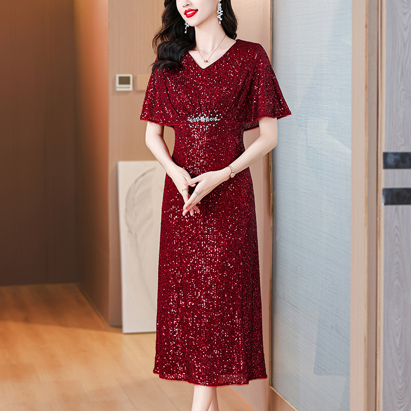 AHM nrm7906亮片年轻款酒红色连衣裙 商品图0