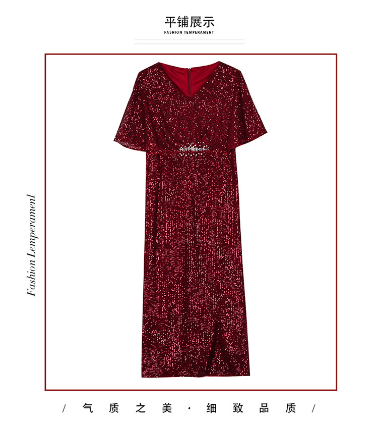 AHM nrm7906亮片年轻款酒红色连衣裙 商品图4