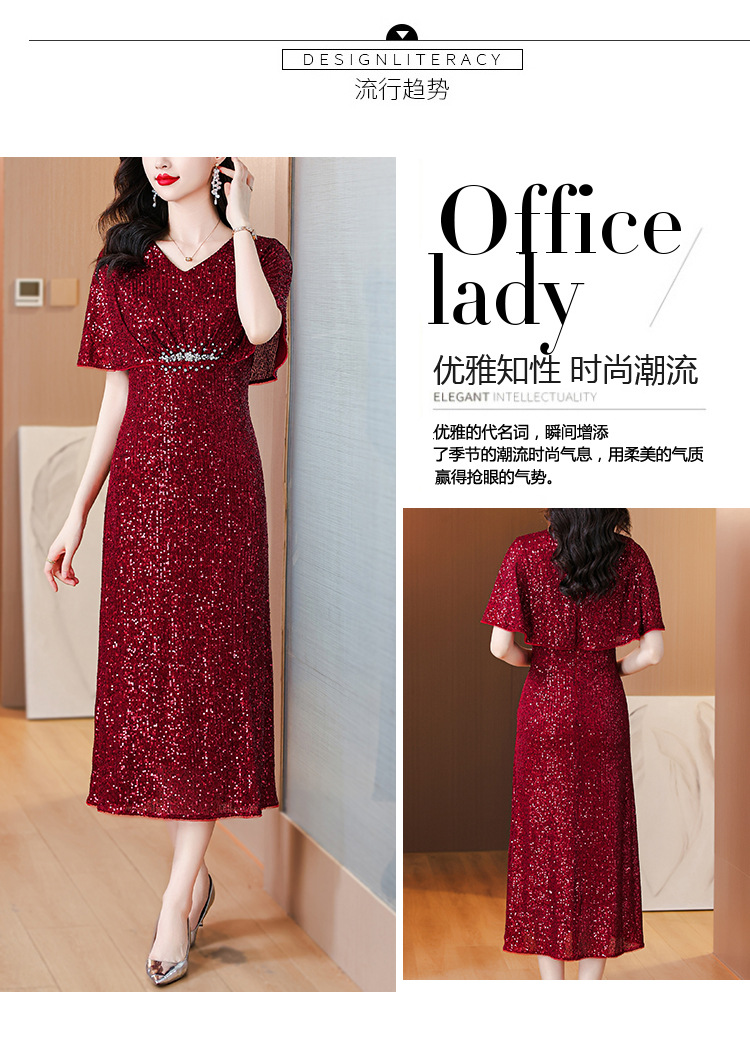 AHM nrm7906亮片年轻款酒红色连衣裙 商品图2