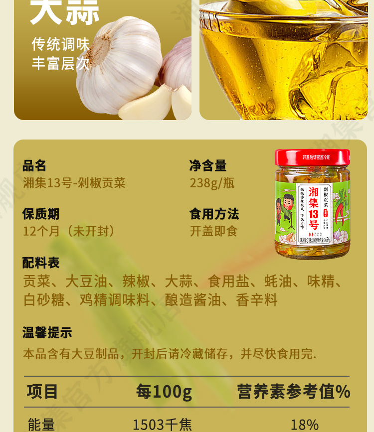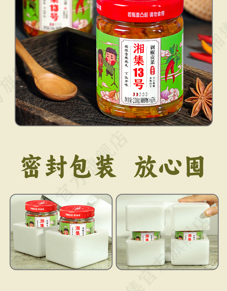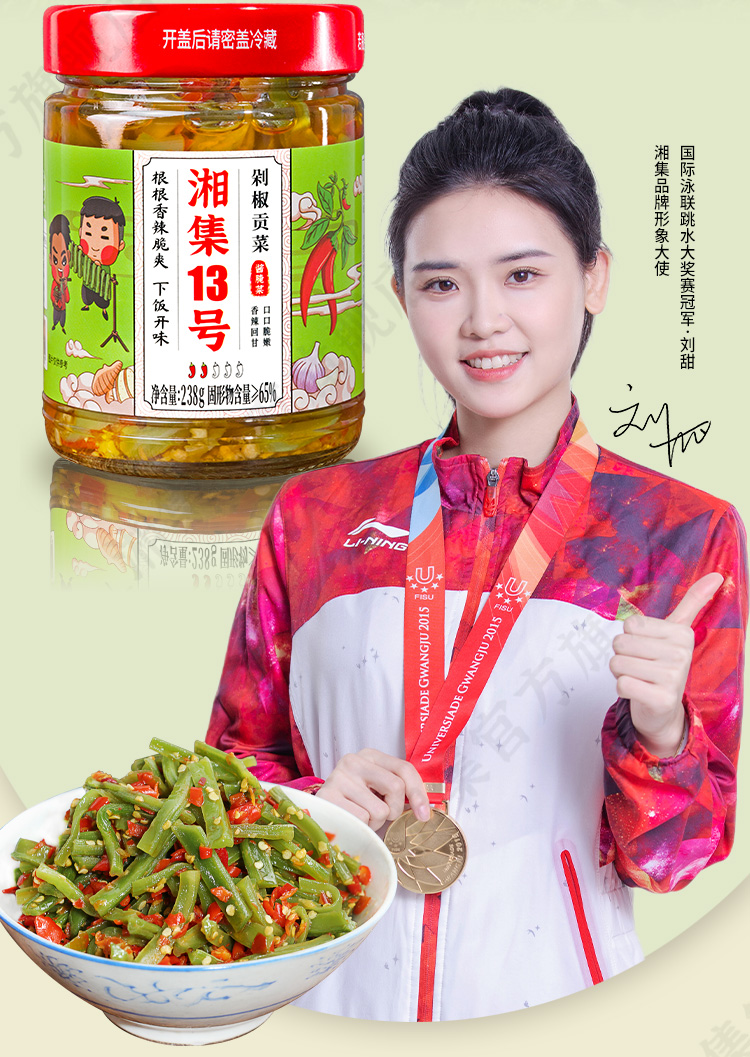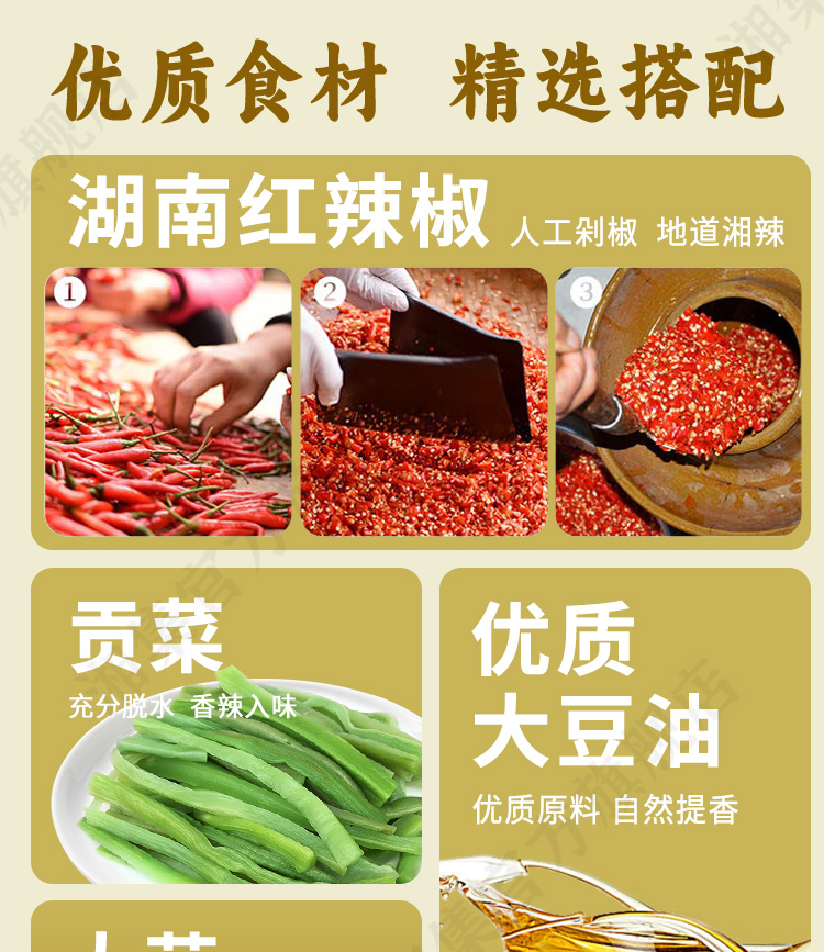 湘集13号剁椒贡菜瓶装即食下饭咸菜湖南辣椒酱菜榨菜腌菜