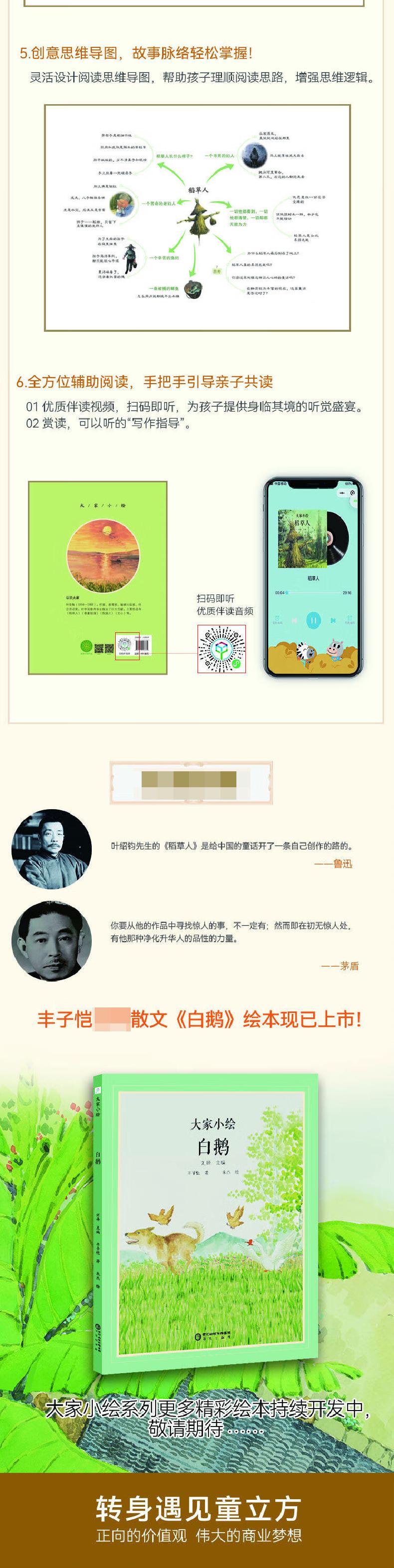 01中国文学***早为儿童创作的文学作品之一 02这是一篇让人心碎、悲伤但又温柔的另类童话 03鲁迅说它给中国的童话开辟了一条自己创作的路 04细腻的笔触,唤醒内心的善良和对生活的感受力 05专业写作老师为你分析文章,带你学习写作方法 06细致的思维导图理清名作脉络