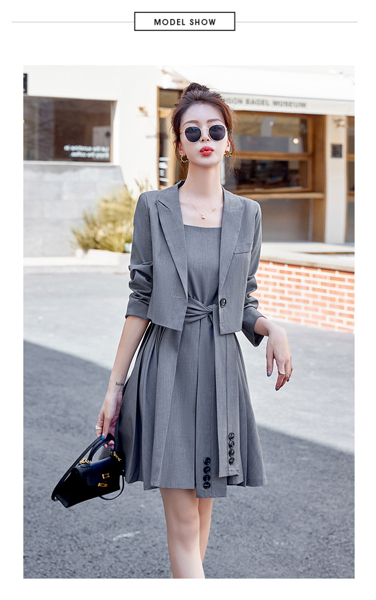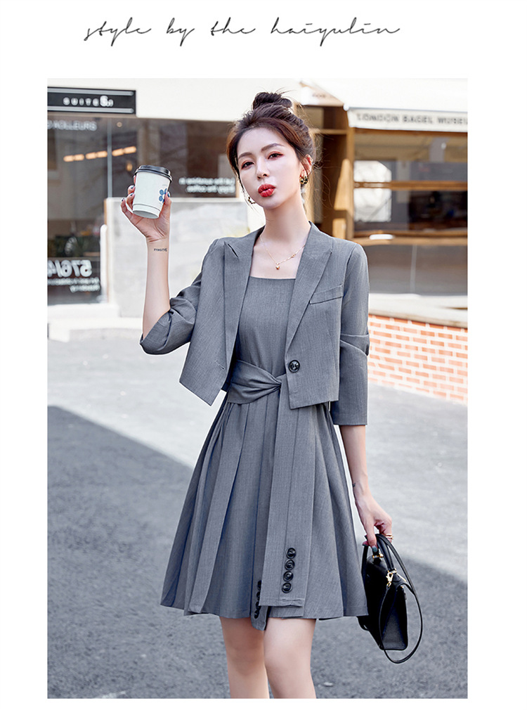 HR CPYY9025优雅风连衣裙套装西装款吊带连衣裙两件套 商品图4