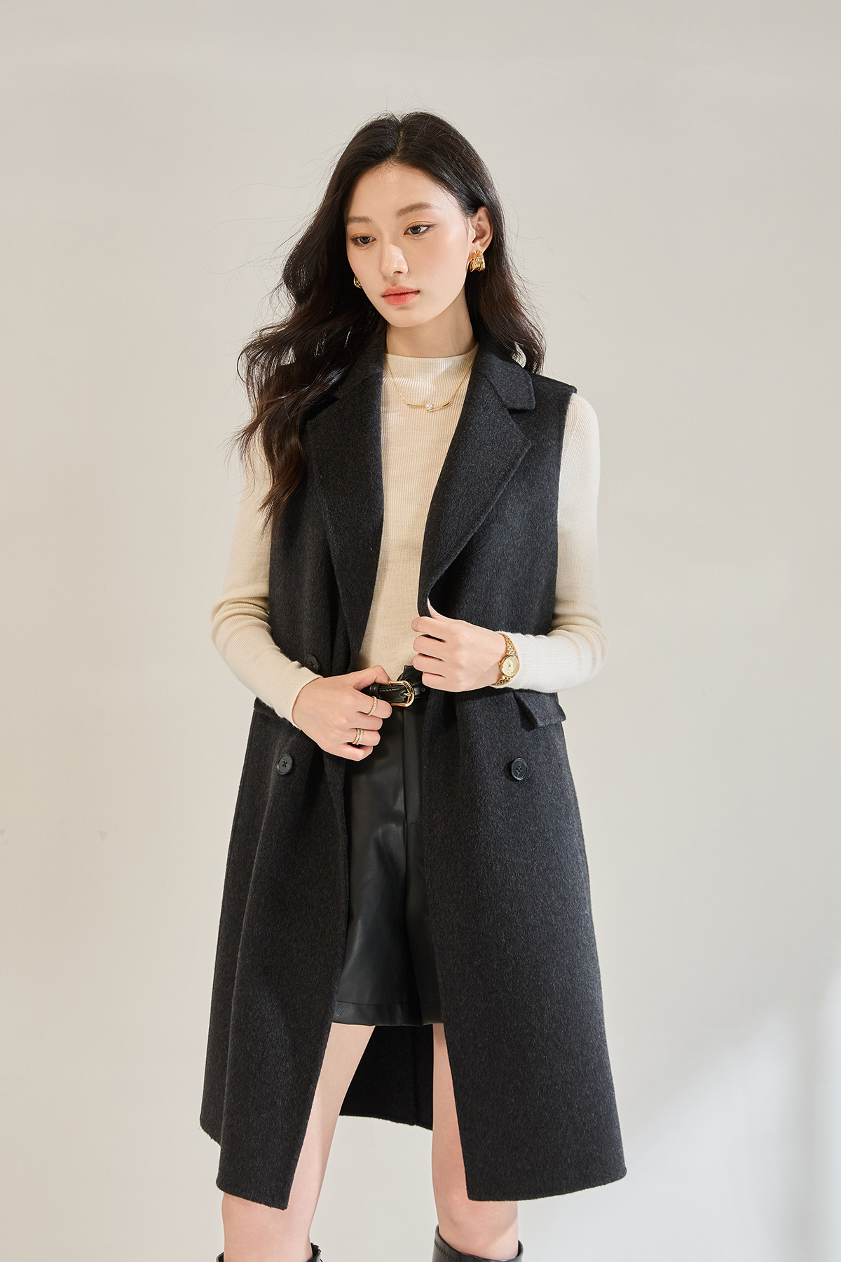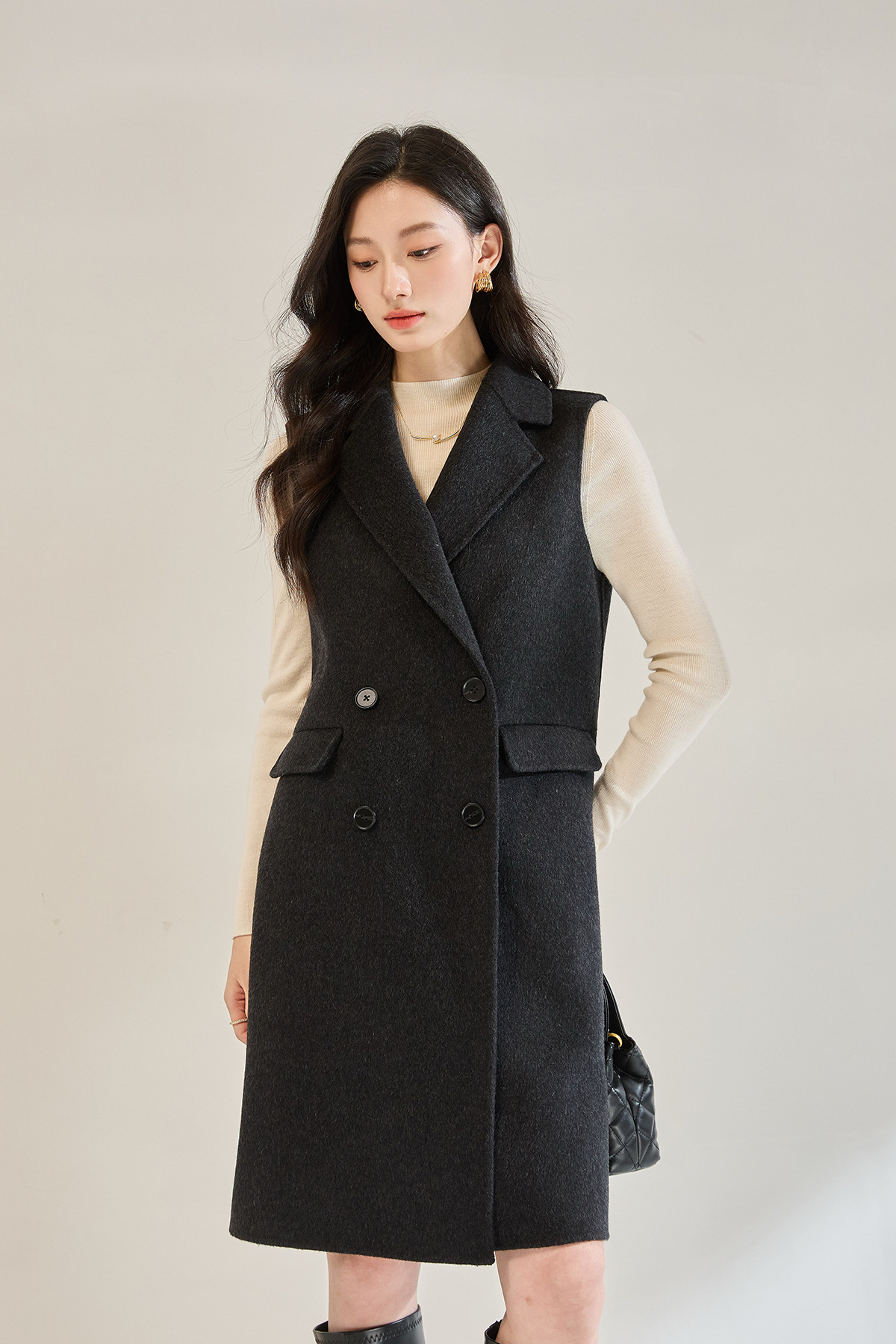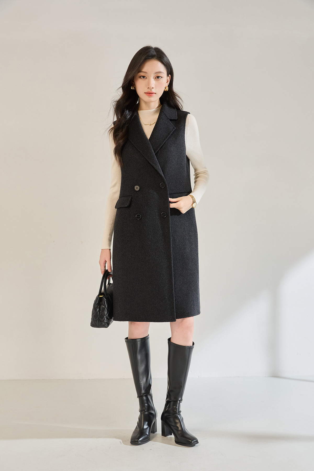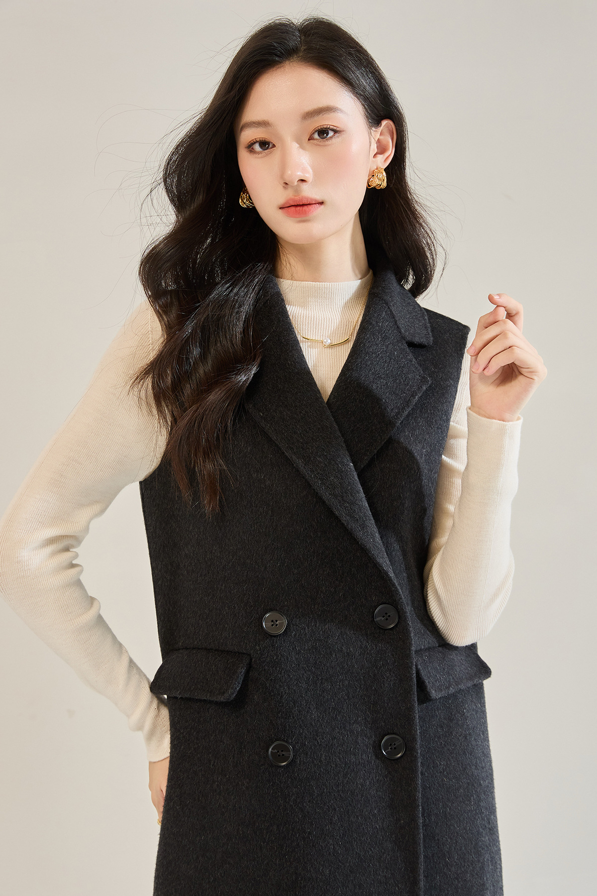 「高货sh」全新升级【铂金会员413/天猫559/差价146】(00743)洛诗琳新款中长款双排扣外套2025秋季气质羊毛双面呢马甲