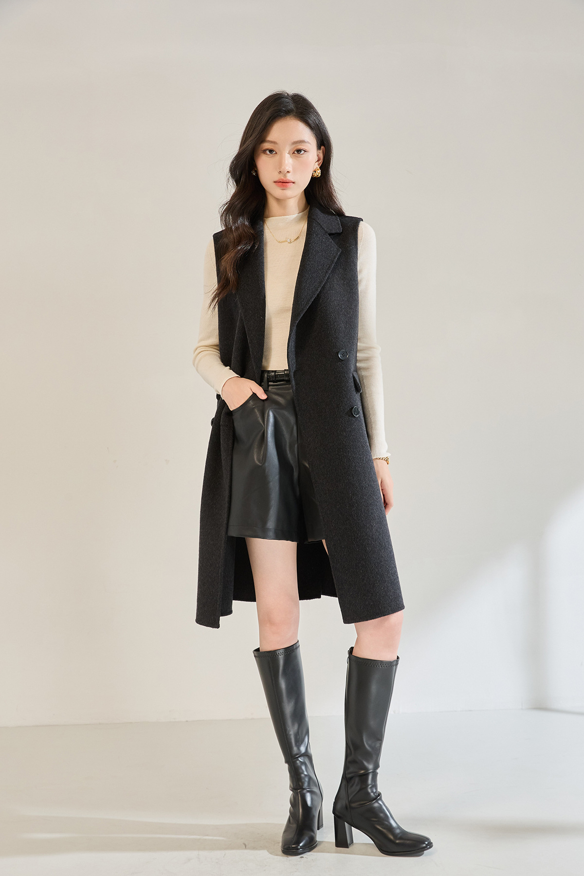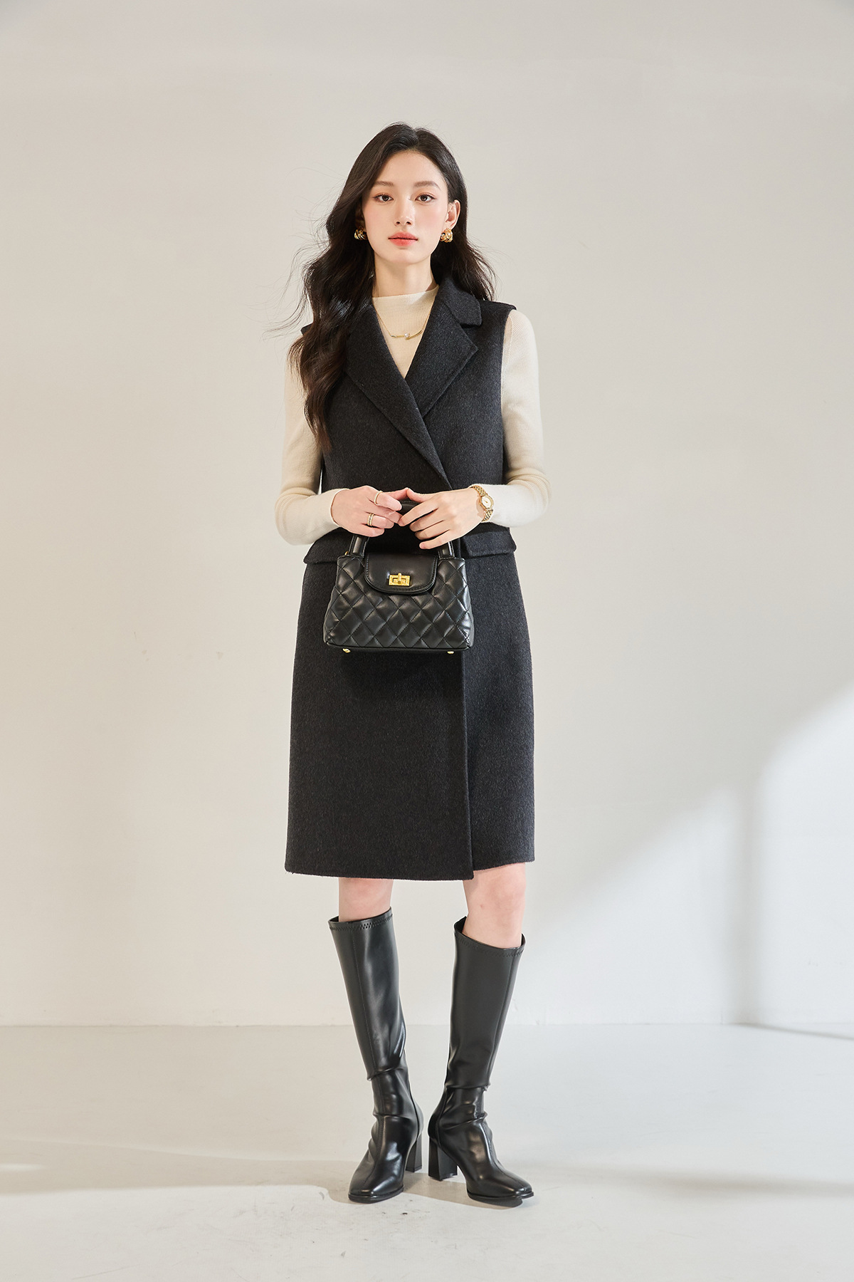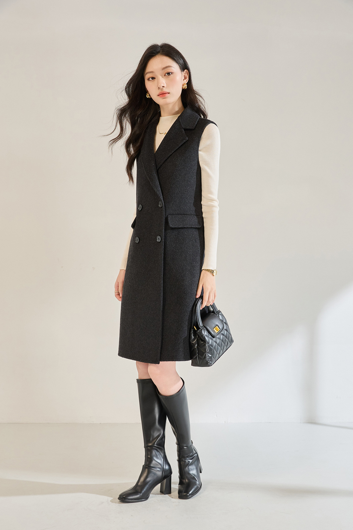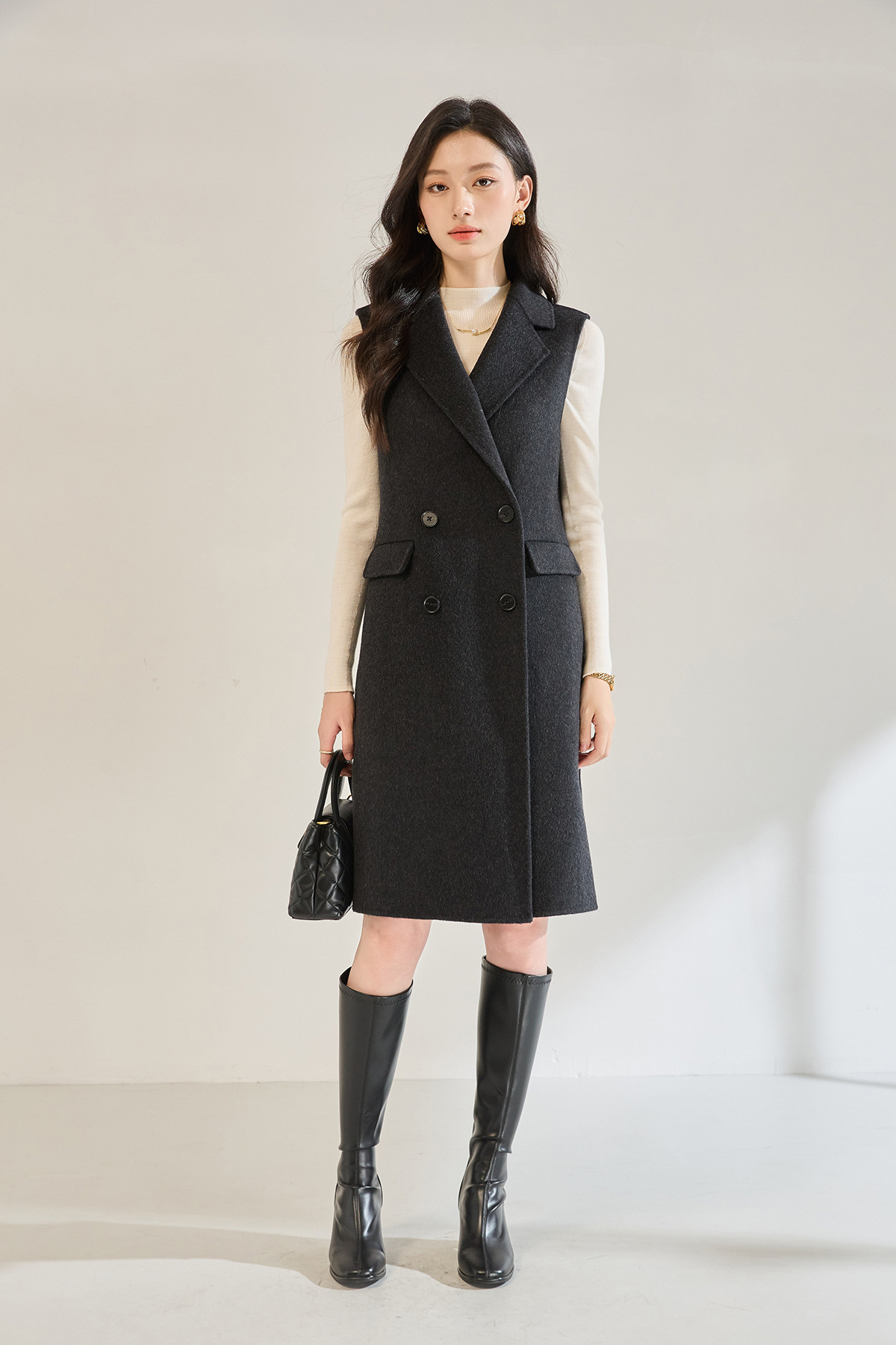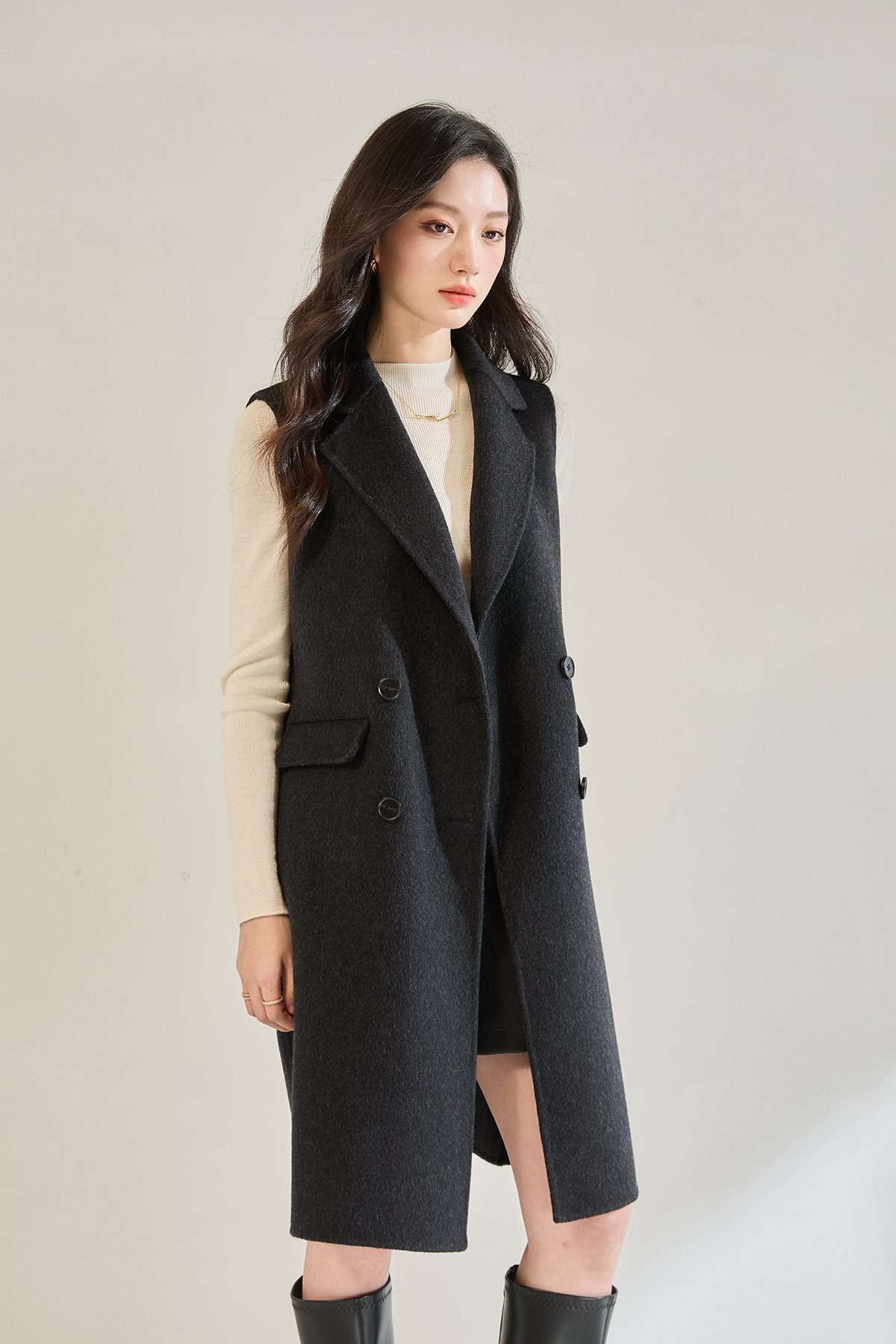 「高货sh」全新升级【铂金会员413/天猫559/差价146】(00743)洛诗琳新款中长款双排扣外套2025秋季气质羊毛双面呢马甲