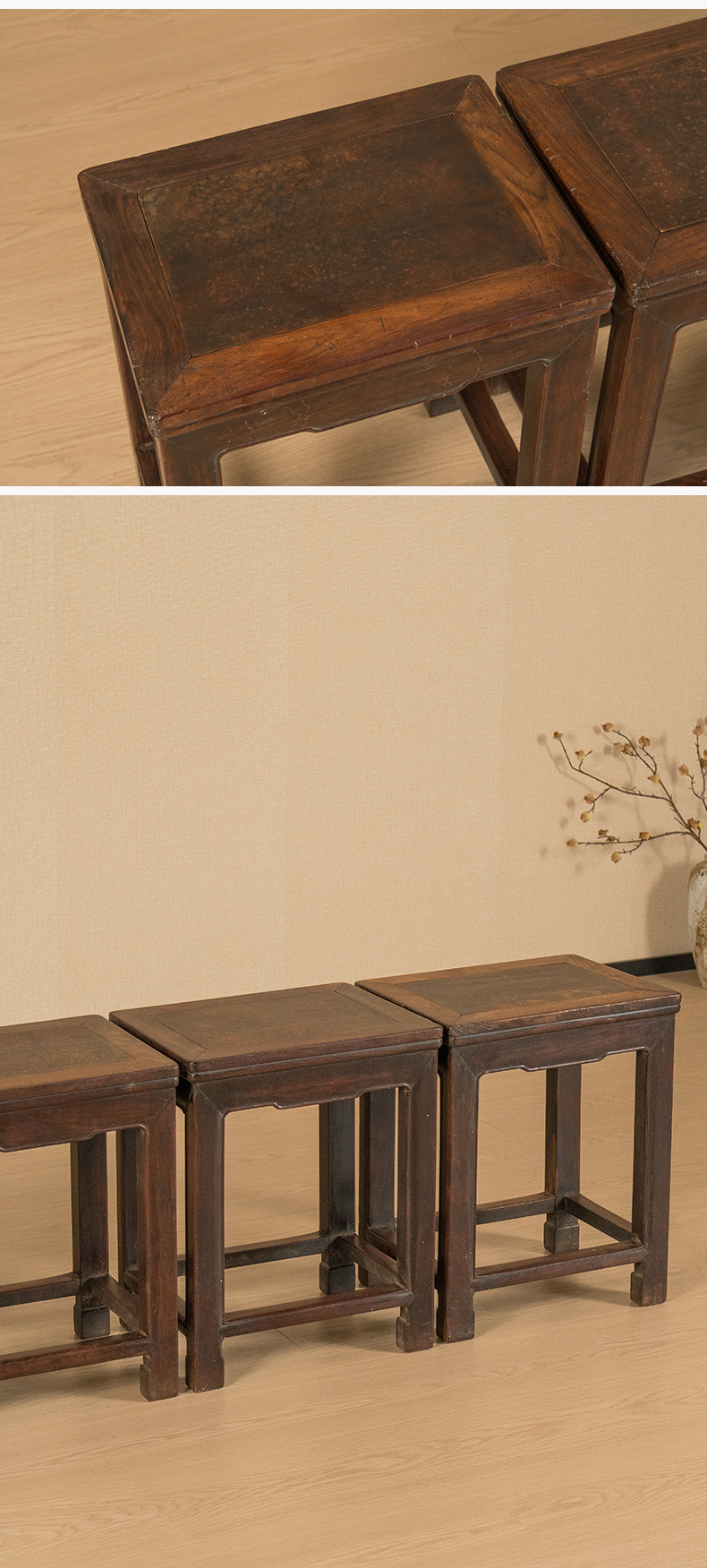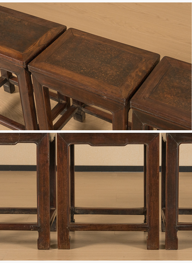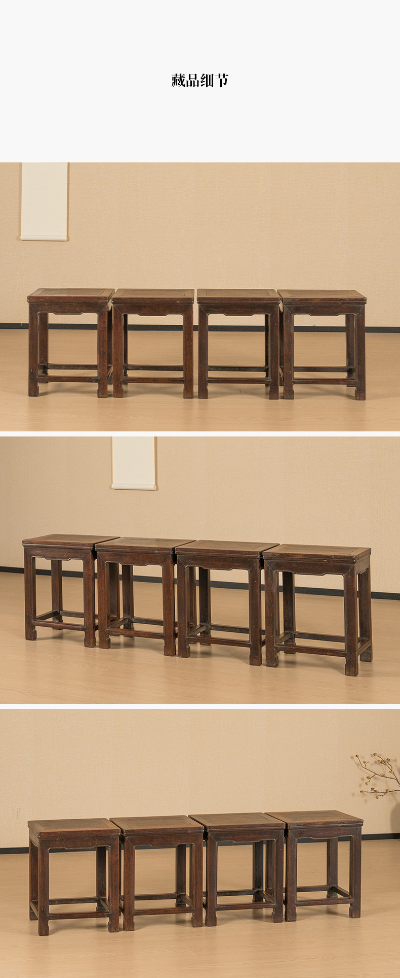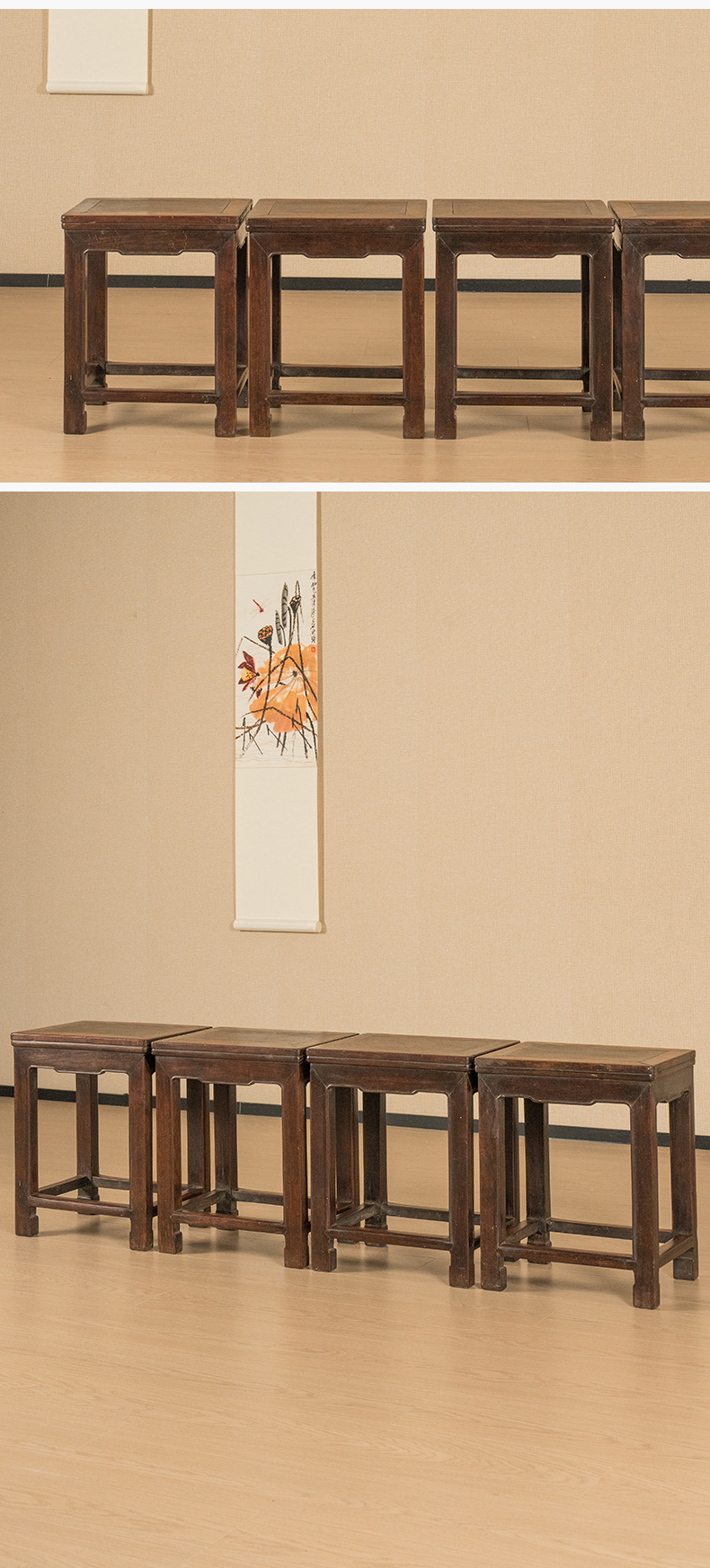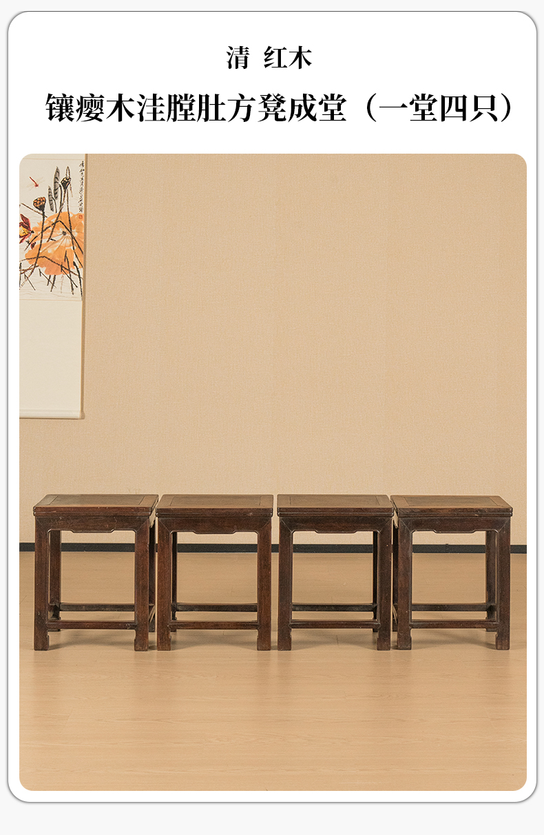 清 红木镶瘿木洼膛肚方凳成堂(一堂四只)