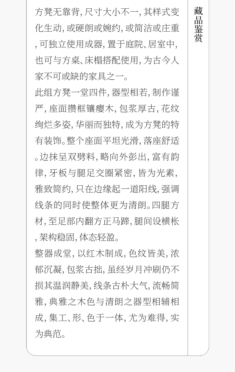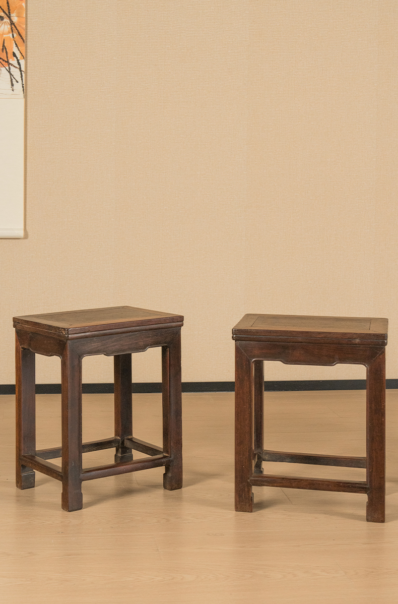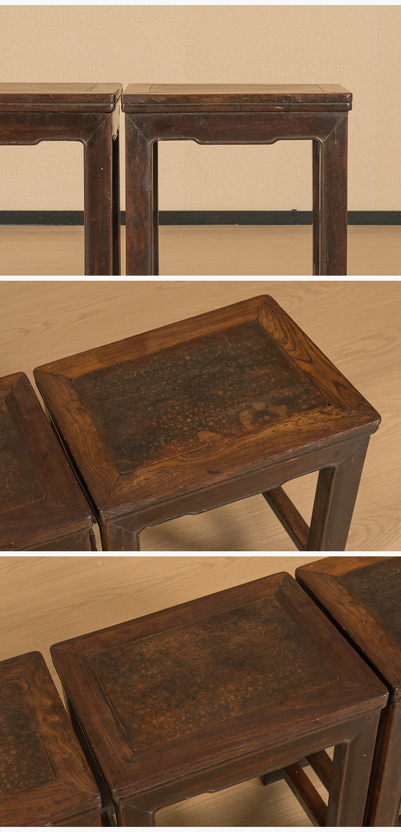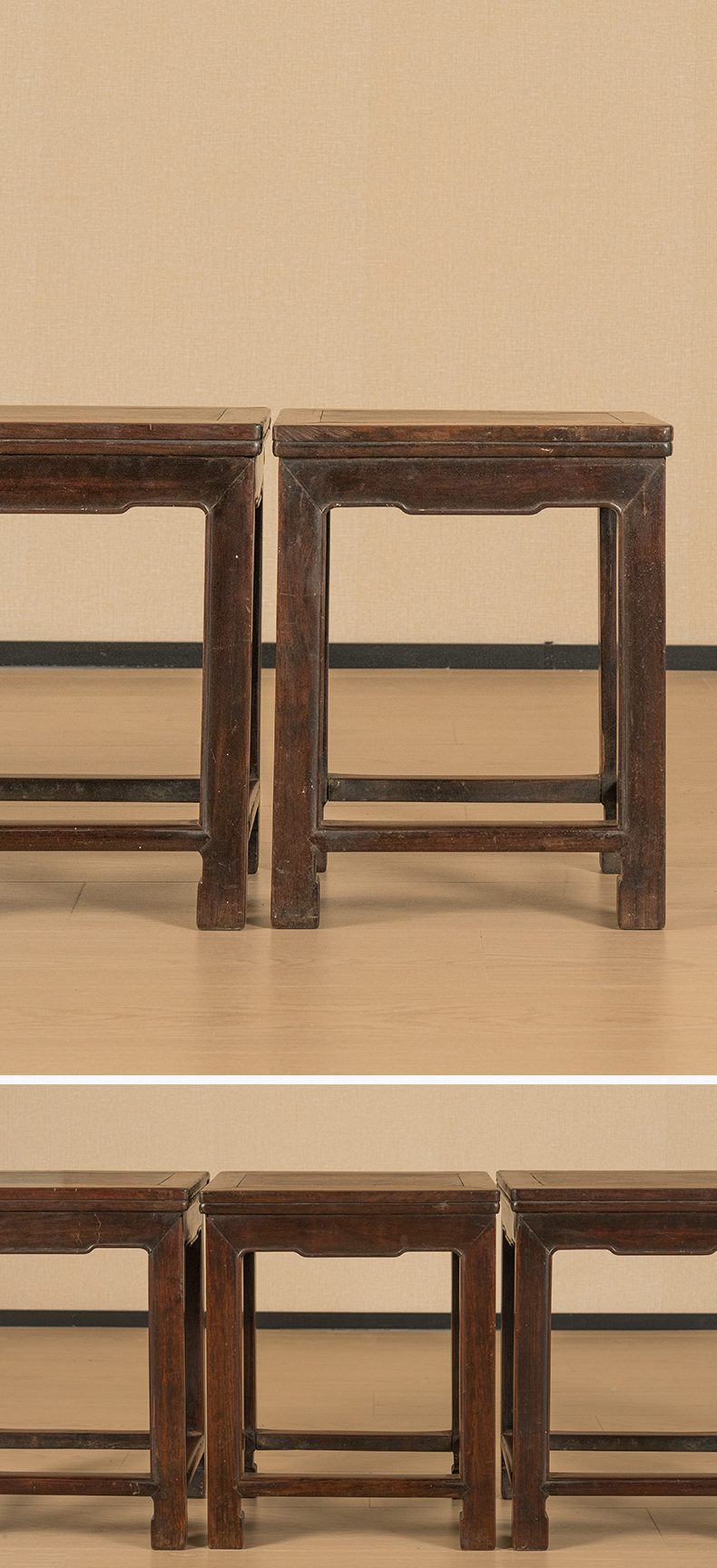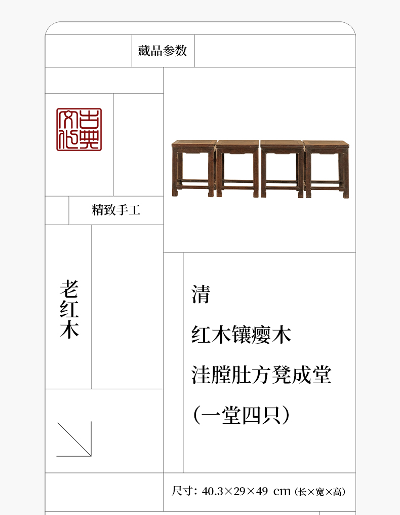 清 红木镶瘿木洼膛肚方凳成堂(一堂四只)