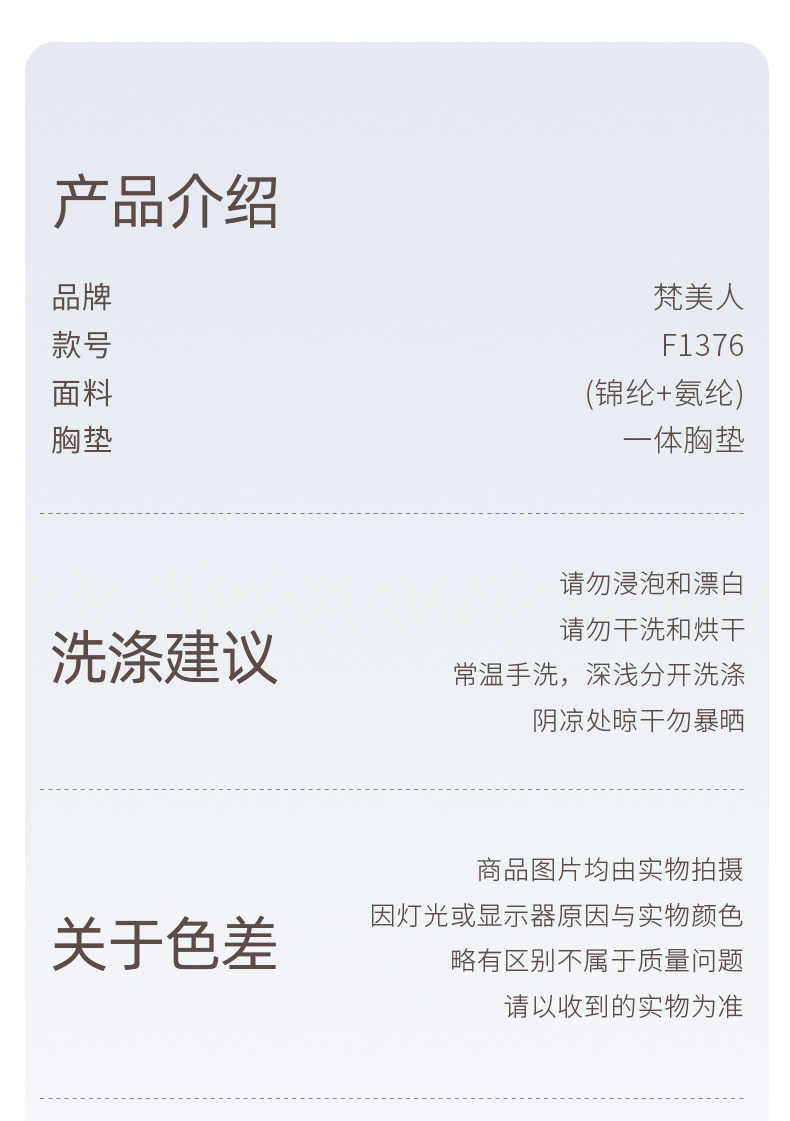梵美人 F1376 瑜伽短袖 一体胸垫 莱卡云柔