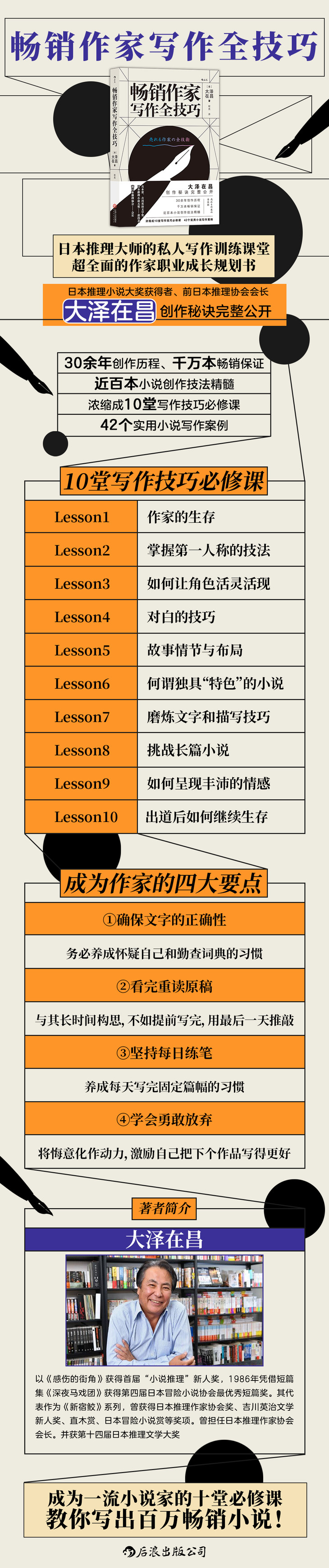 ★30余年创作历程、千万本畅销保证、近百本小说创作技法精髓,浓缩成10堂写作技巧必修课、42个实用小说写作案例。