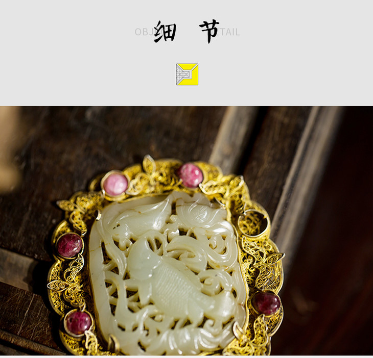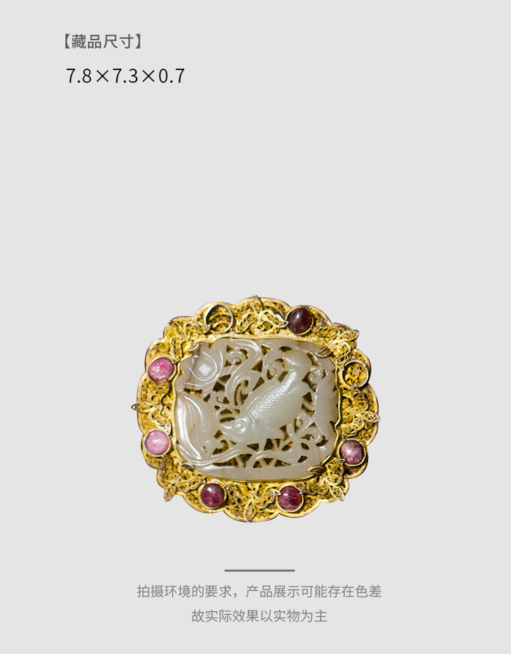 明代 银鎏金镶玉雕金鱼荷花纹饰件