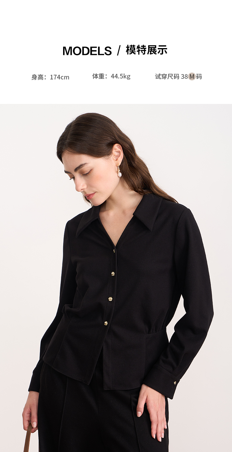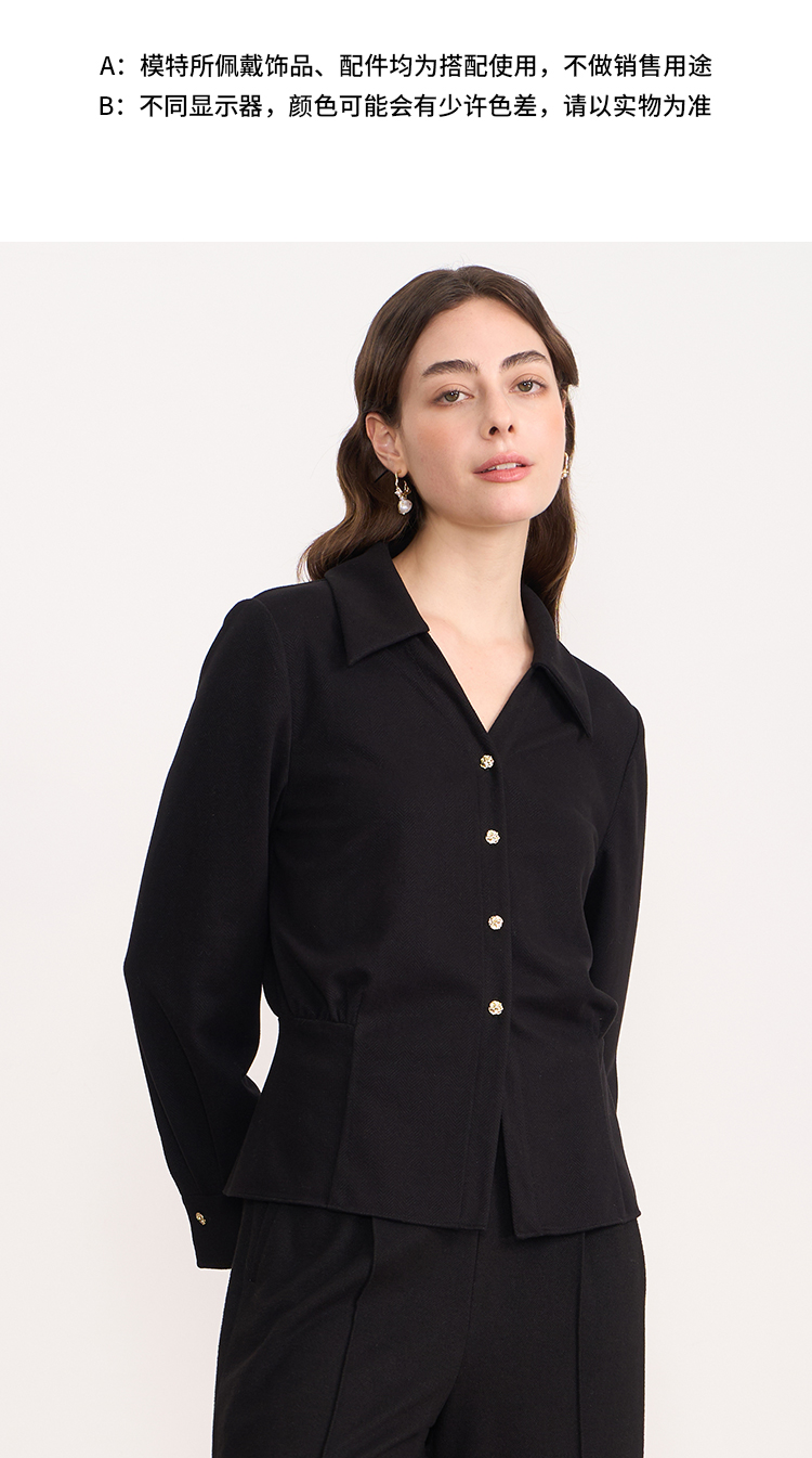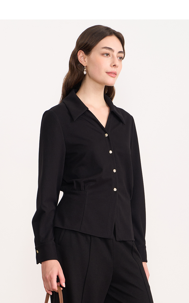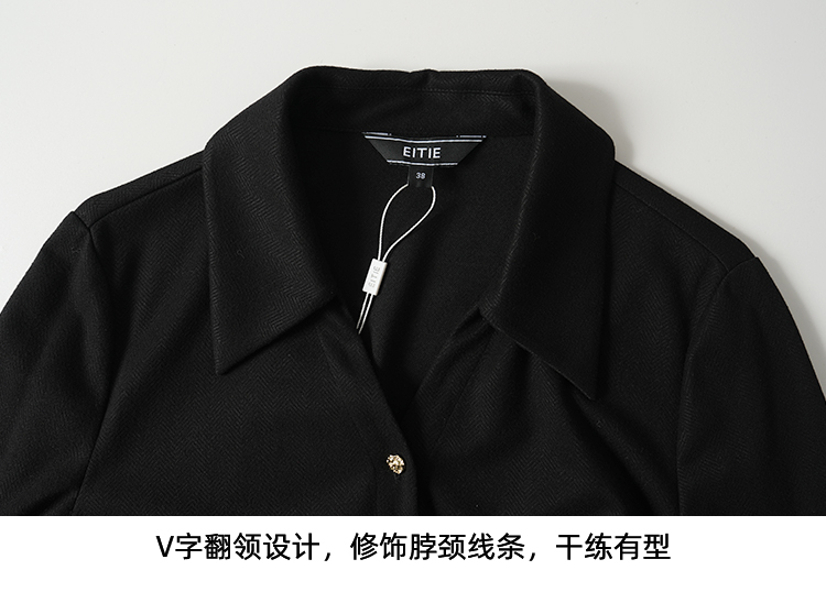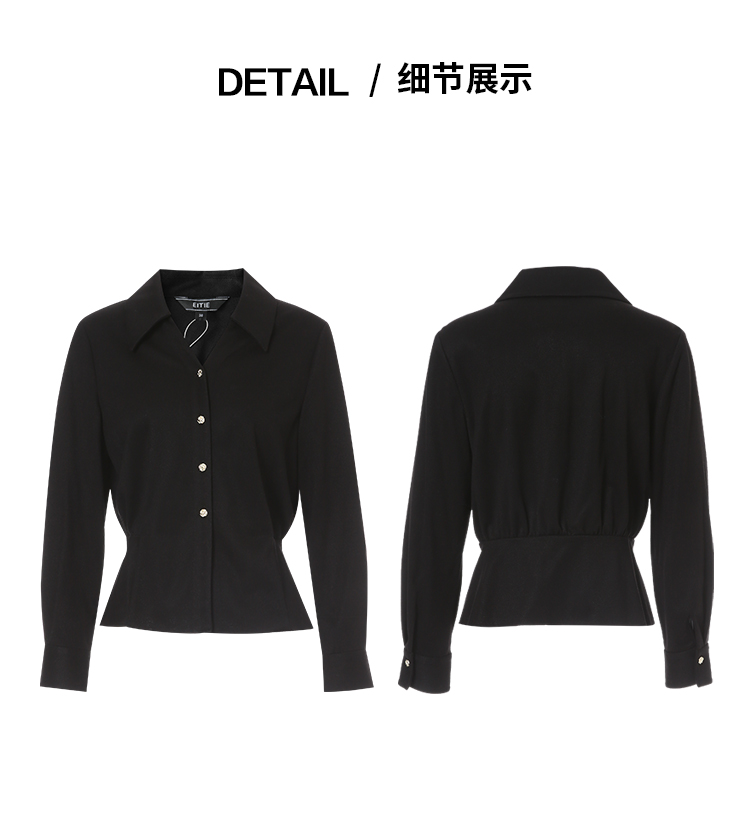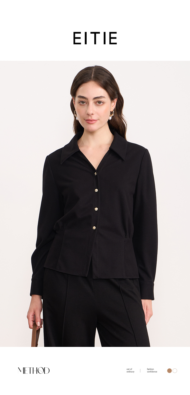 EITIE爱特爱黑色翻领收腰显瘦气质通勤长袖上衣2025秋冬新款衬衫D2509901