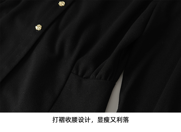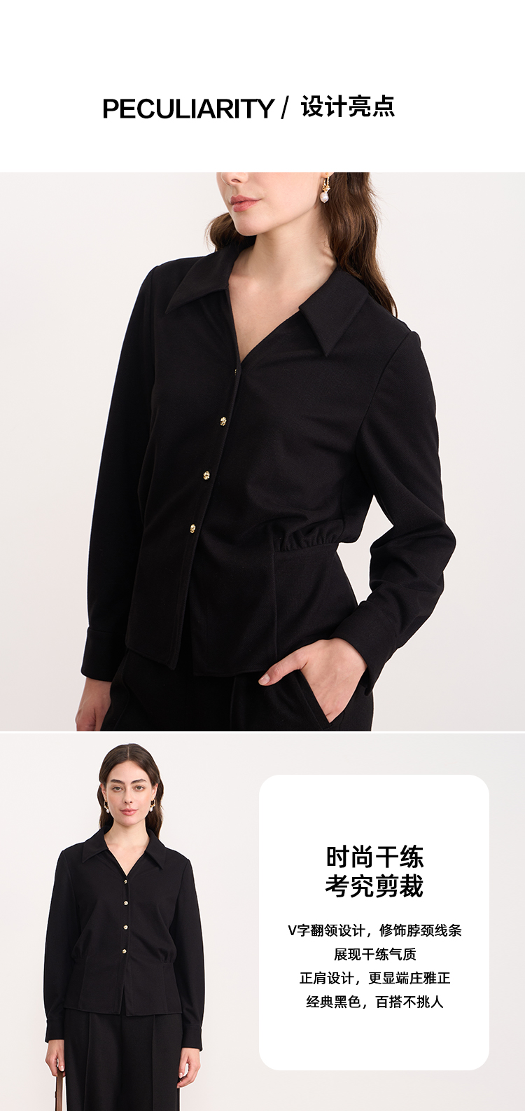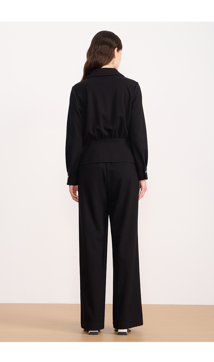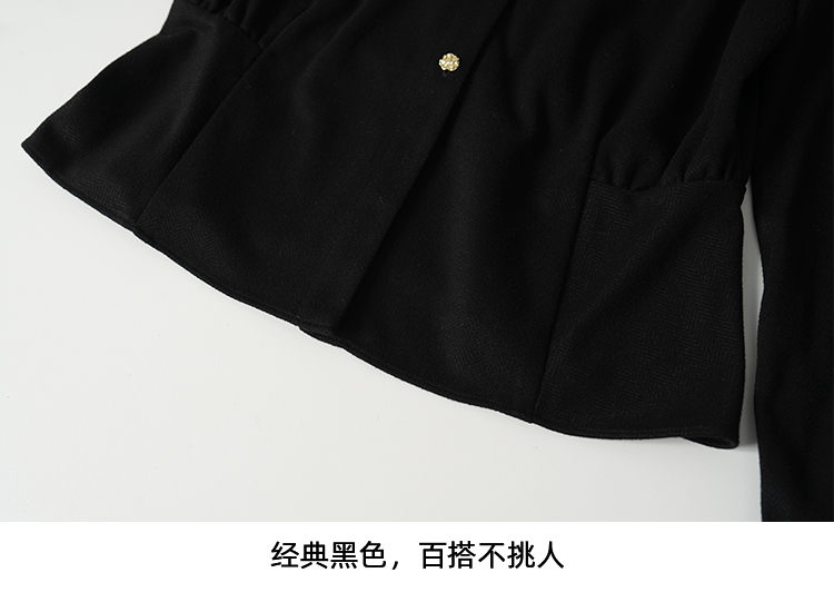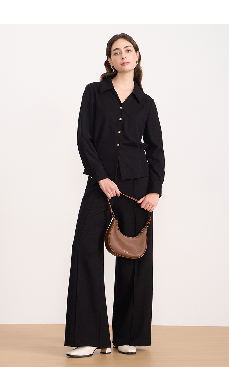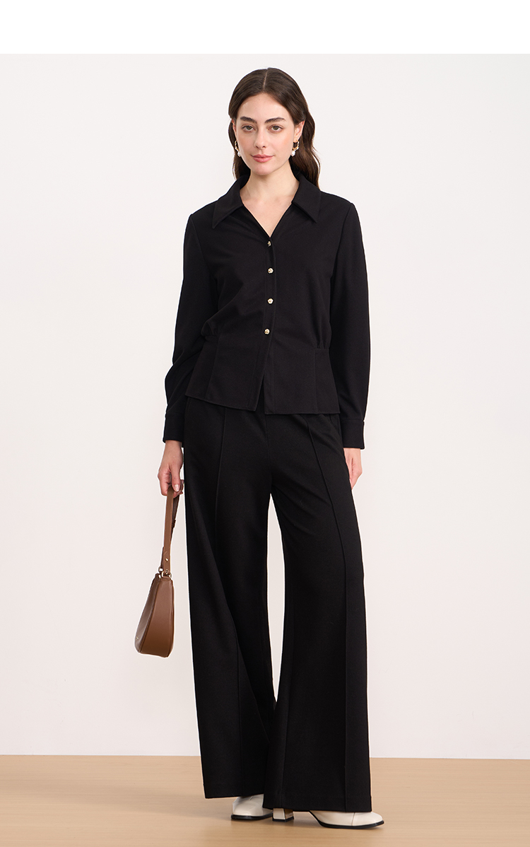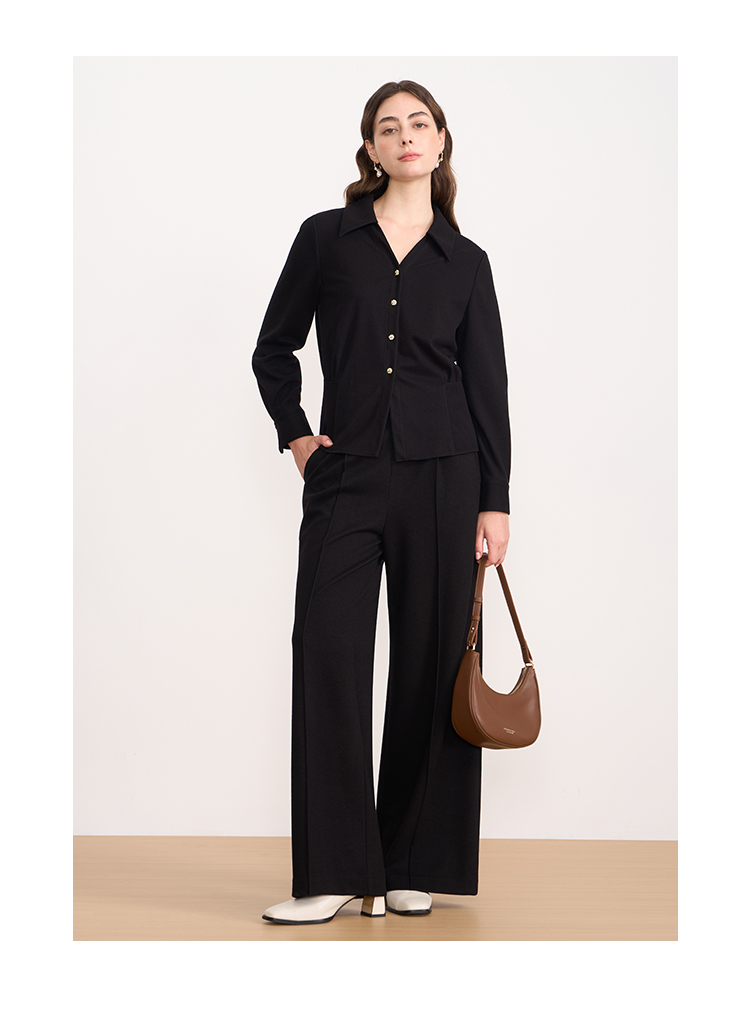 EITIE爱特爱黑色翻领收腰显瘦气质通勤长袖上衣2025秋冬新款衬衫D2509901