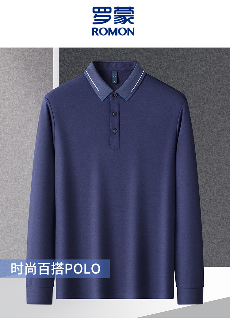 【经典款】罗蒙春秋男士仿丝光polo衫男长袖t恤男商务男士polo衫长袖
