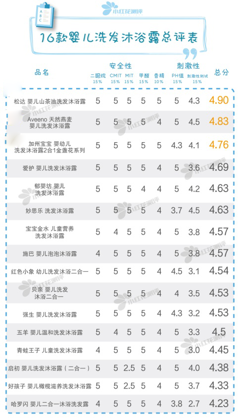 经过七项指标的PK, “松达 婴儿山茶油洗发沐浴露”成分安全,不含二噁烷、防腐剂以及香精,且刺激性低,成为了推荐产品。测评详情请点击>>>《16款宝宝洗发沐浴露测评:两款产品可致敏防腐剂超欧盟标准!》
