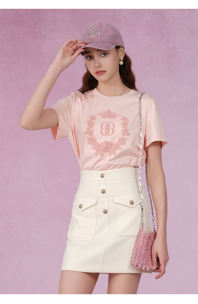 乔万尼短袖女t恤新款高端大牌真丝混纺EM2C843
