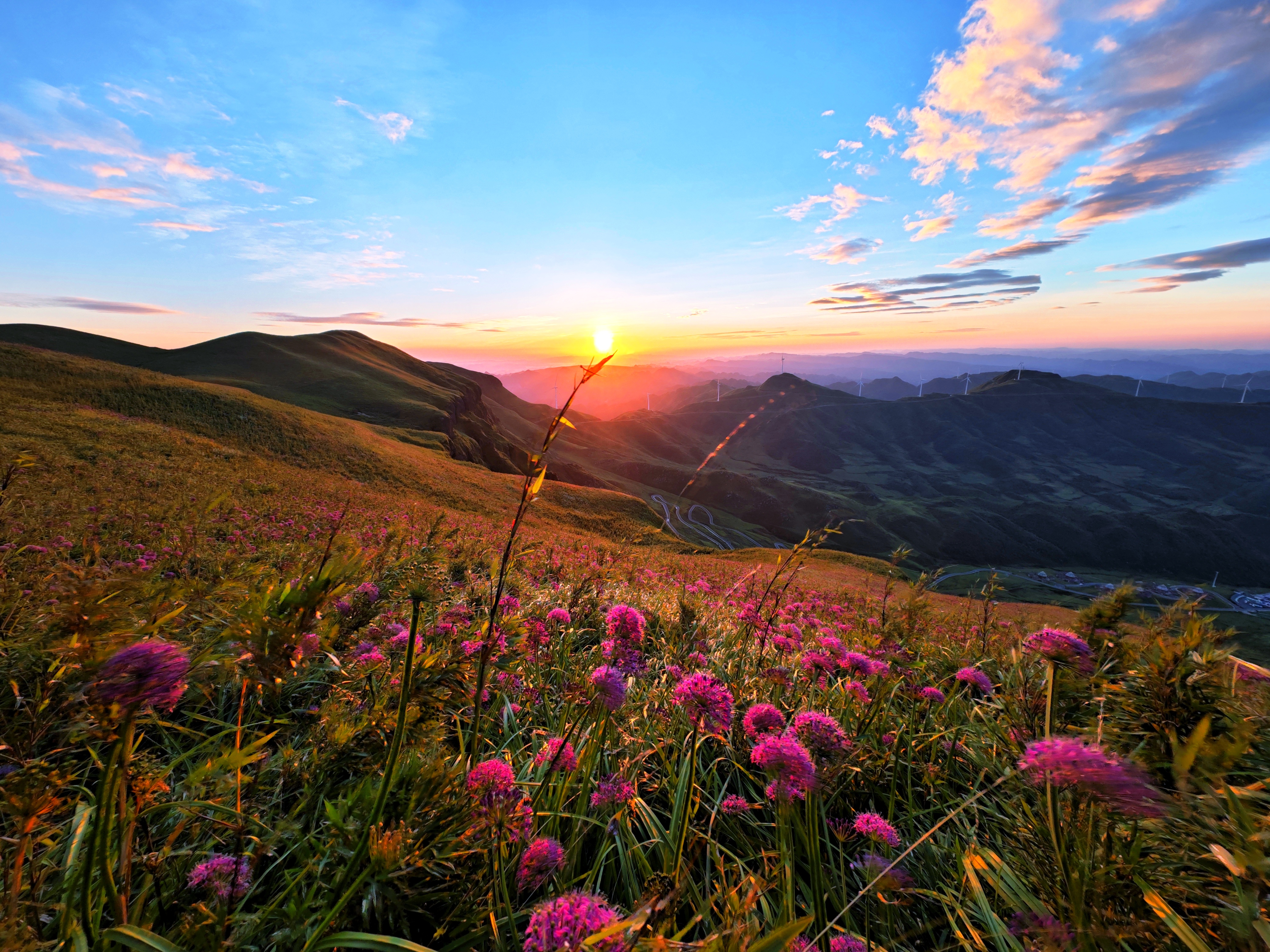 早起看天气拍摄花海中的云海日出,全天韭菜坪拍摄,这里有是世界上最大面积的野韭菜花带。九月初的韭菜坪,正好是韭菜花盛开的时候,漫山遍野五颜六色的野花,宁人赏心悦目,流连忘返,下午前往二台坡景区拍摄日落。