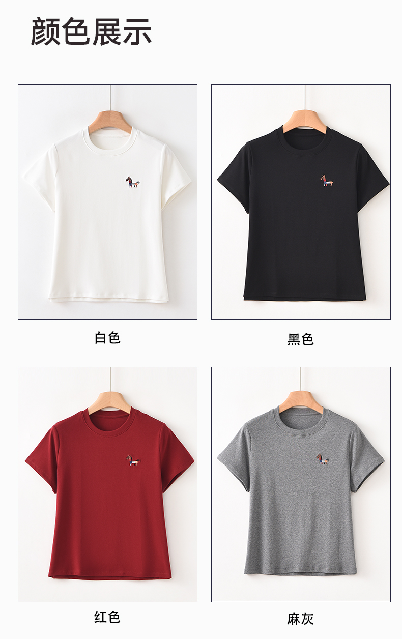 【秒杀】【2款可选】圆领刺绣小马短袖T恤衫C06D30 圆领刺绣MY字母短袖C06C82