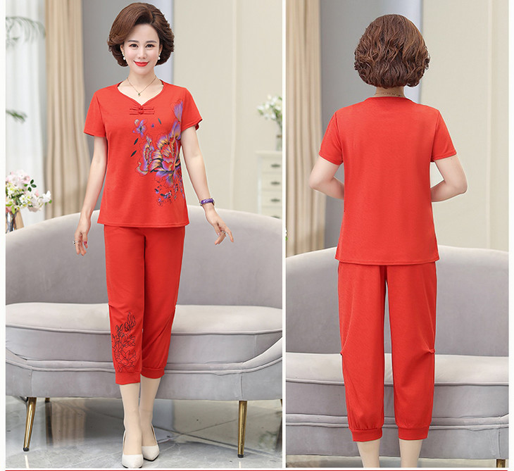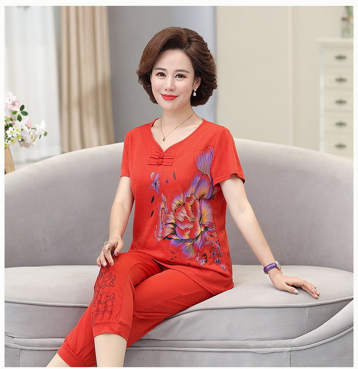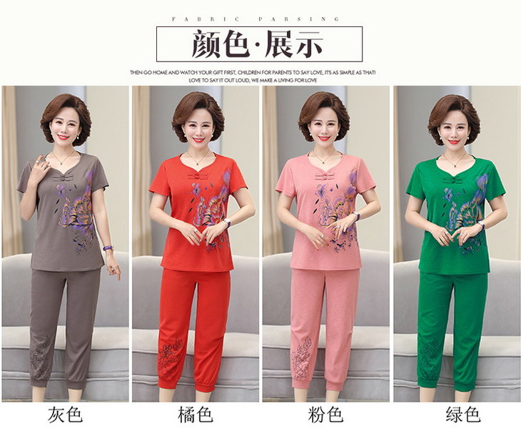 NP-MJ-058妈妈装新款短袖洋气T恤上衣中老年两件套