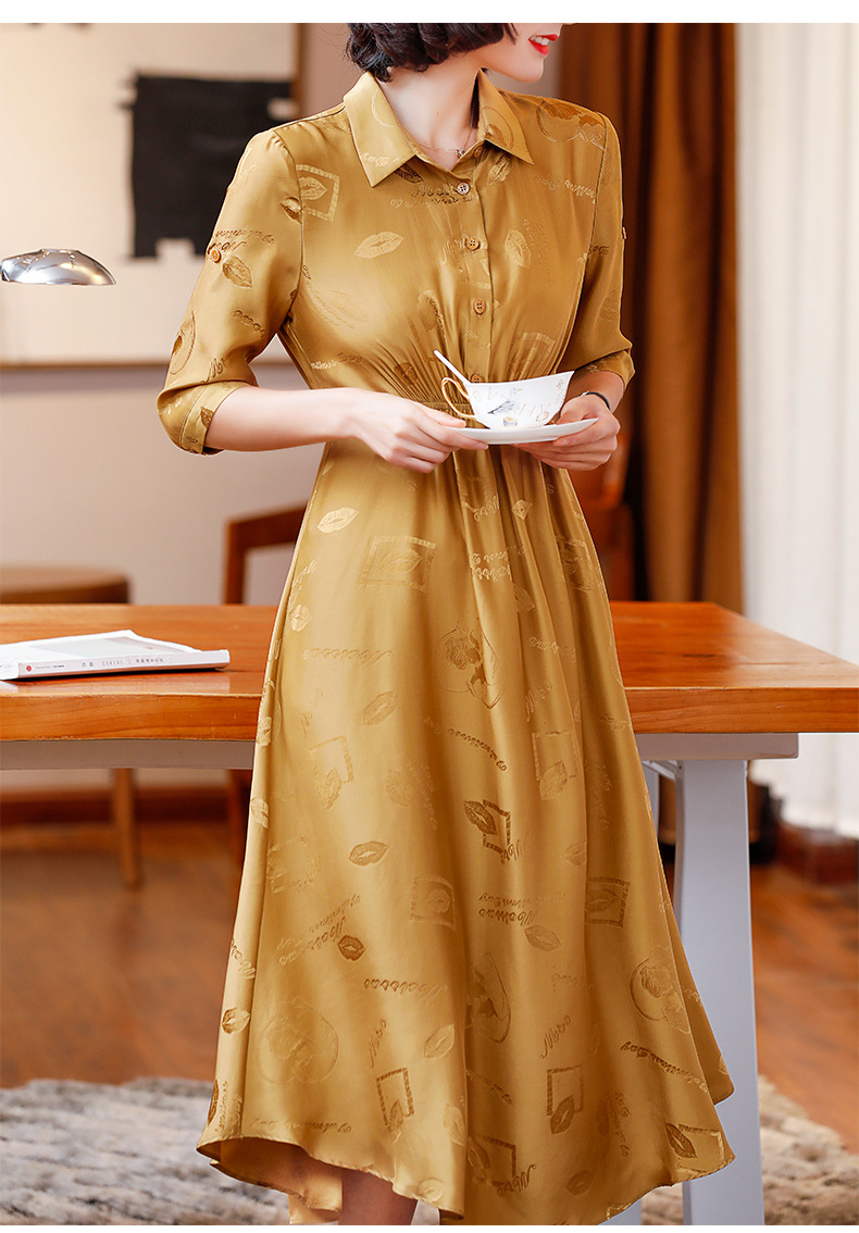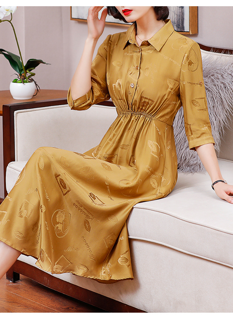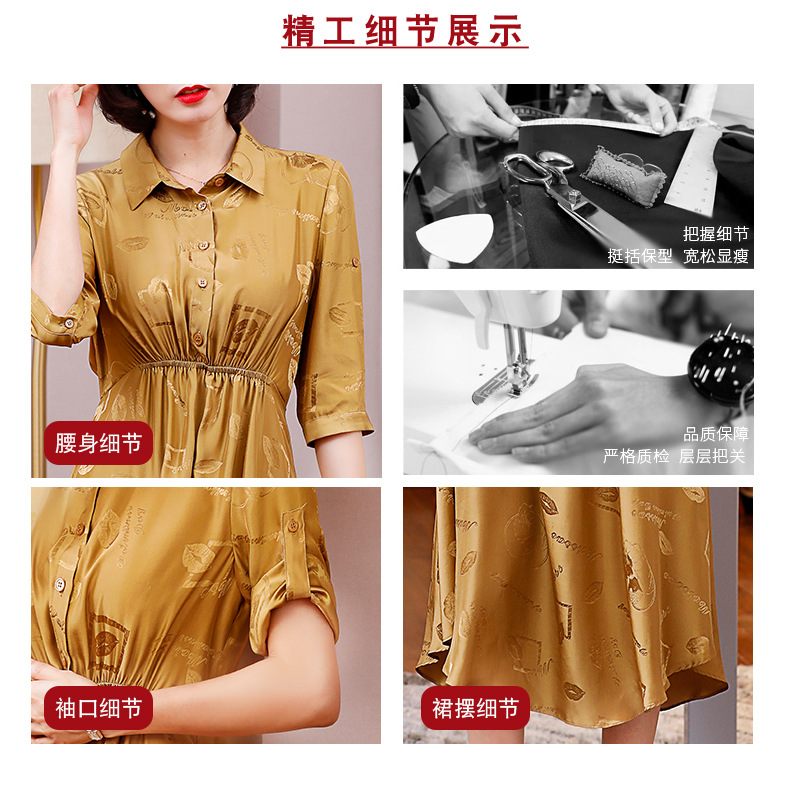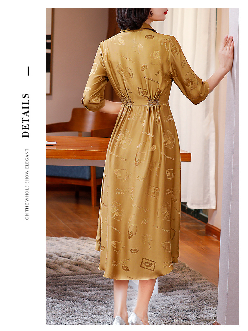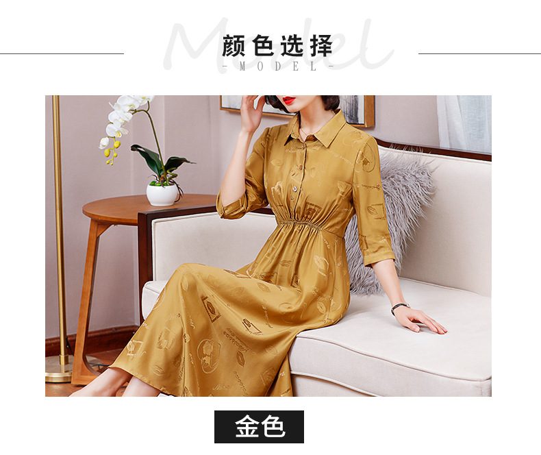 NYT-20118-2新款翻领单排扣弹力松紧腰真丝连衣裙