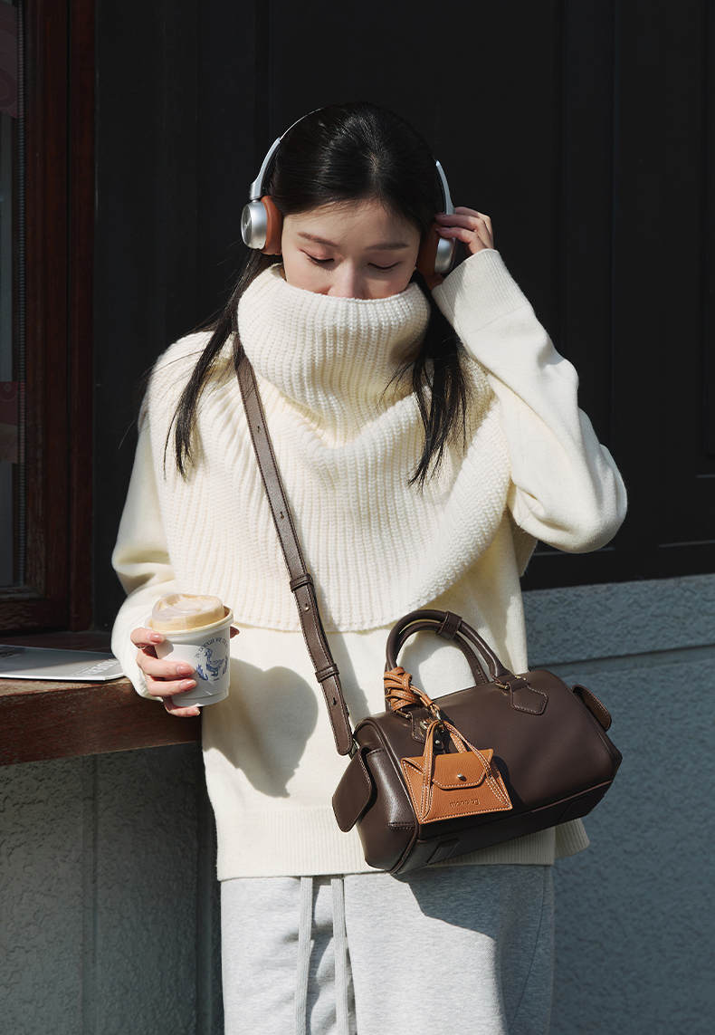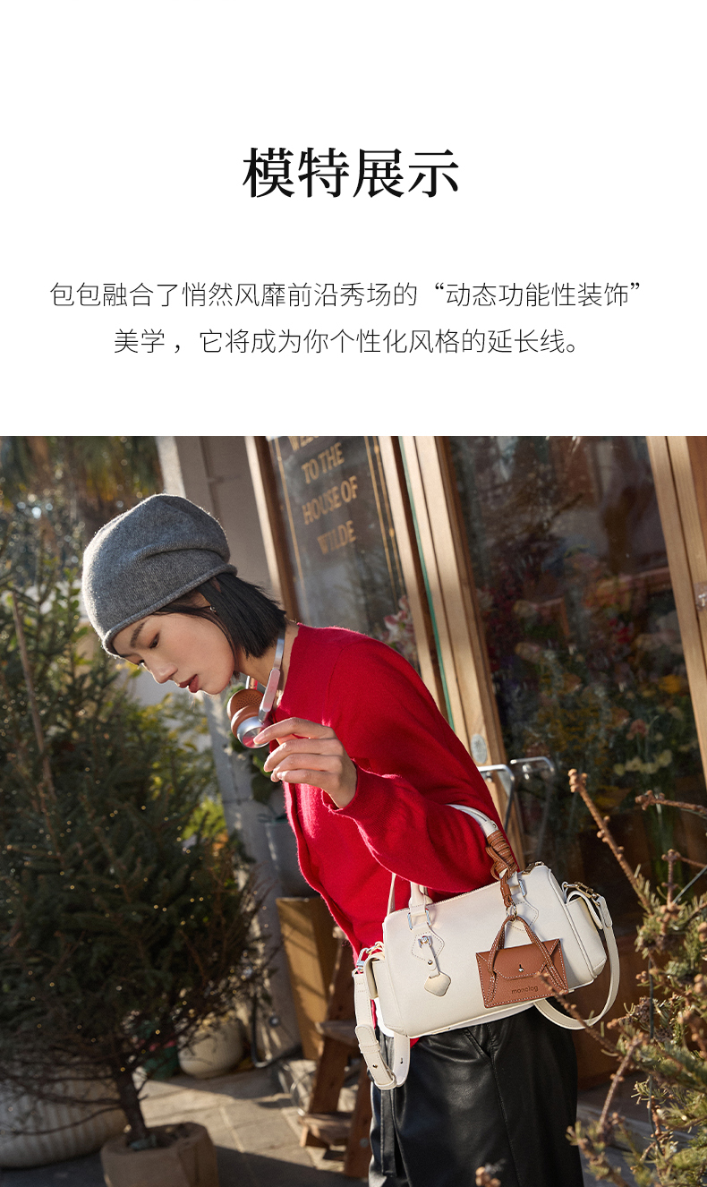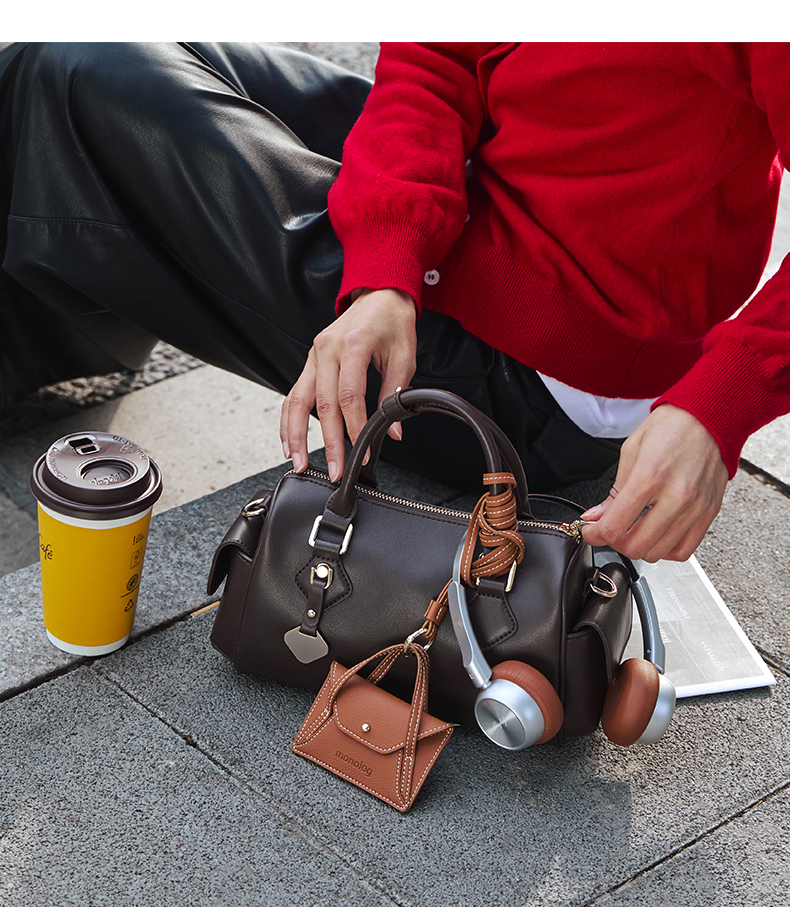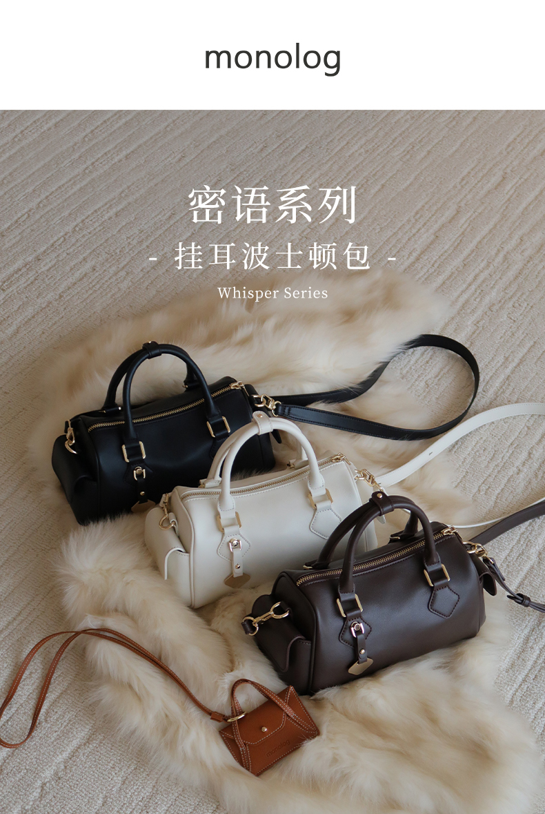 独白X卡拉羊 挂耳波士顿包优雅精致单肩斜挎手拎女包密语系列 D4201