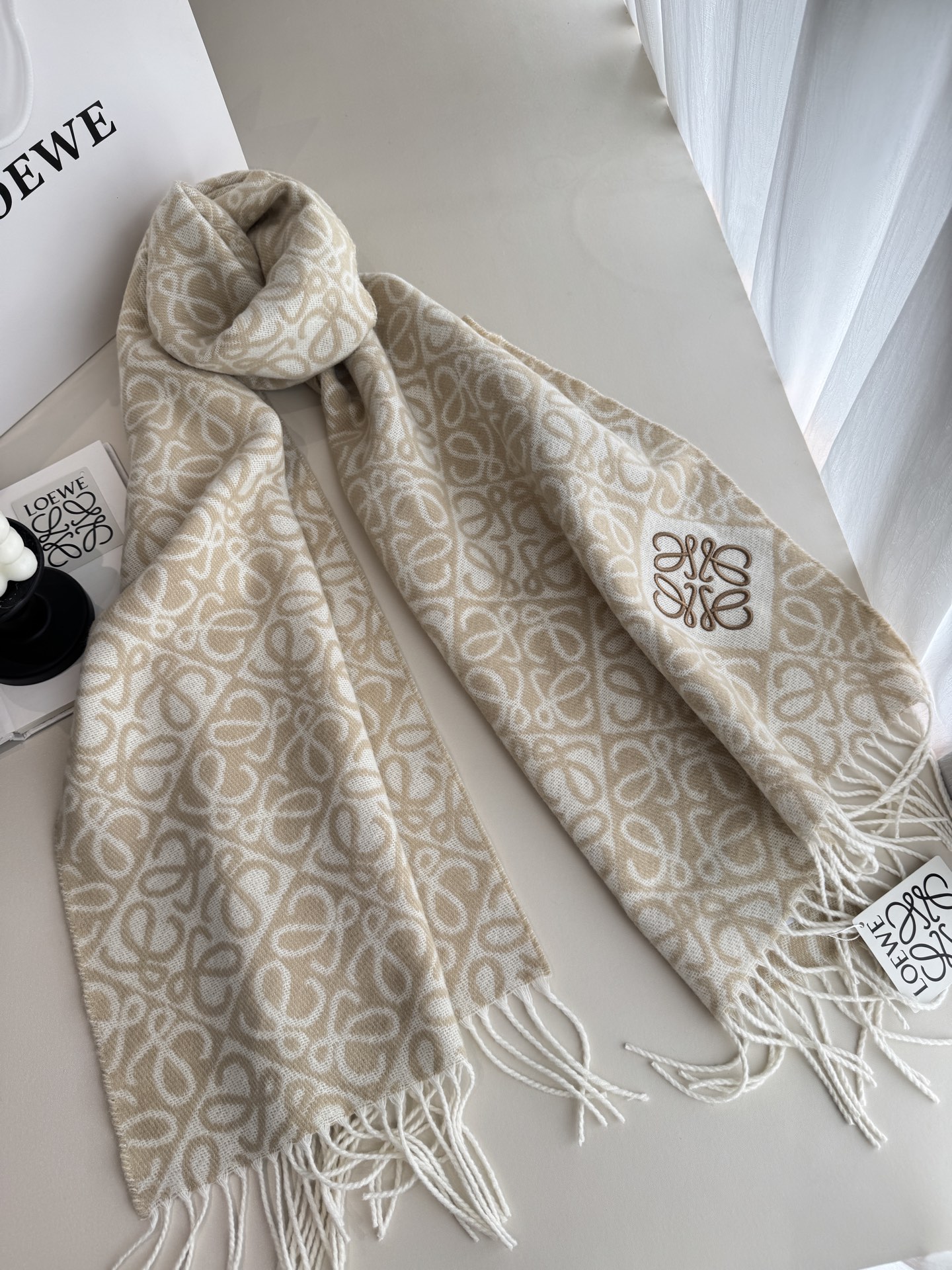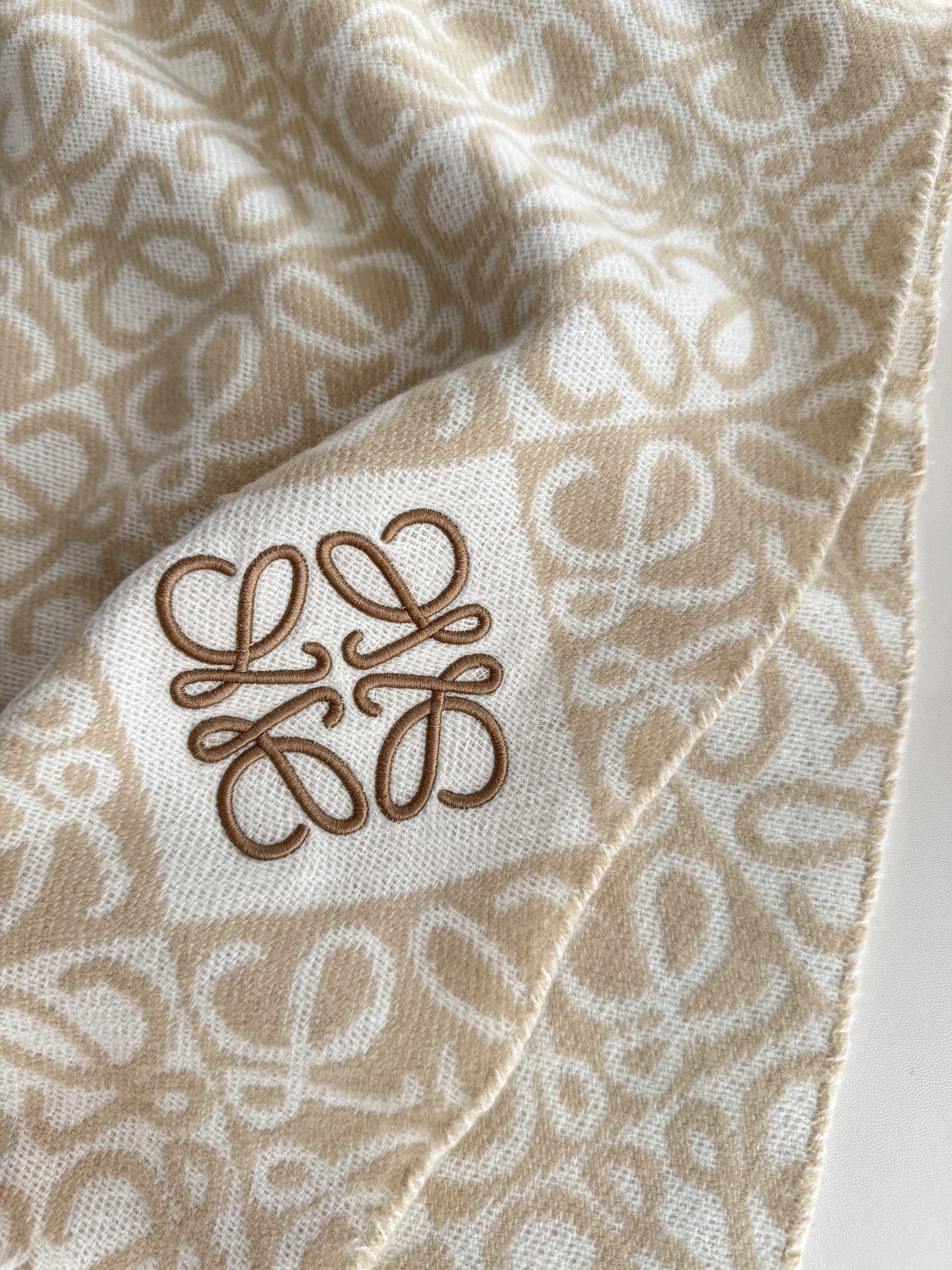 Loewe。顶级中性款!罗意威很幸運拿到這個品牌的東西,真的不多見,很少在國內做訂單,款式真的少的可怜!羅意威作為西班牙的頂尖奢侈品牌,秉承傳統,技藝,熱誠,散髮獨特的西班牙貴族氣息!本款為巴塞羅納專櫃的櫥窗定制款!围巾整体构图为他们品牌最经典的LOGO风格设计。规格52x200, 手感特别好!这个款式真的是太爆了、市场上多种F货出现。F货又扎手又薄,质感很差!这款是市场上最高版本的!!手感特别好.,细腻柔软!!原版标!!真的福利好货!!