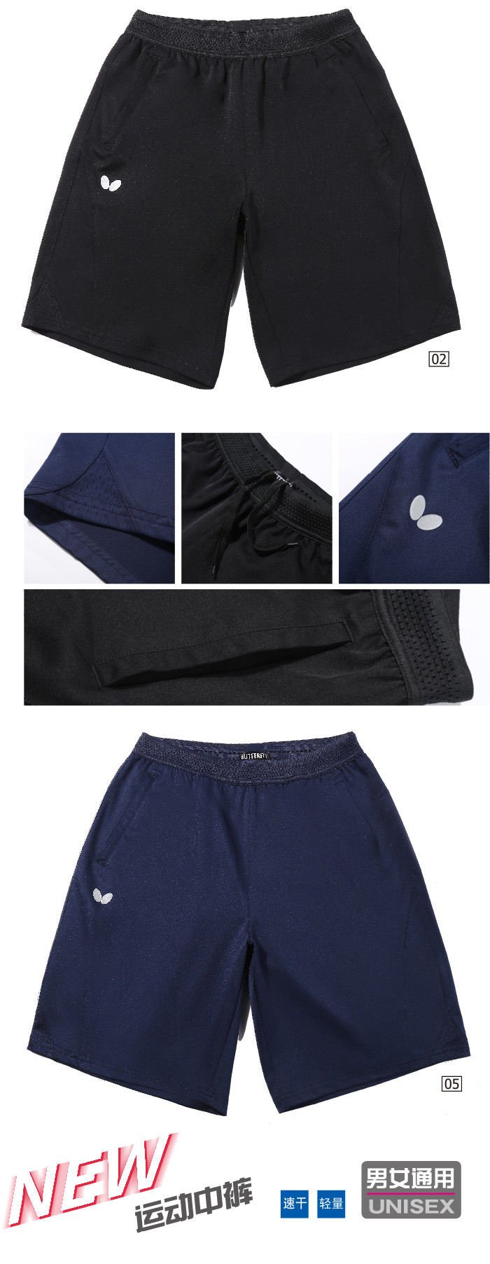 商品名称:蝴蝶Butterfly BWS-329 专业运动中裤(双色选) 简约透气 运动十足