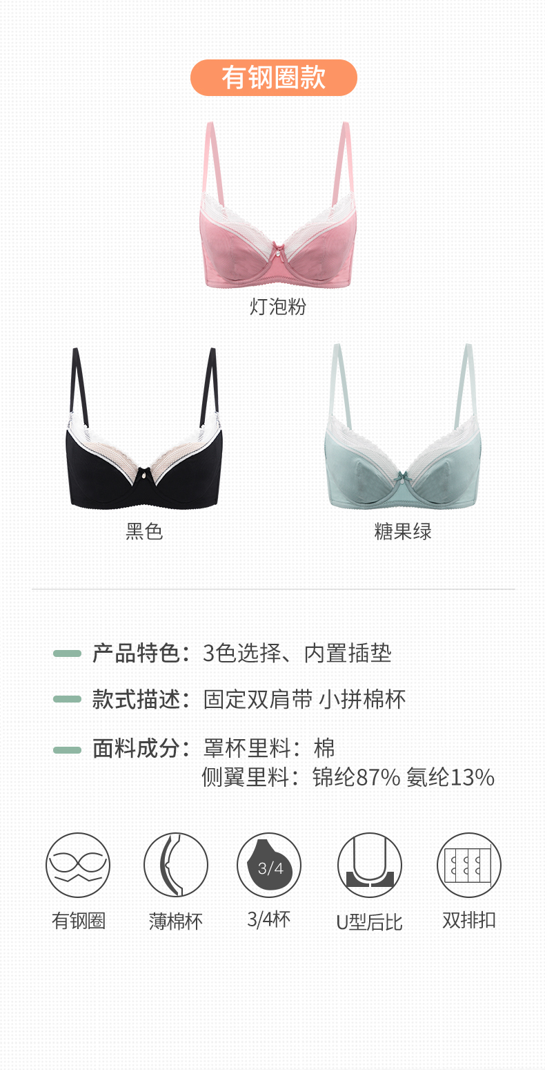 贝佳人文胸新款“心悦”深V全罩背心拼棉围-BW982221