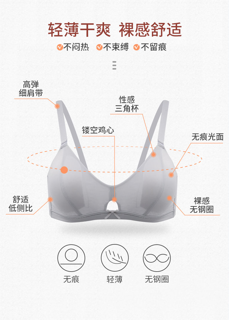 贝佳人新品光面无钢圈内衣薄款无痕聚拢少女学生文胸BW952112