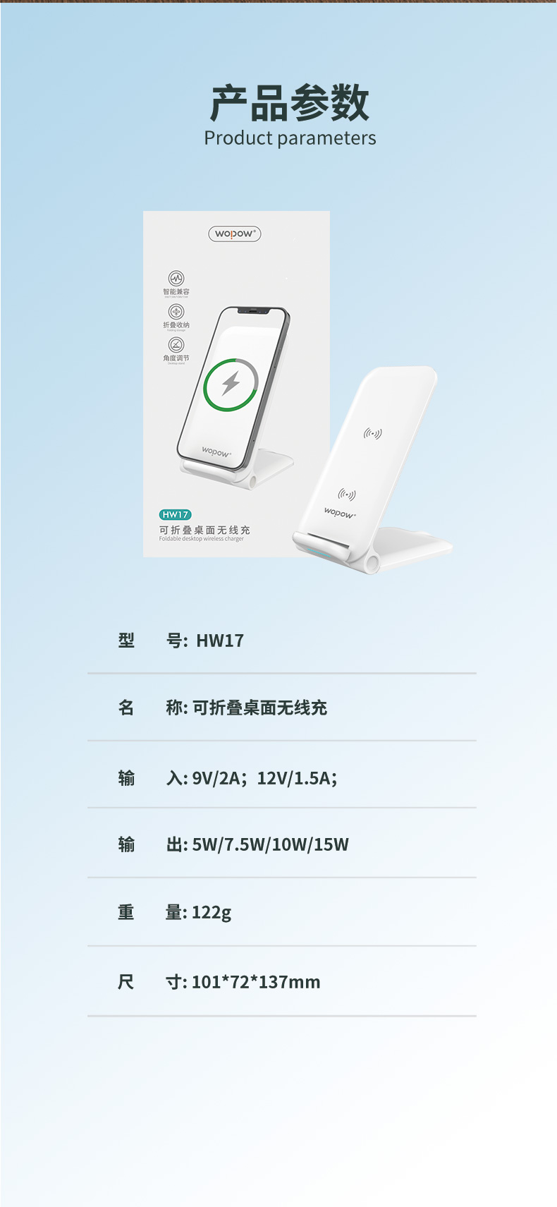 【安达联帮&沃品&仅限快递】可折叠桌面无线充HW17(厂家直发)