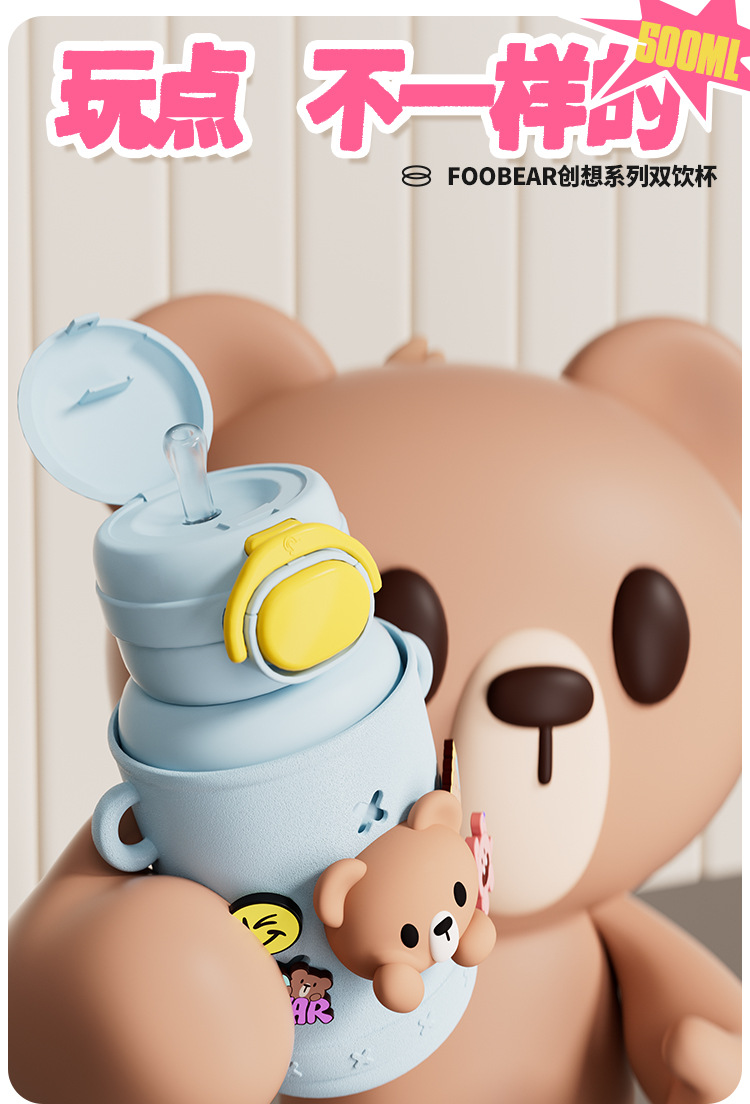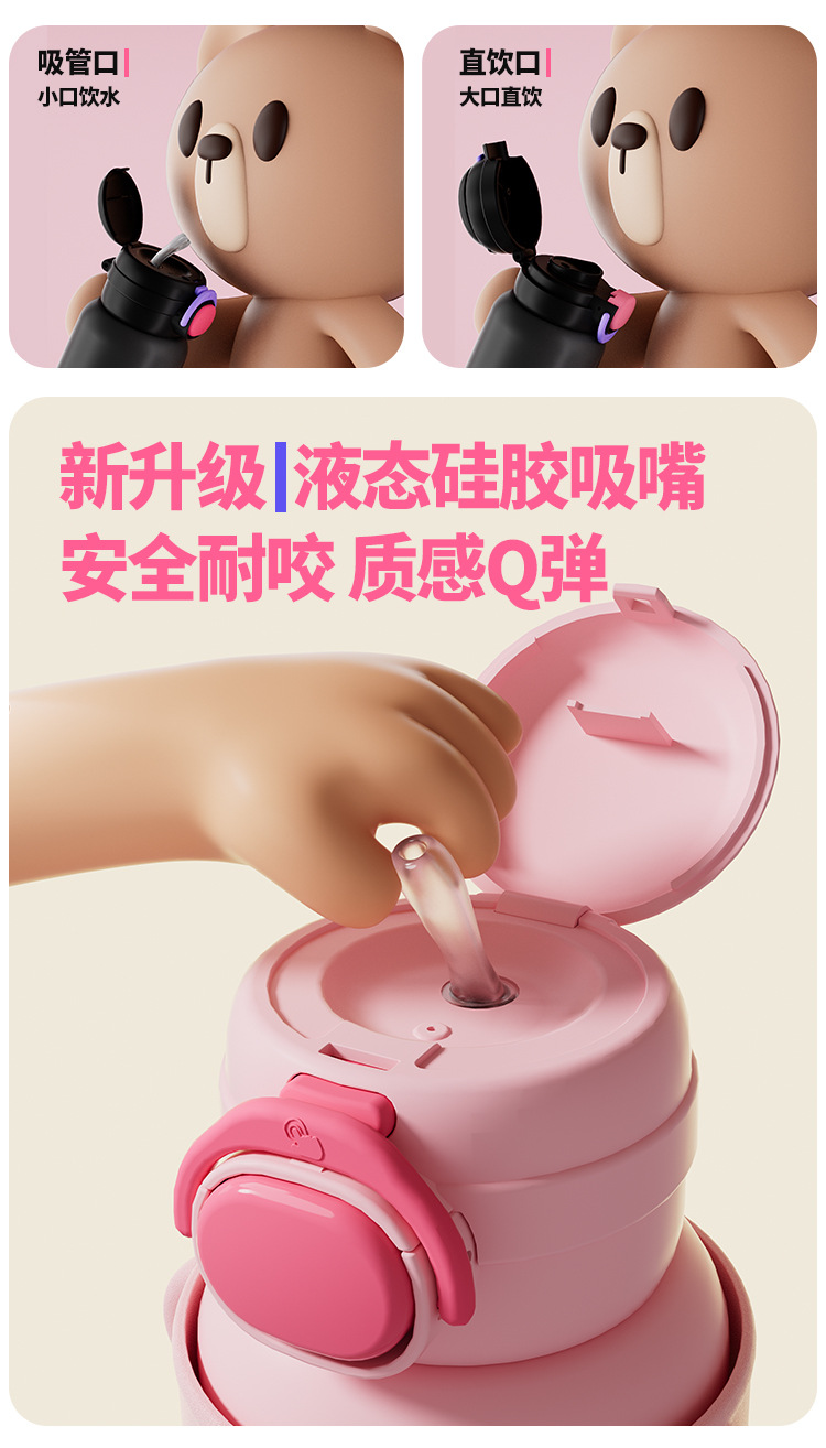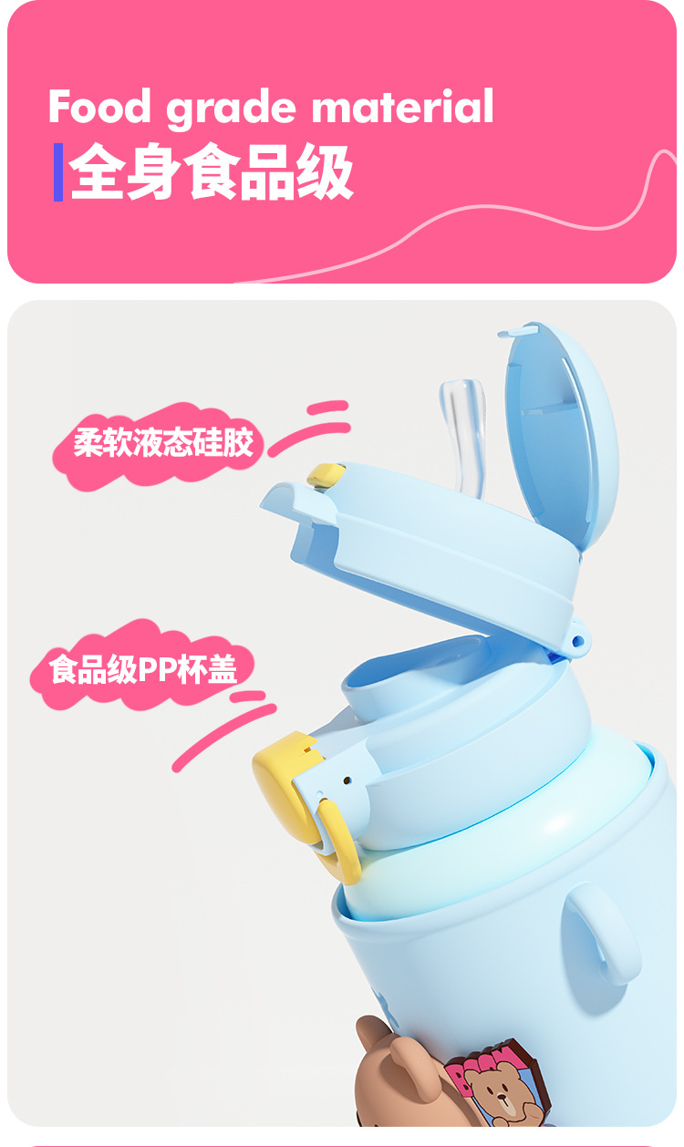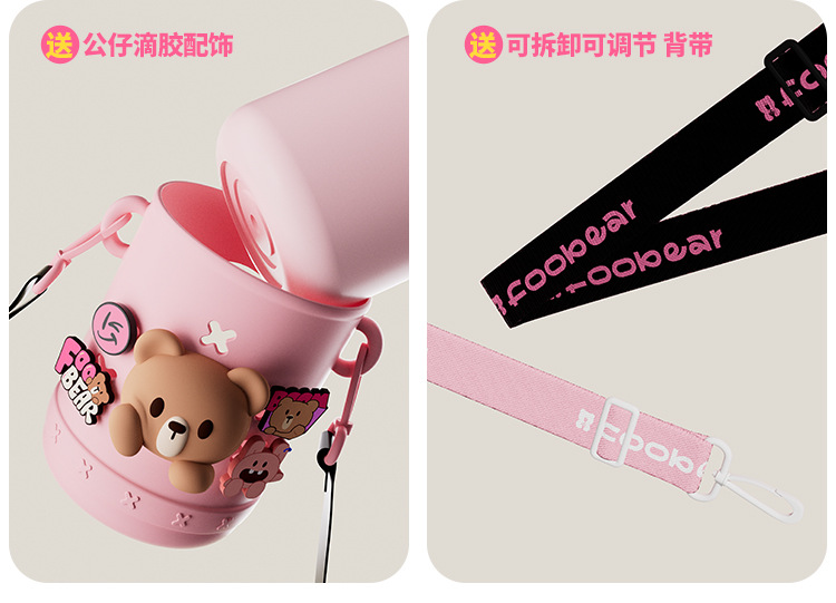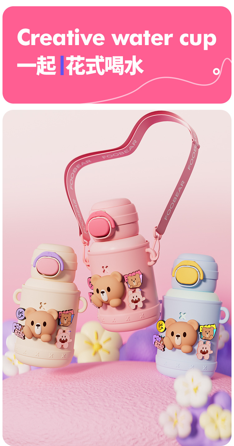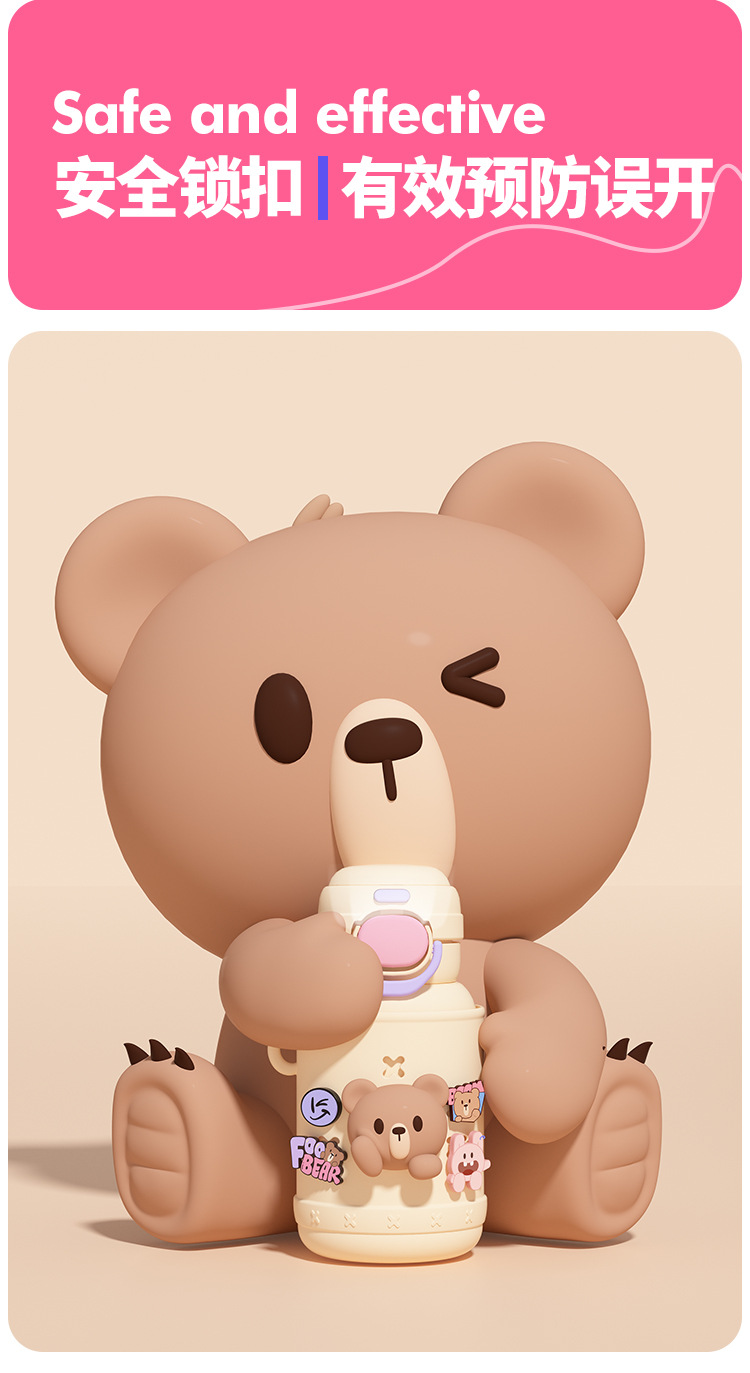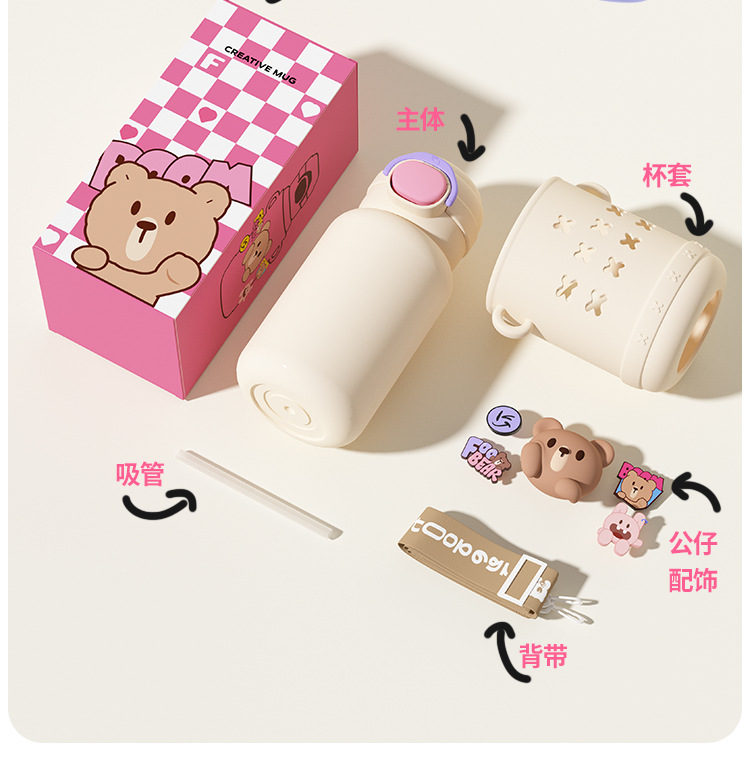 【可爱卡通造型,斜挎便携】范范熊宝宝可爱卡通保温杯 316不锈钢内胆 斜挎便携吸管水杯子-QQ