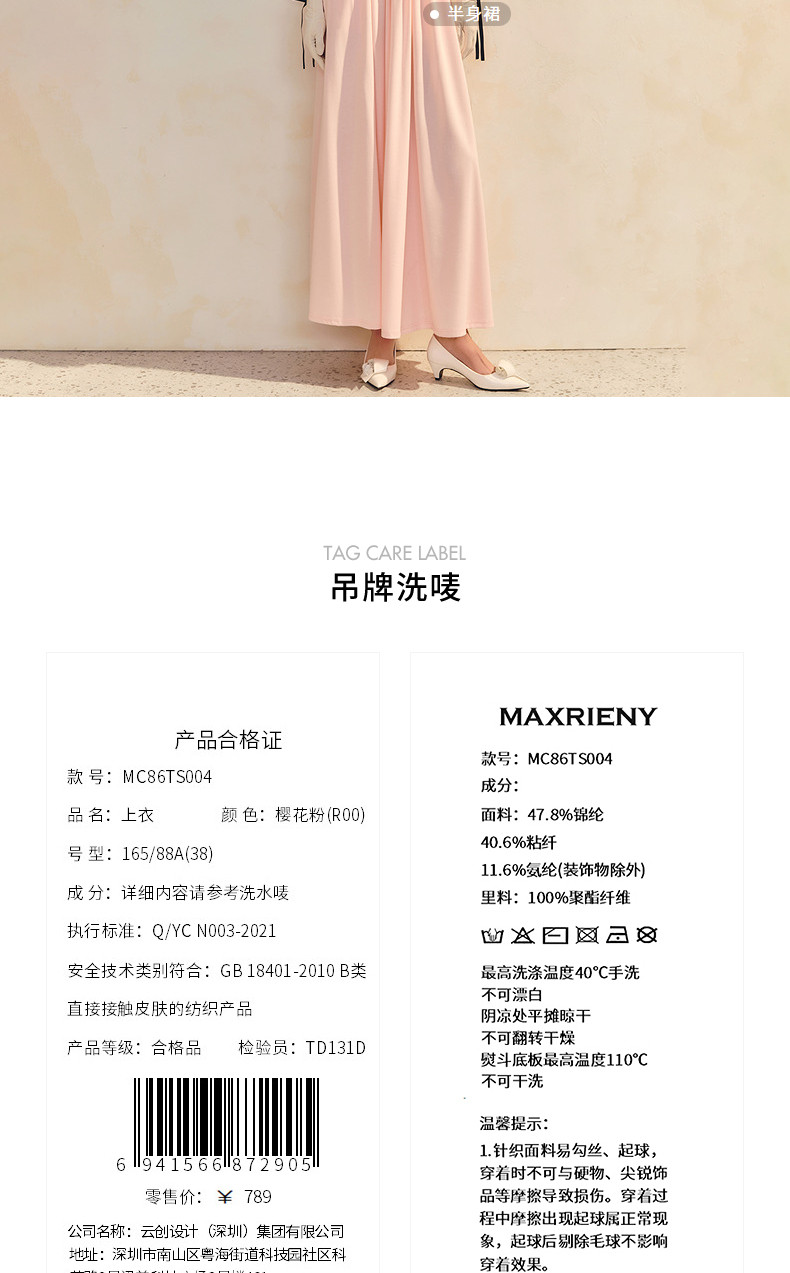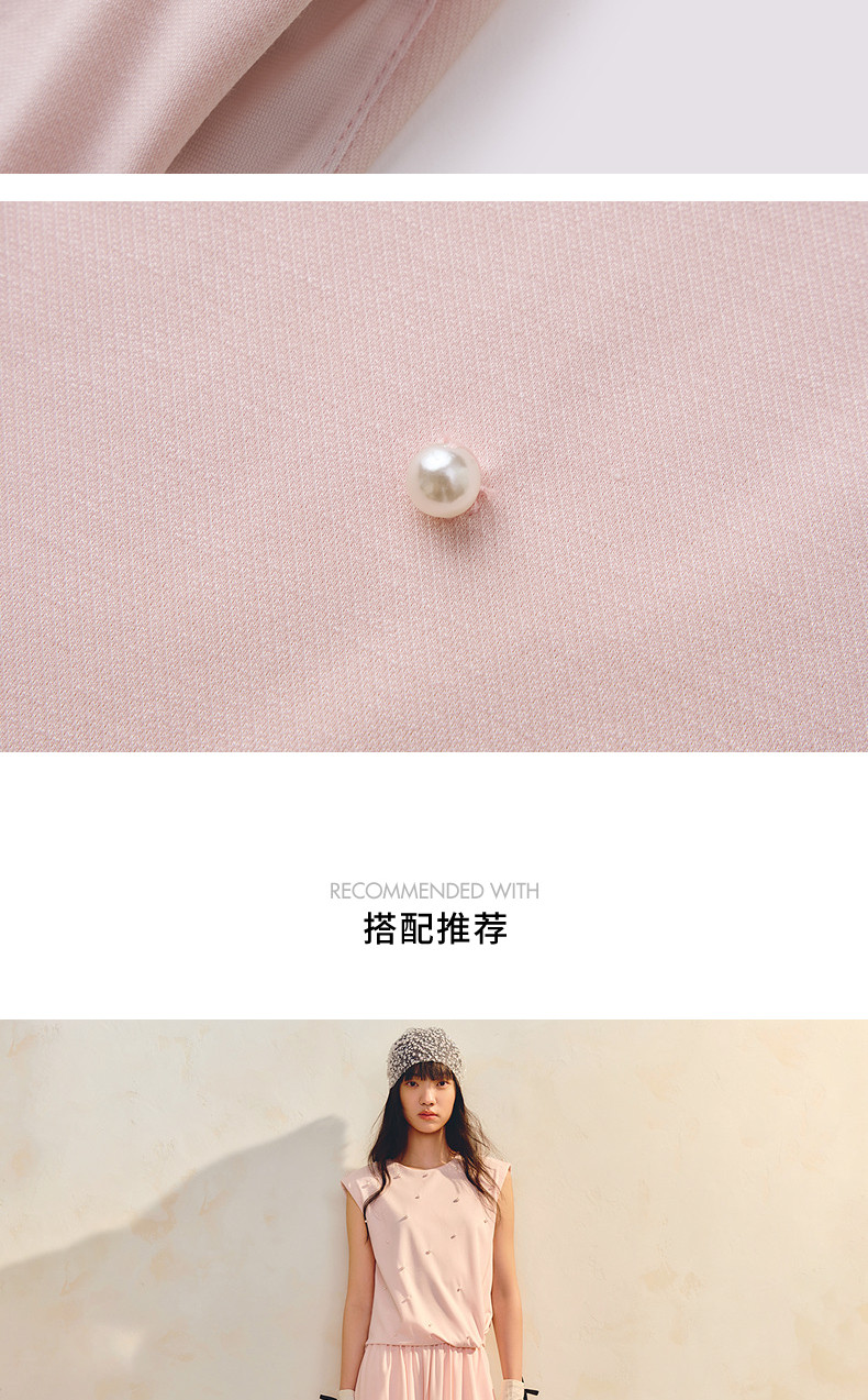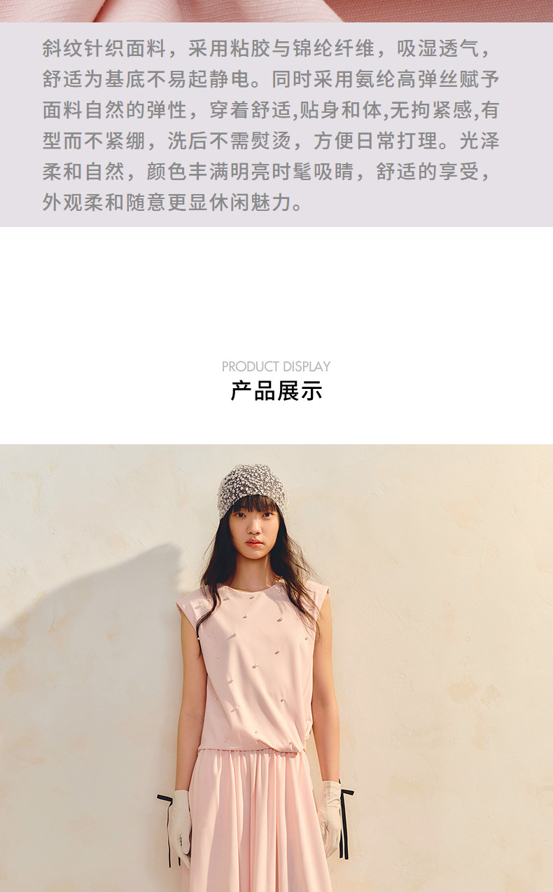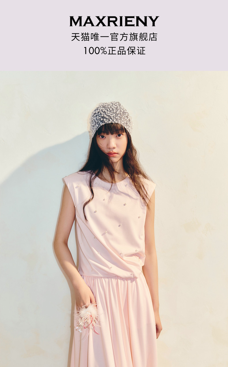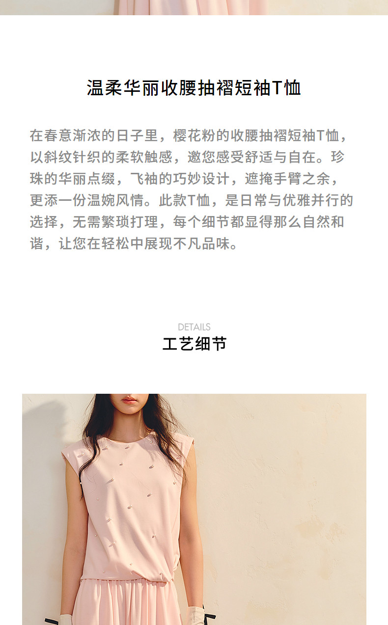 【商场同款】MAXRIENY樱花粉温柔收腰抽褶短袖T恤女无袖修身上衣(货号:MC86TS004)