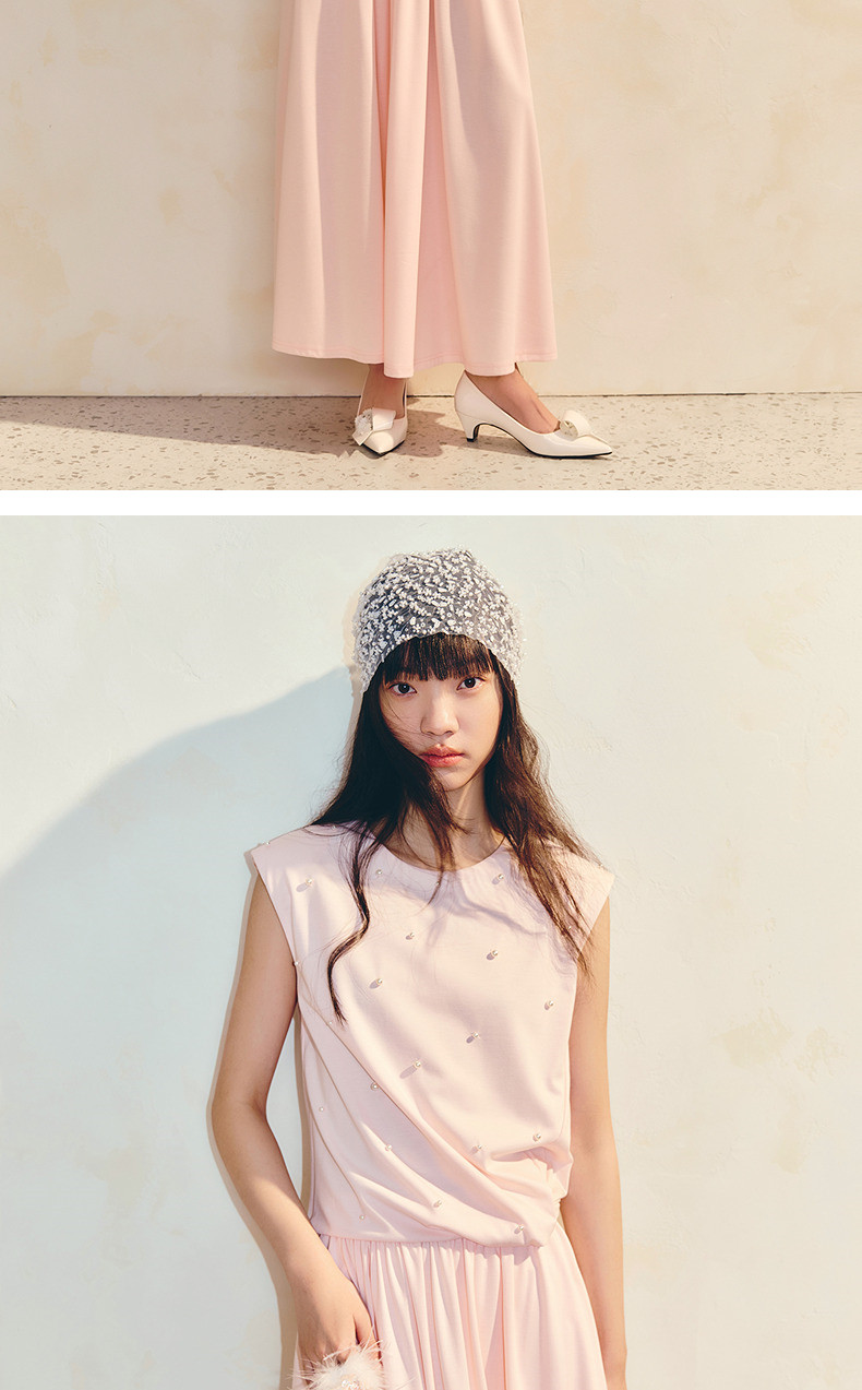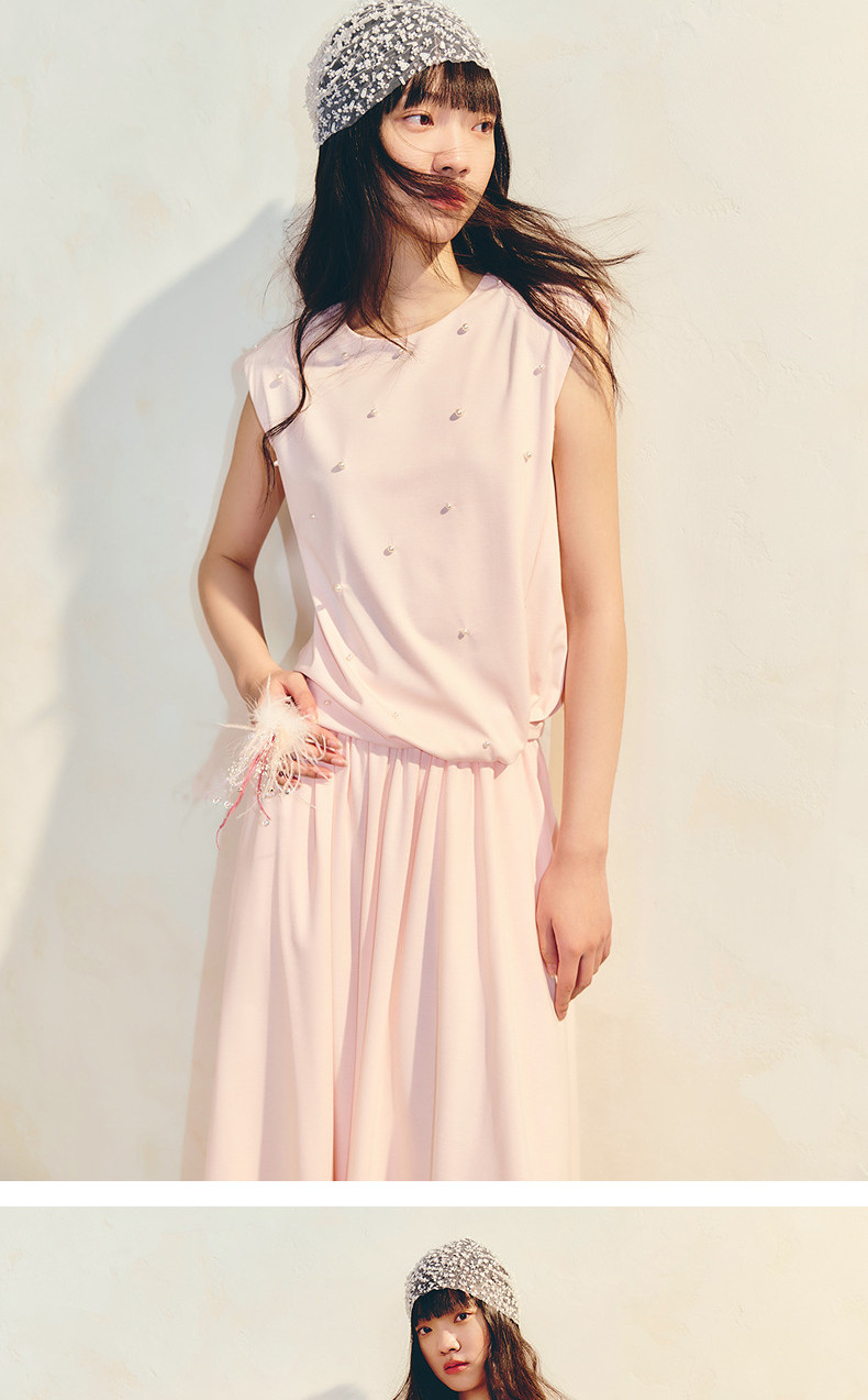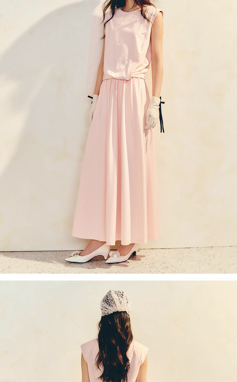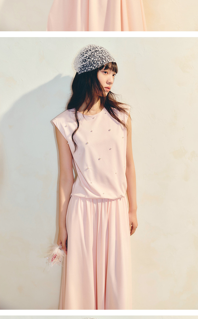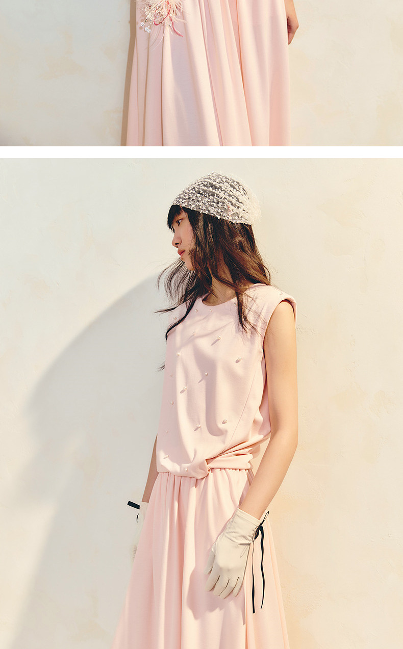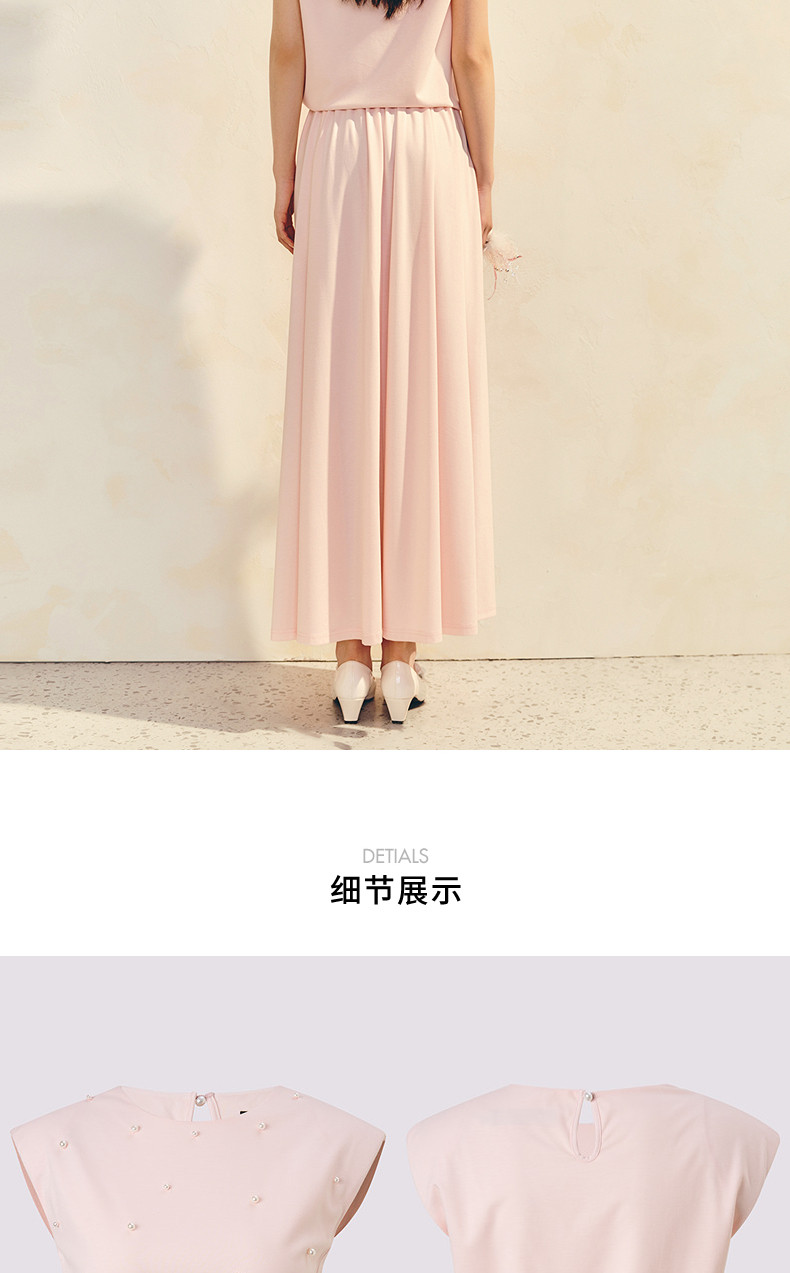 【商场同款】MAXRIENY樱花粉温柔收腰抽褶短袖T恤女无袖修身上衣(货号:MC86TS004)