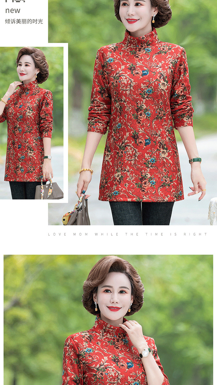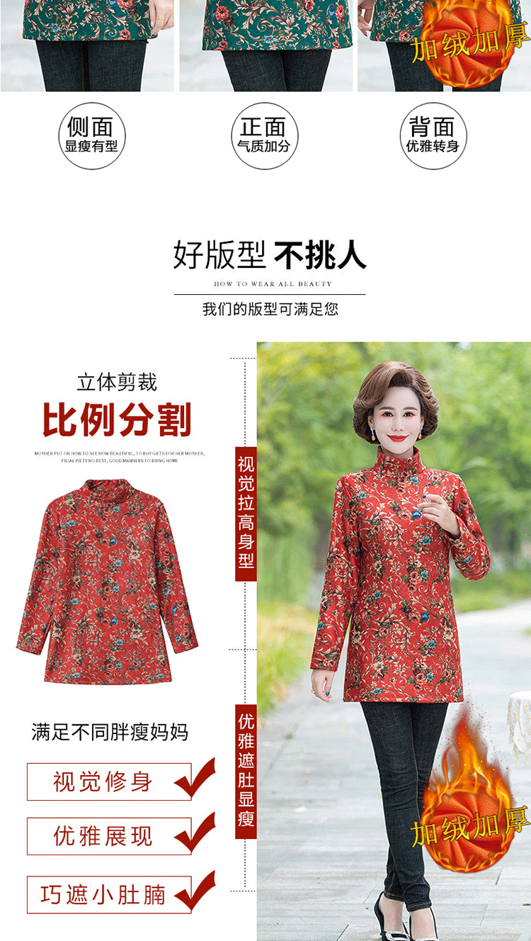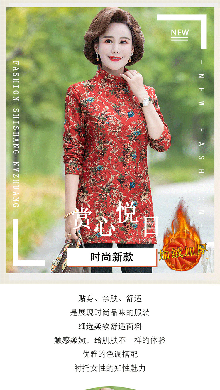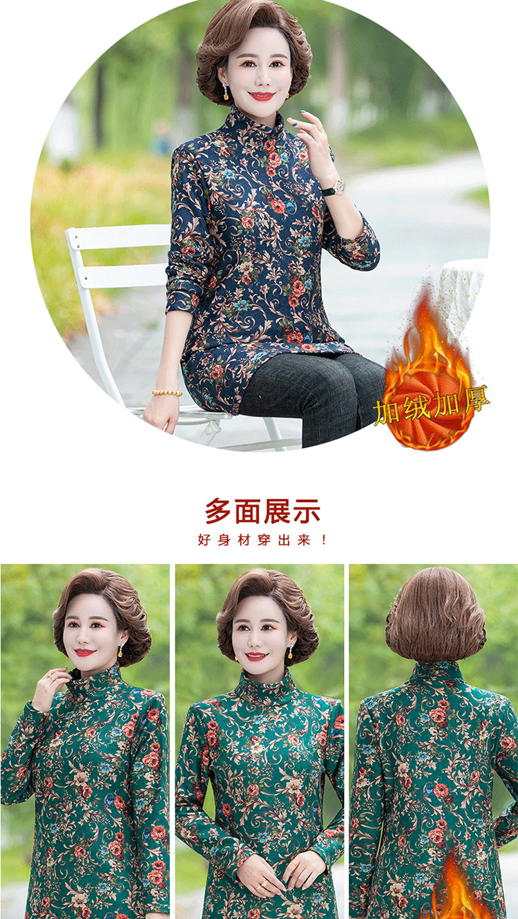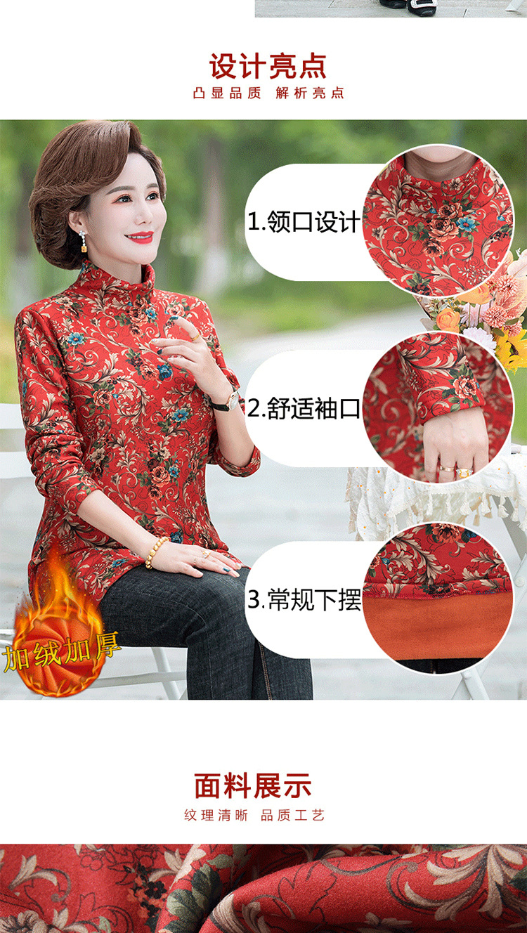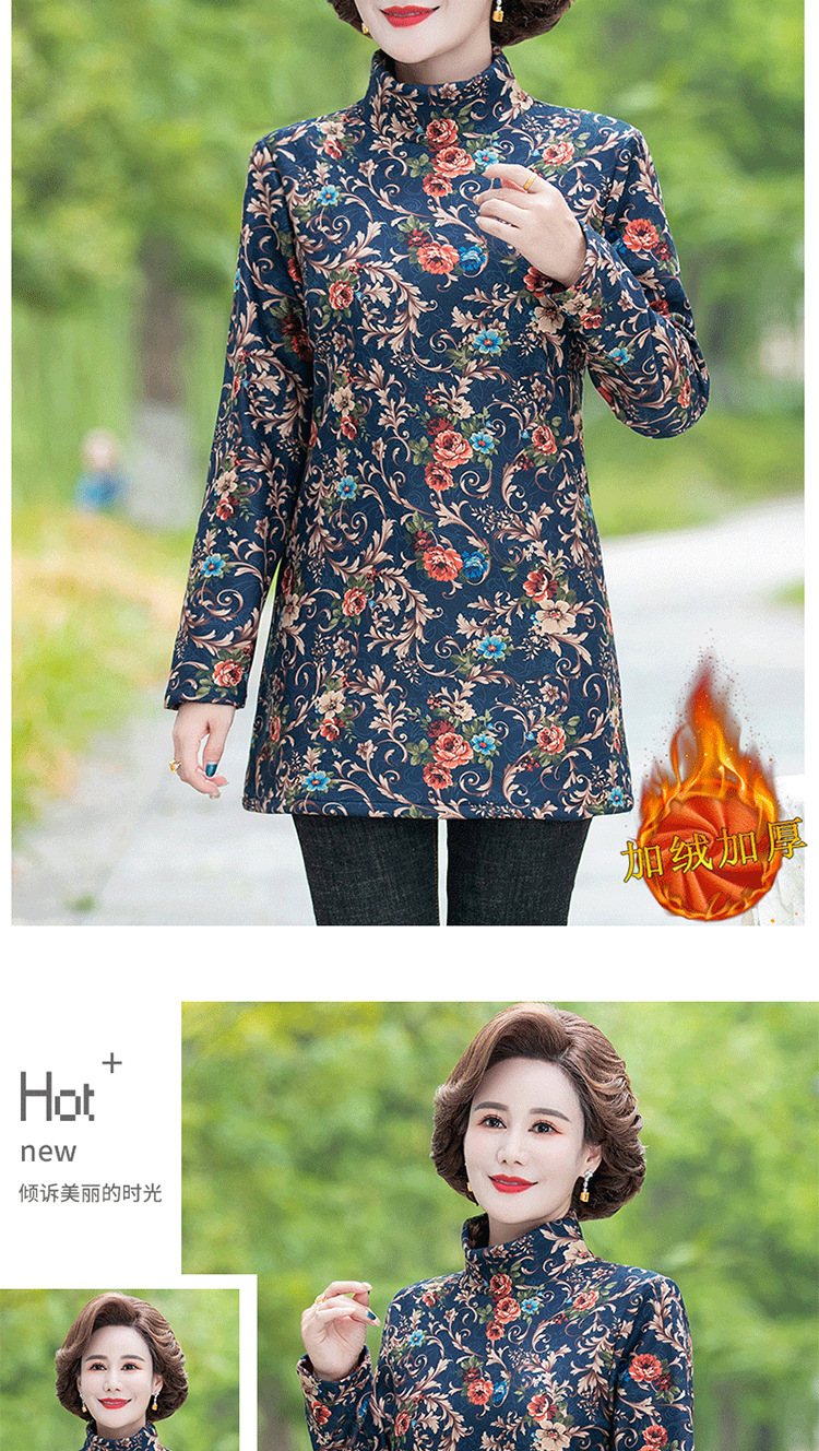 CS-TZW-中老年女装秋冬新款加绒加厚打底衫妈妈装中长款时尚印花保暖内衣