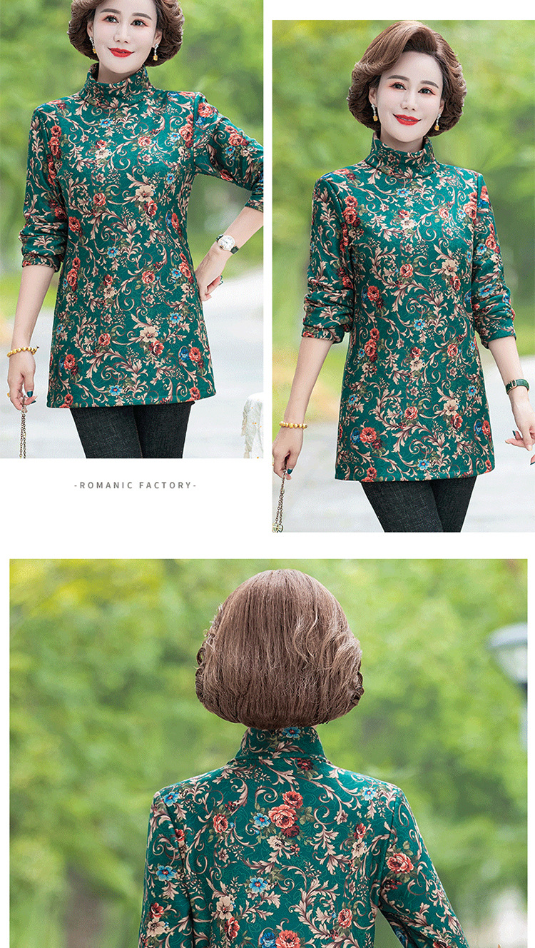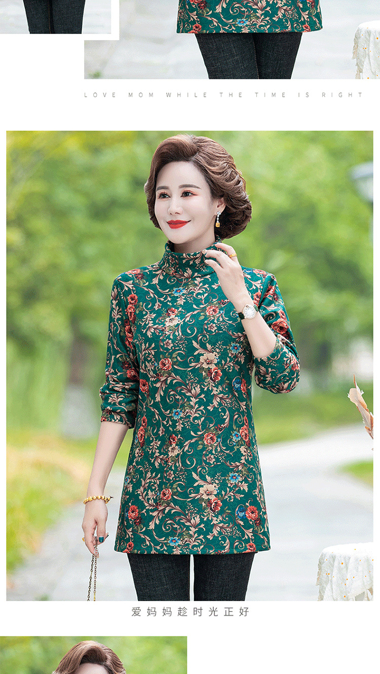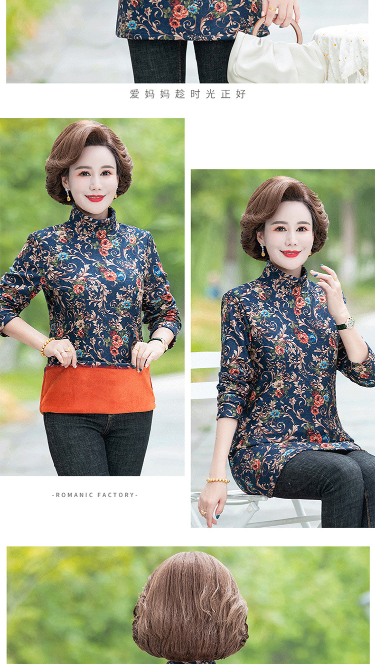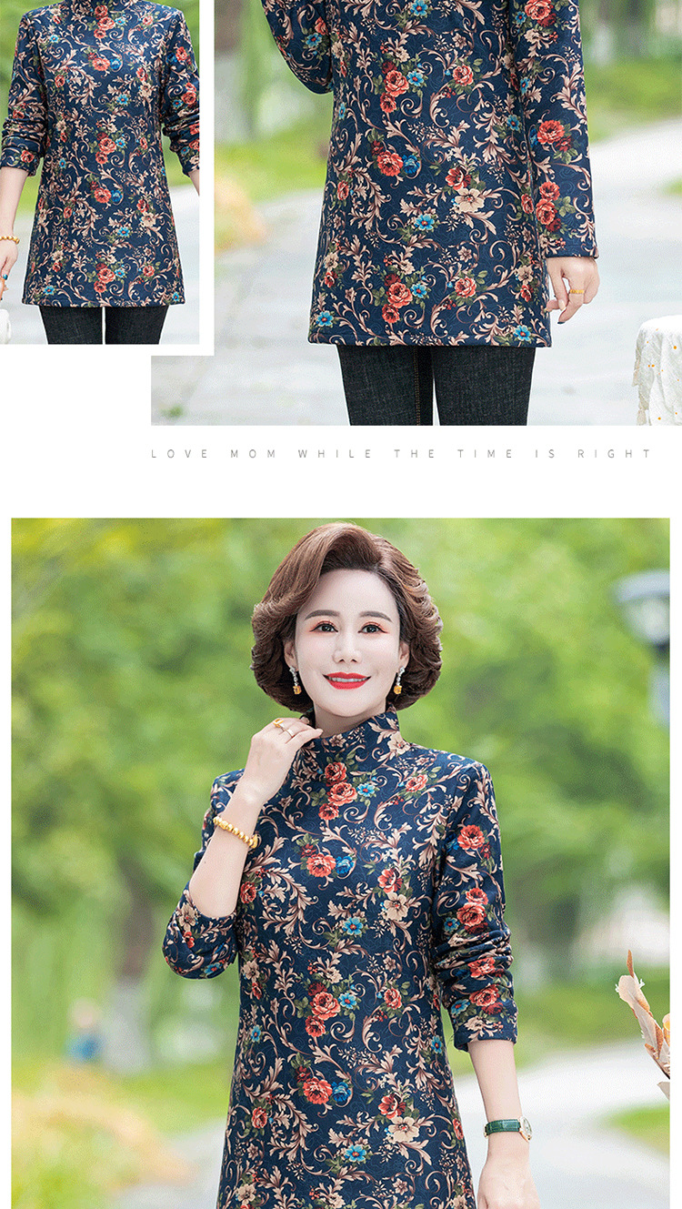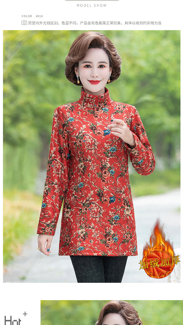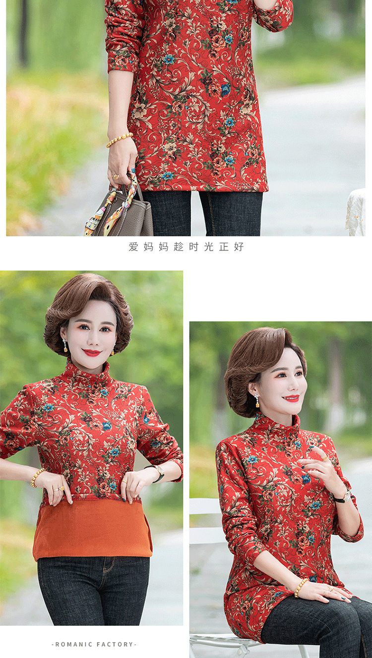 CS-TZW-中老年女装秋冬新款加绒加厚打底衫妈妈装中长款时尚印花保暖内衣