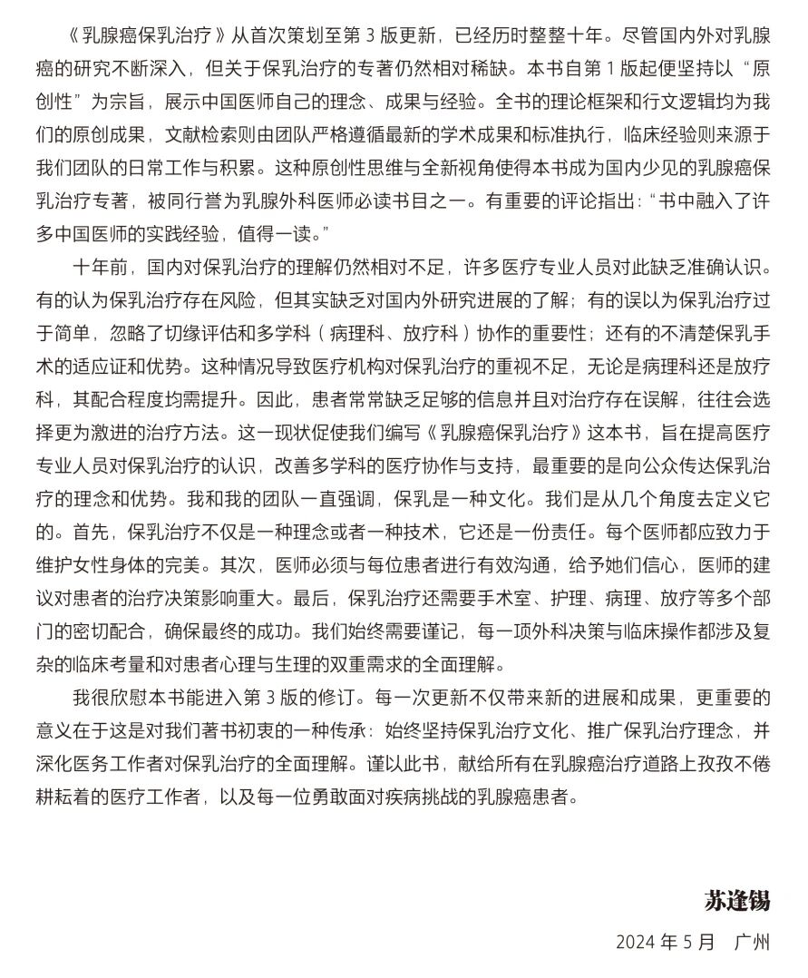 本书自第1版起便坚持以“原创性”为宗旨,展示中国医师自己的理念、成果与经验。全书的理论框架和行文逻辑均为我们的原创成果,文献检索则由团队严格遵循最新的学术成果和标准执行,临床经验则来源于我们团队的日常工作与积累。这种原创性思维与全新视角使得本书成为国内少见的乳腺癌保乳治疗专著,被同行誉为乳腺外科医师必读书目之一。有重要的评论指出:“书中融入了许多中国医师的实践经验,值得一读。”