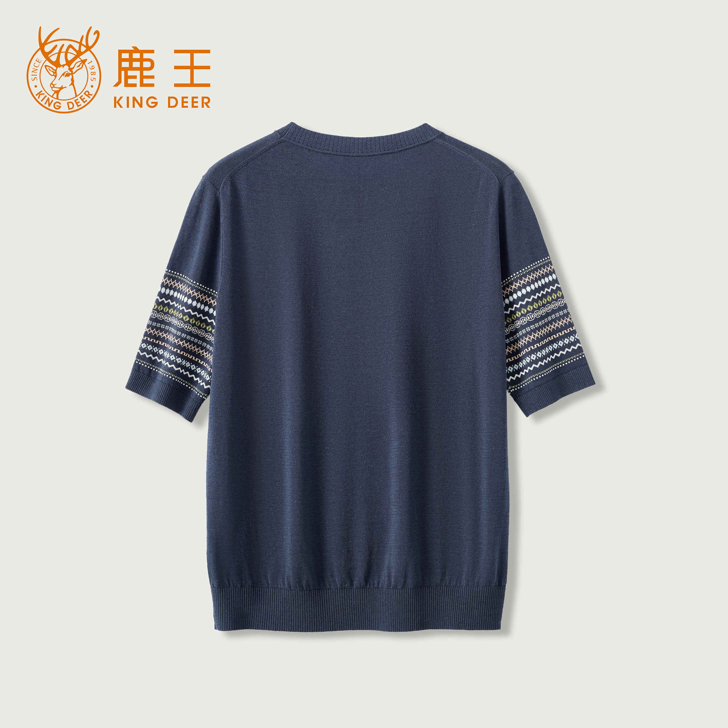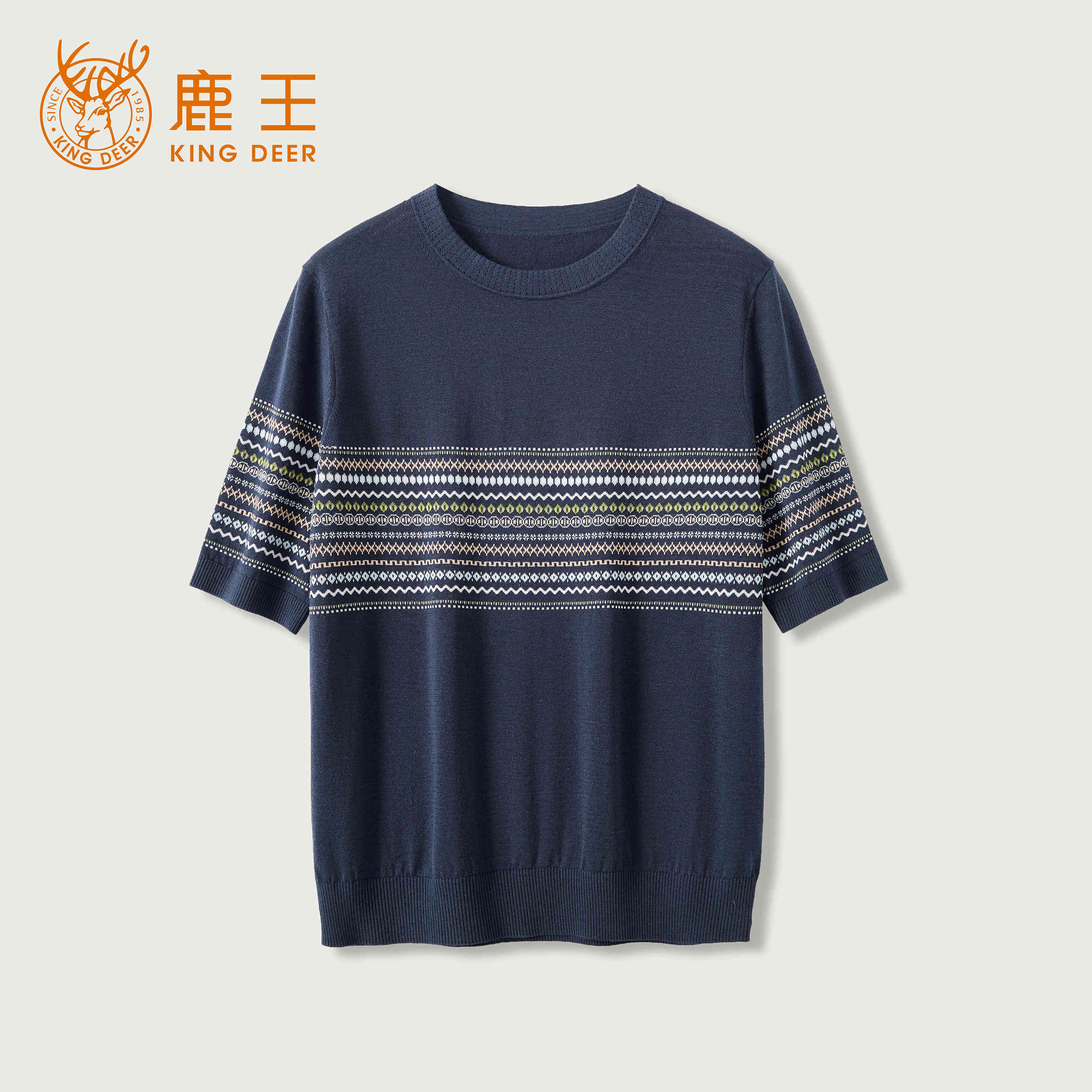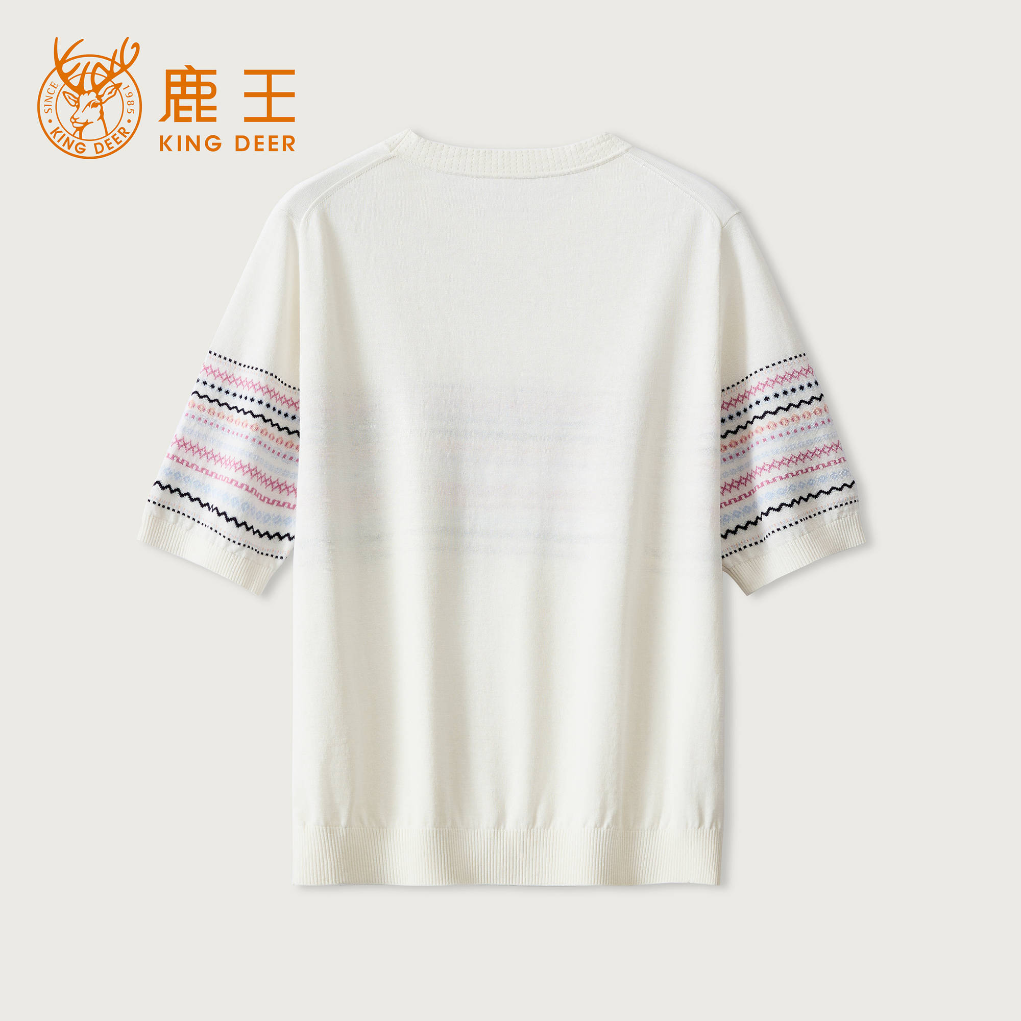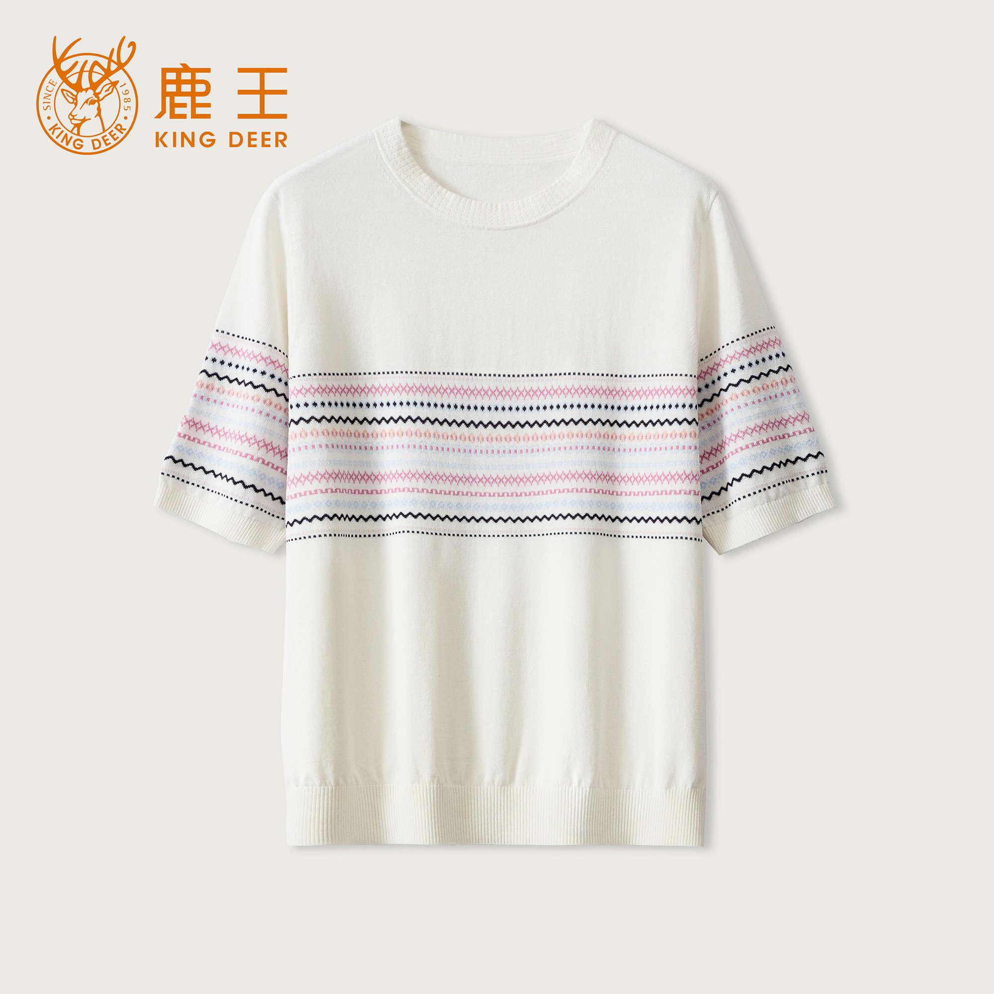 King Deer/鹿王撞色条肩扣针织T恤圆领显瘦舒适上衣早春L805045
