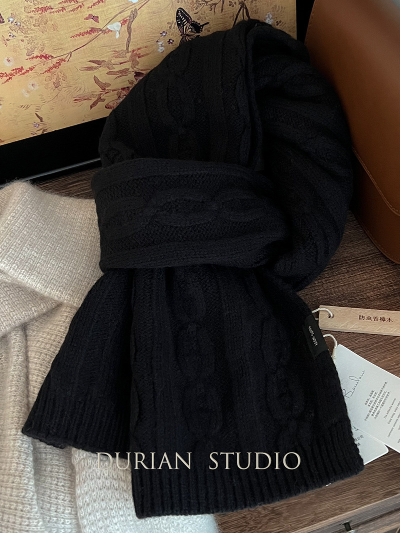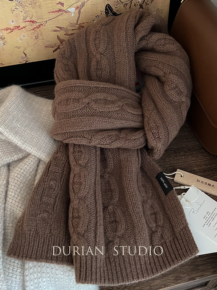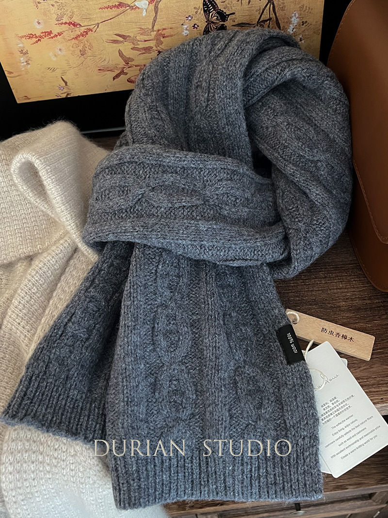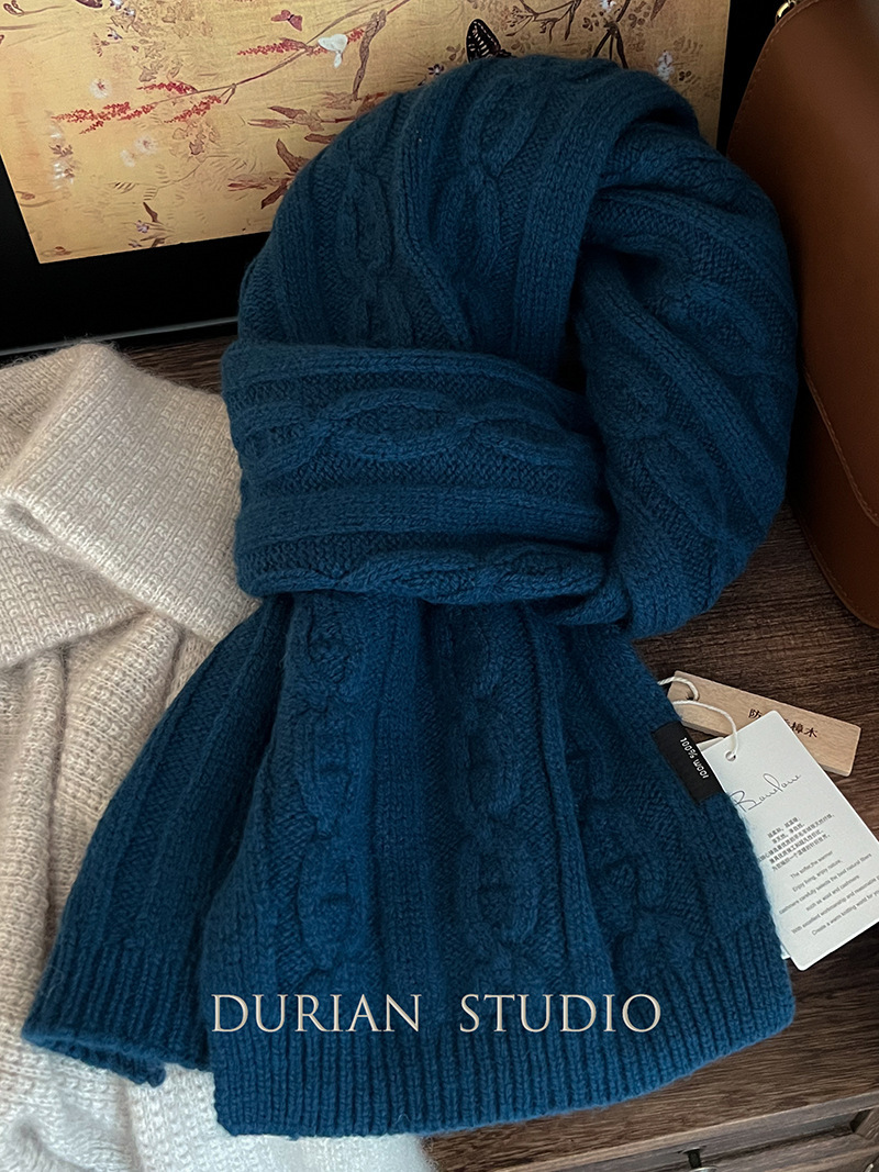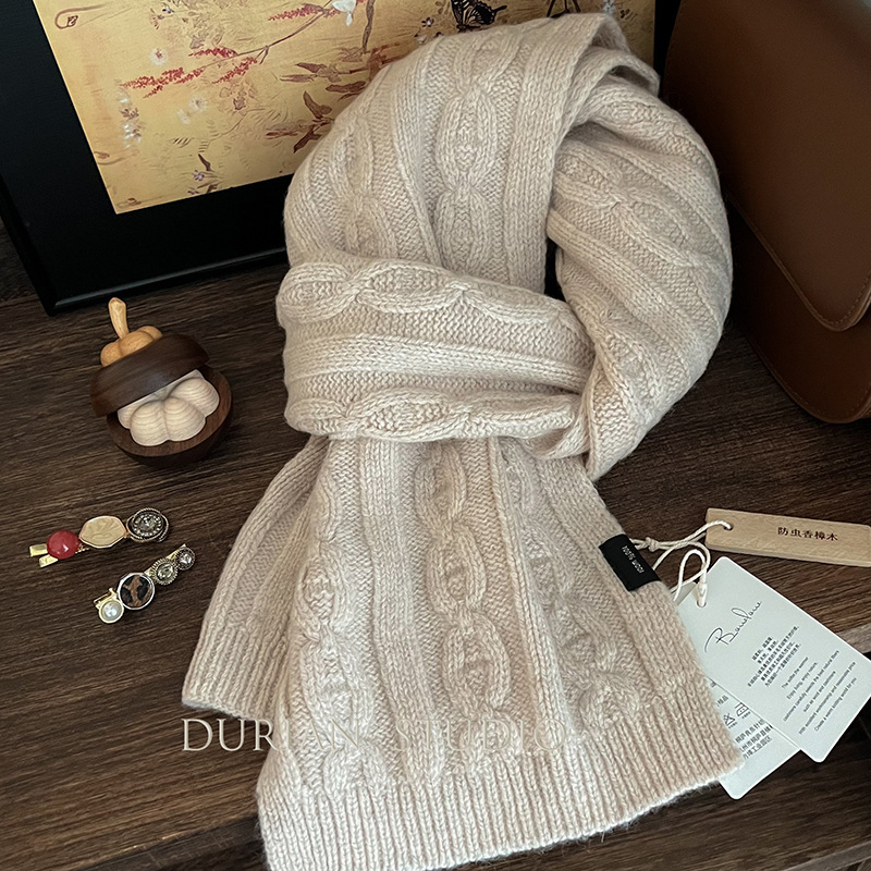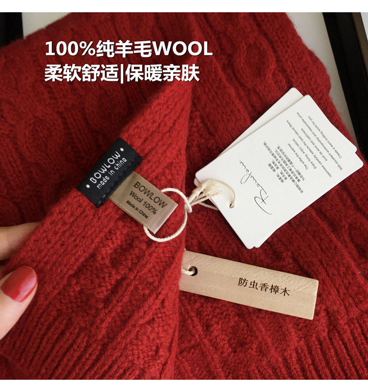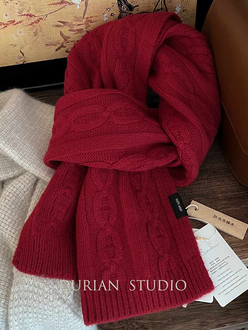 【秋冬精选】100%澳洲精选纯羊毛经典麻花英伦安可拉红复古围巾女冬季绞花围脖 165*22cm